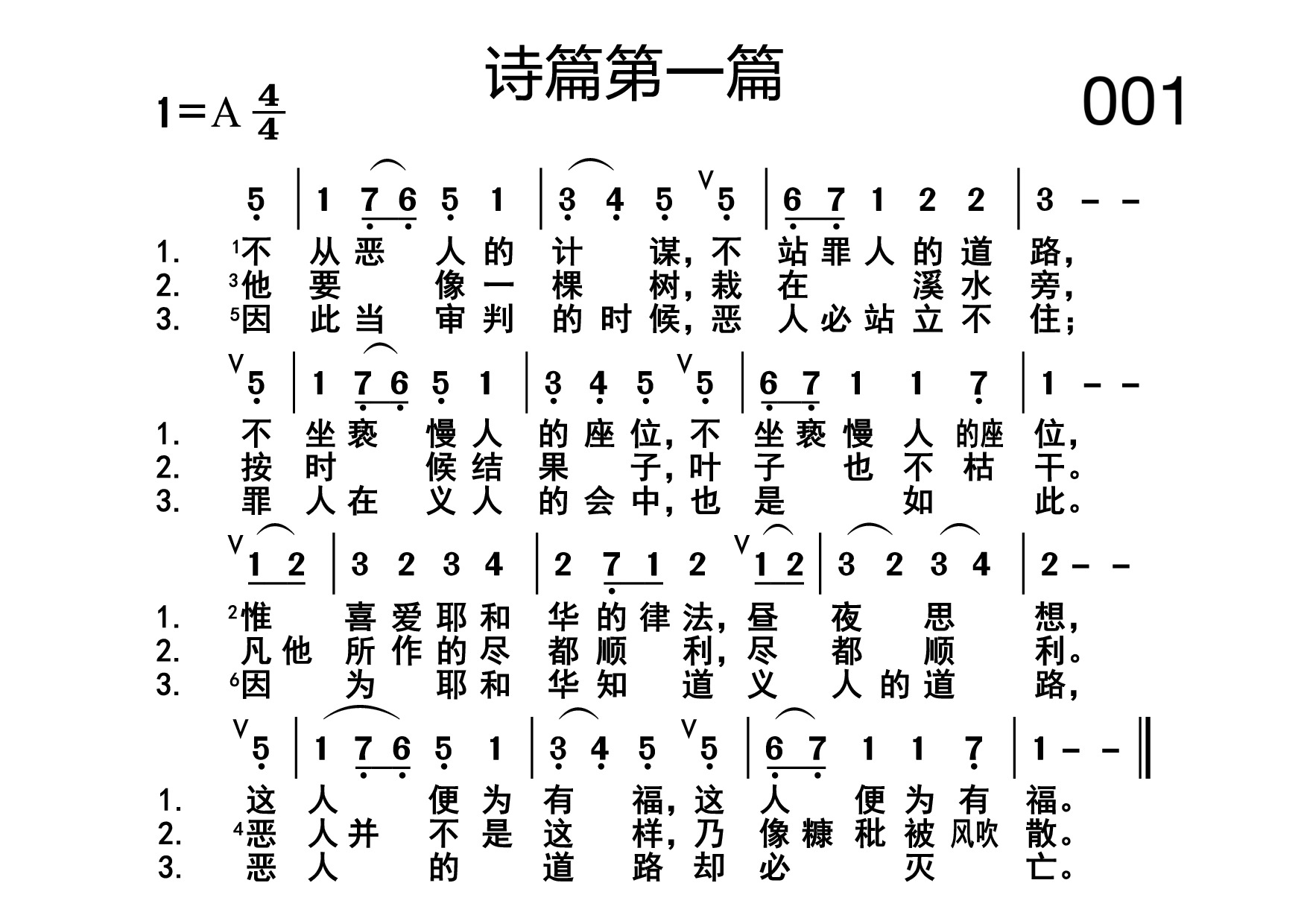 不从恶人的计谋,不站罪人的道路,不坐亵慢人的坐位,惟喜爱耶和华耶和华的律法,昼夜思想,这人便为有福,这人便为有福。他要像一棵树栽在溪水旁,按时候结果子,按时候结果子,叶子也不枯干,叶子也不枯干,凡他所作的尽都顺利。恶人并不是这样,乃像糠秕被风吹散,被风吹散。因此当审判的时候,恶人必站立不住,罪人在义人的会中,也是如此。因为耶和华知道义人的道路,恶人的道路却必灭亡,却必灭亡。