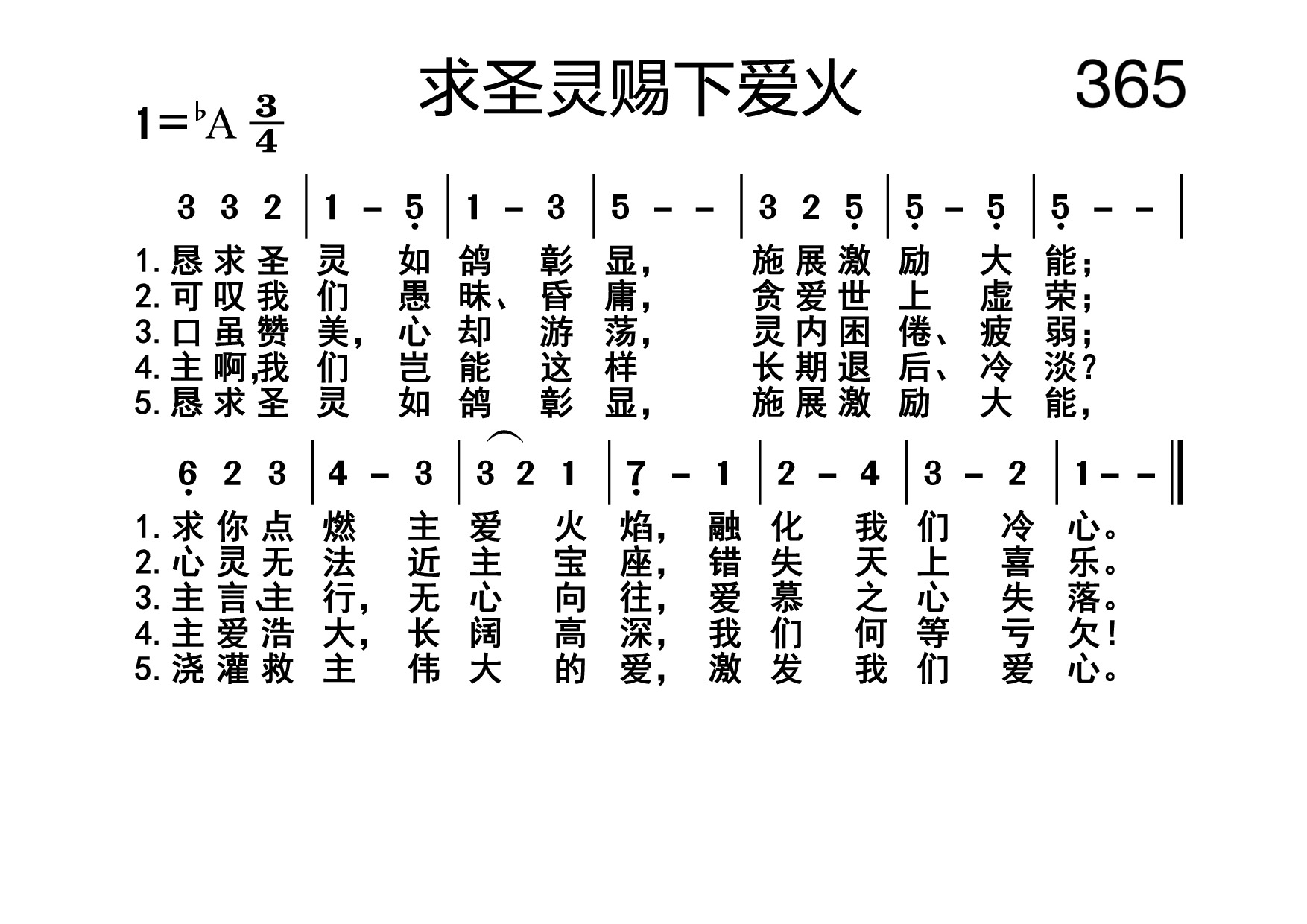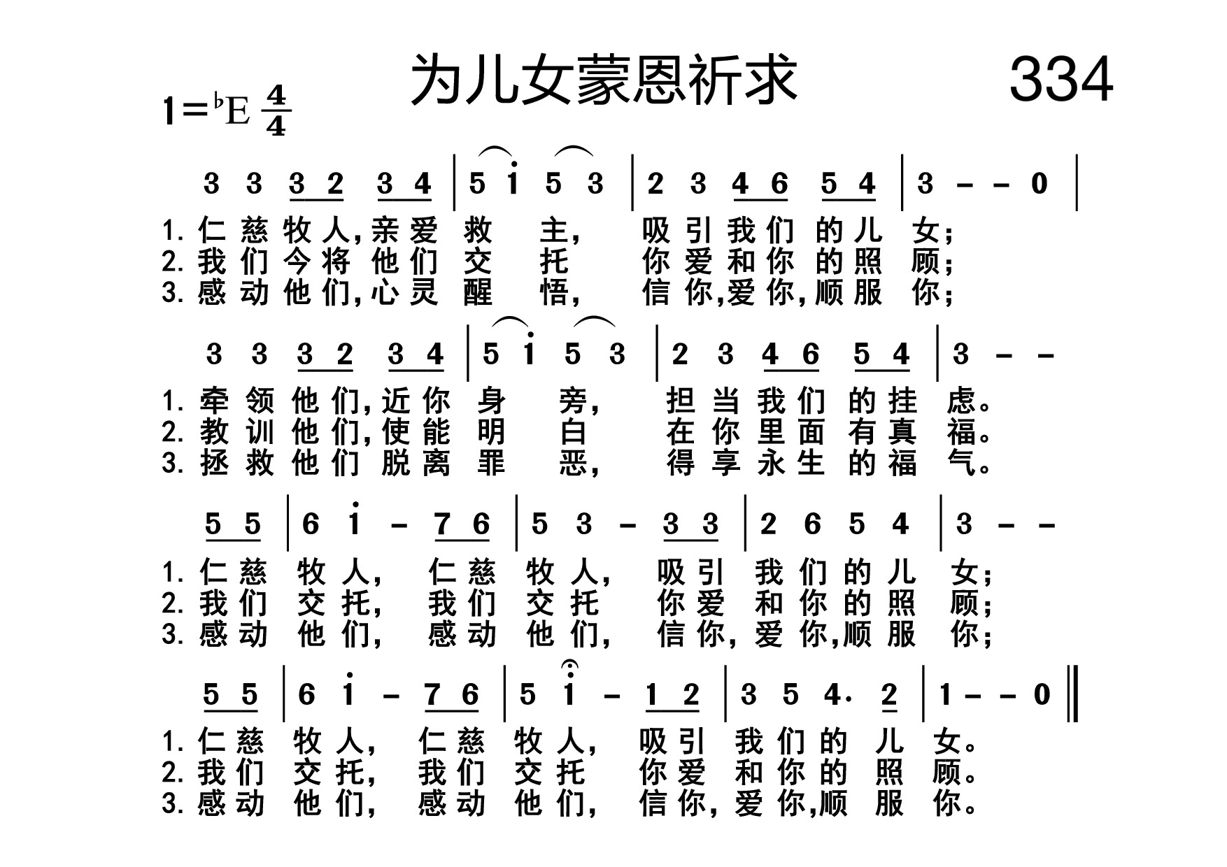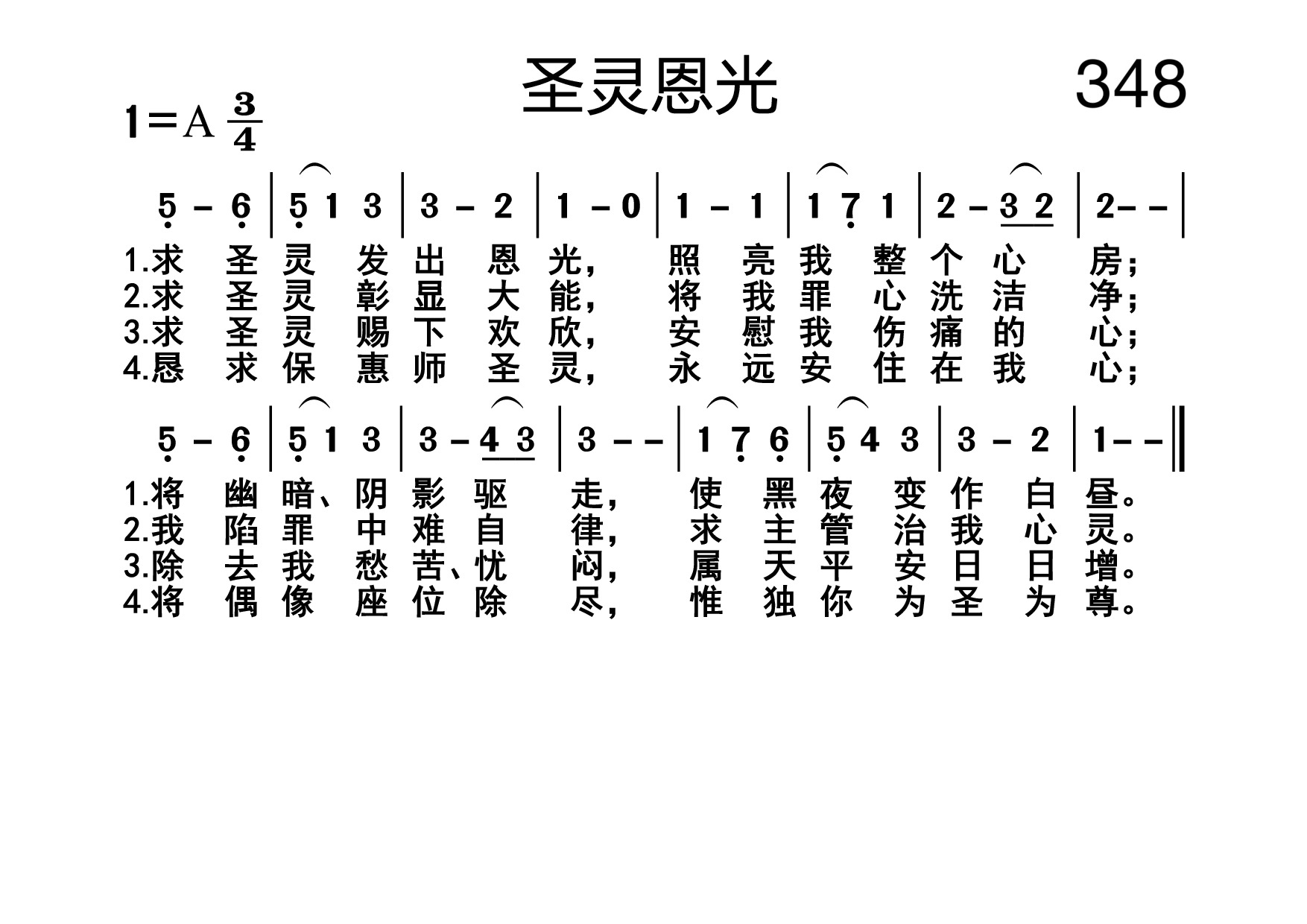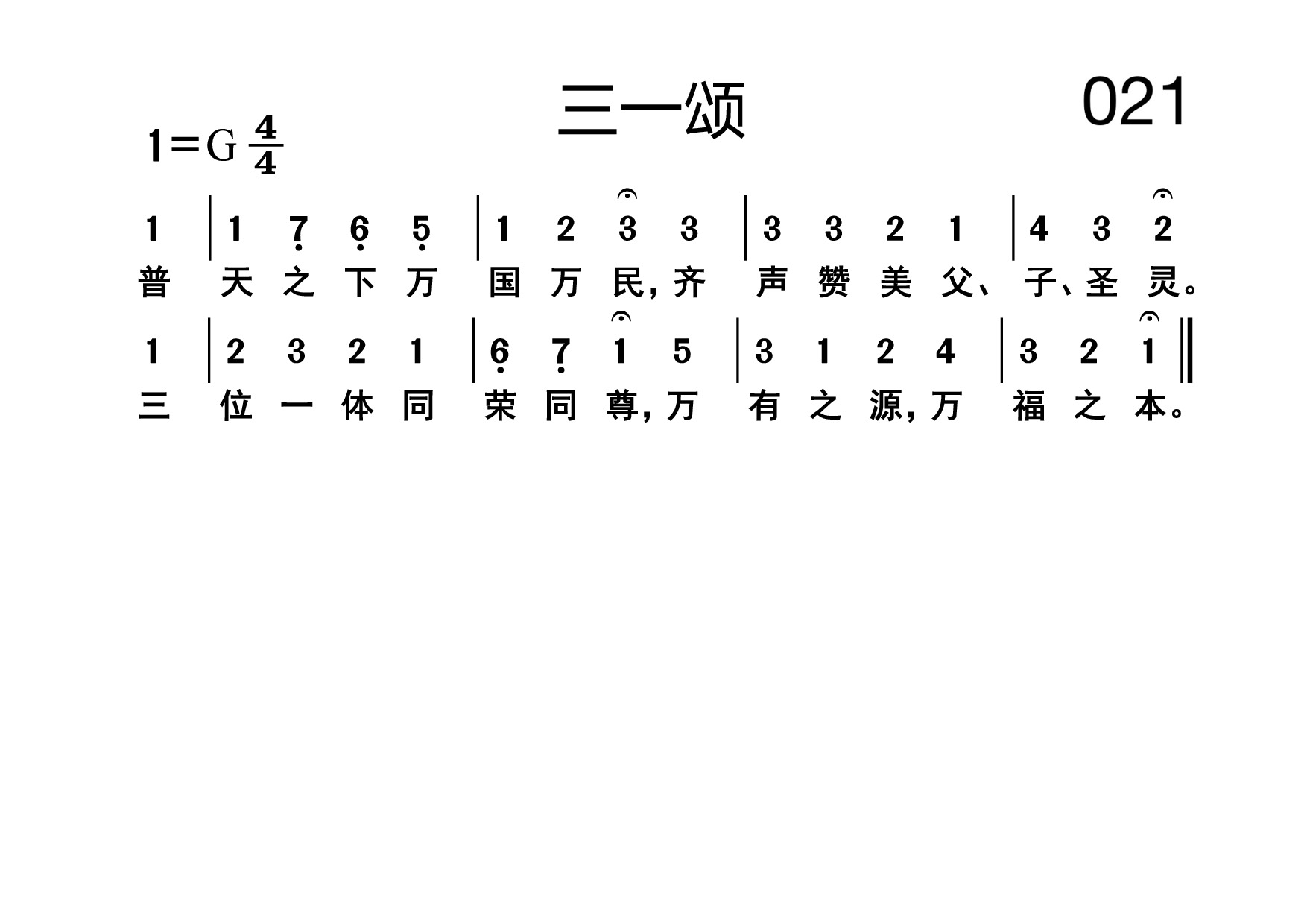 恳求圣父来临,助我赞美主名,敬献心声!惟主无上尊荣,惟主完全得胜,求主统治我们,万古之神!恳求圣子来临,彰显威严大能,垂听呼声!施恩与众子民,使主圣道振兴,建立善义公平,救主良朋!恳求圣灵来临,显出神圣见证,感化众人!惟主全能至尊,恳求统治众心,永不离开我们,大能圣灵!大哉三一真神,当受万民颂称,世世无尽!但愿我众齐来,欢然瞻仰圣明,献上爱戴崇敬,直到永恒!