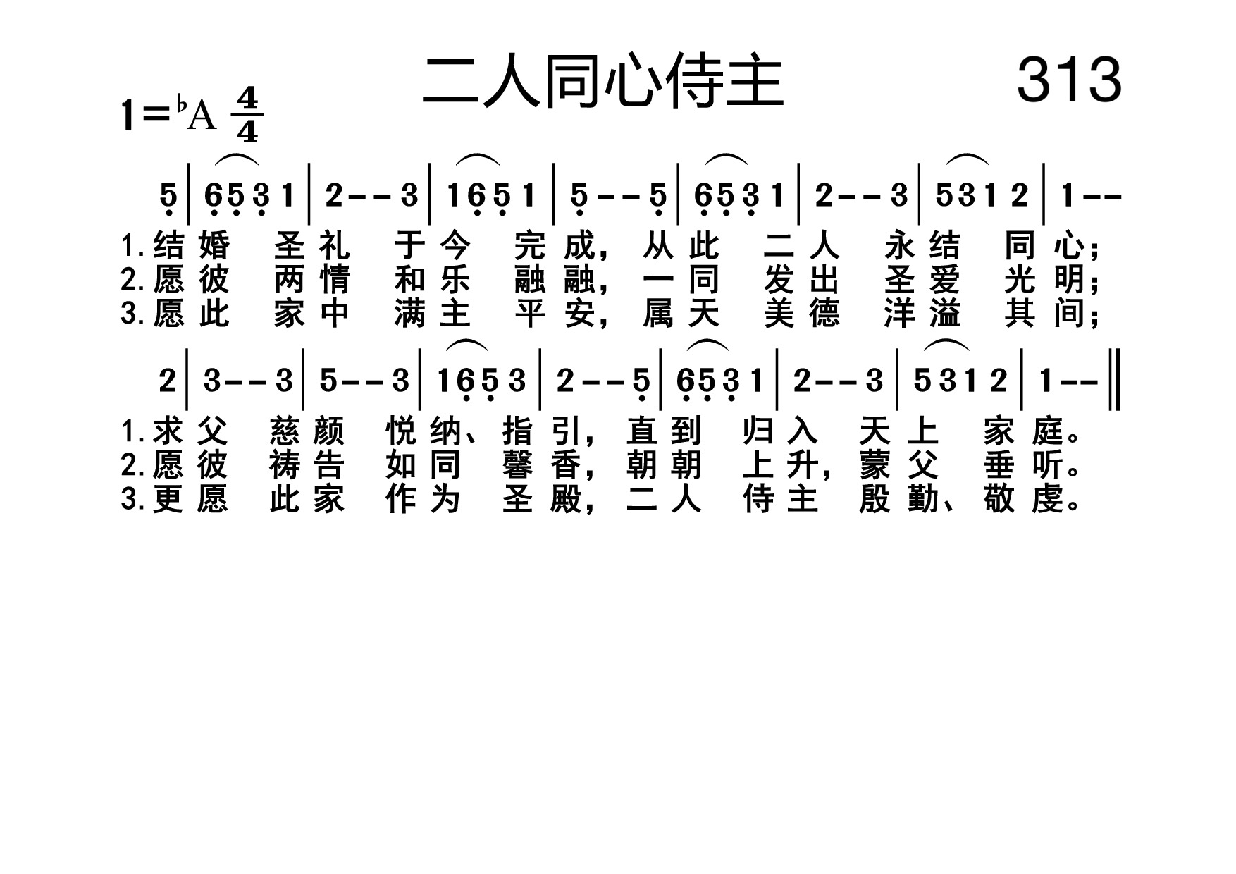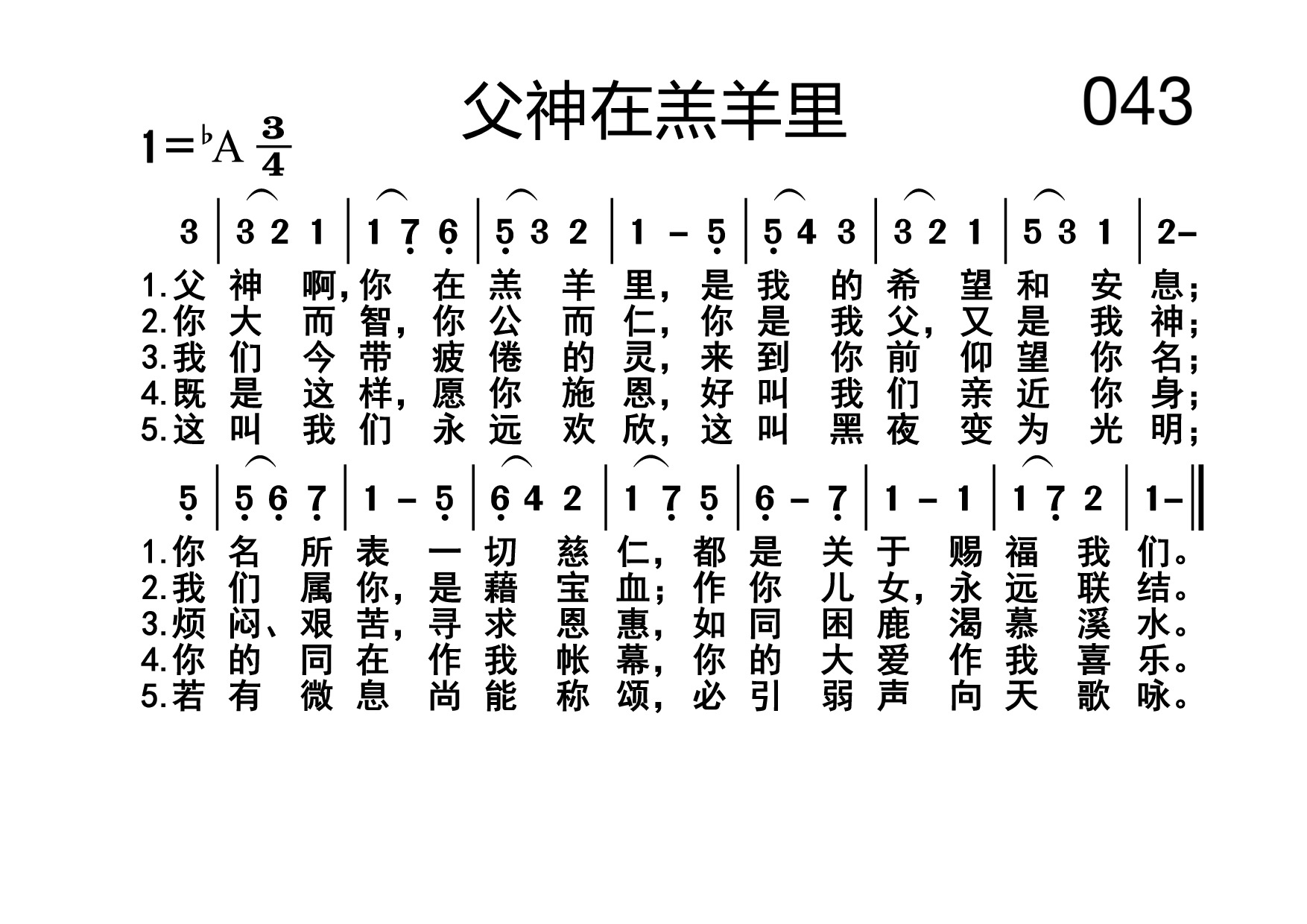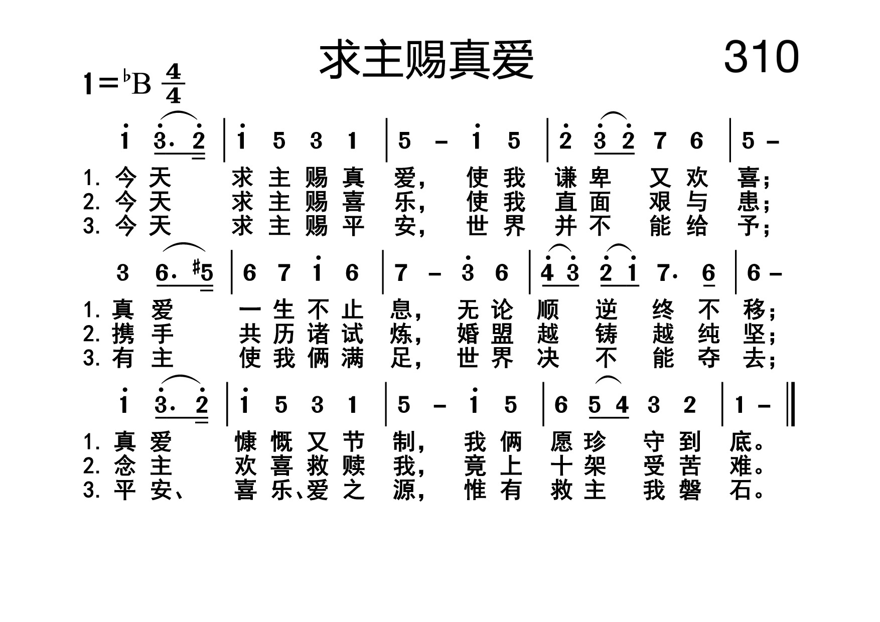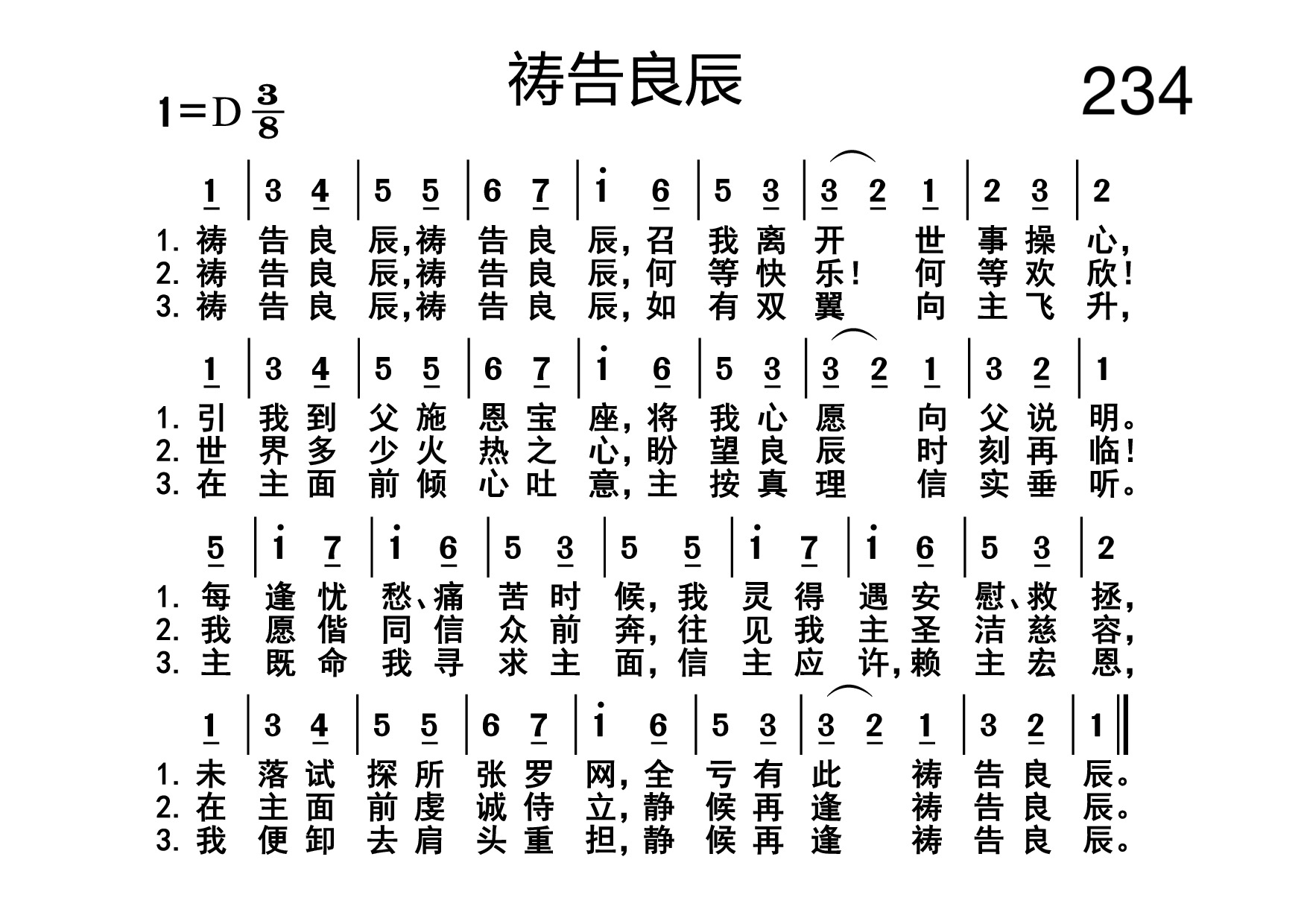 恳求圣父来临,助我赞美主名,敬献心声!惟主无上尊荣,惟主完全得胜,求主统治我们,万古之神!恳求圣子来临,彰显威严大能,垂听呼声!施恩与众子民,使主圣道振兴,建立善义公平,救主良朋!恳求圣灵来临,显出神圣见证,感化众人!惟主全能至尊,恳求统治众心,永不离开我们,大能圣灵!大哉三一真神,当受万民颂称,世世无尽!但愿我众齐来,欢然瞻仰圣明,献上爱戴崇敬,直到永恒!
