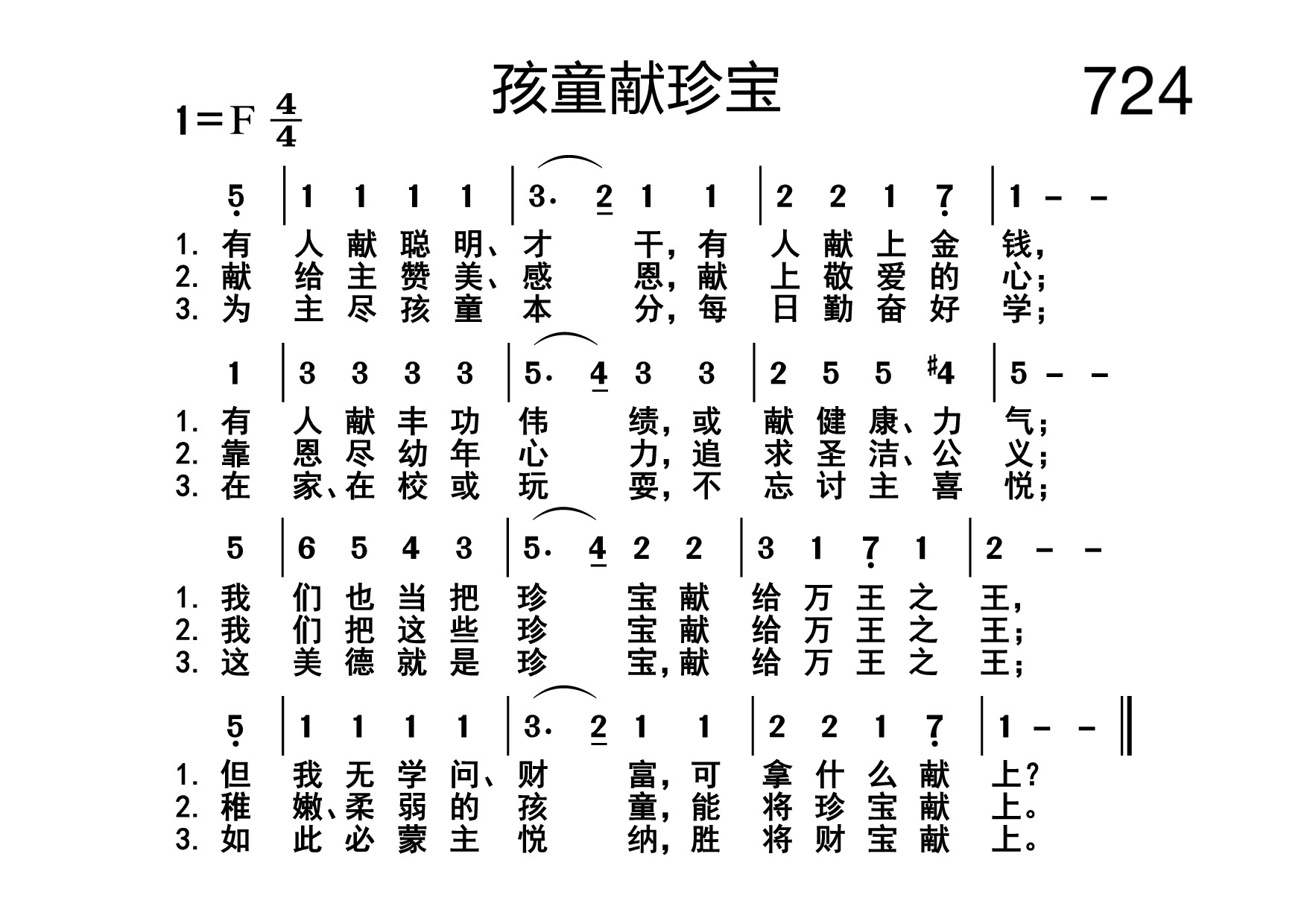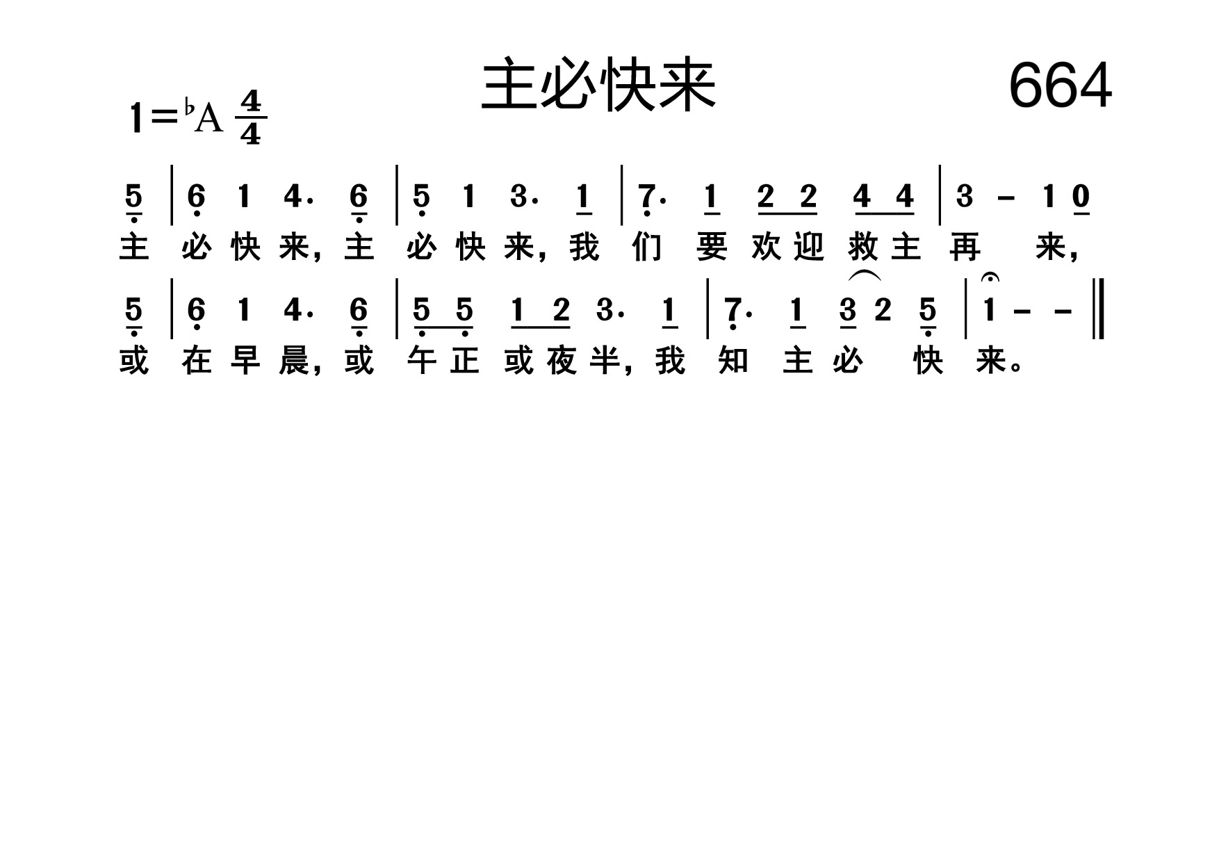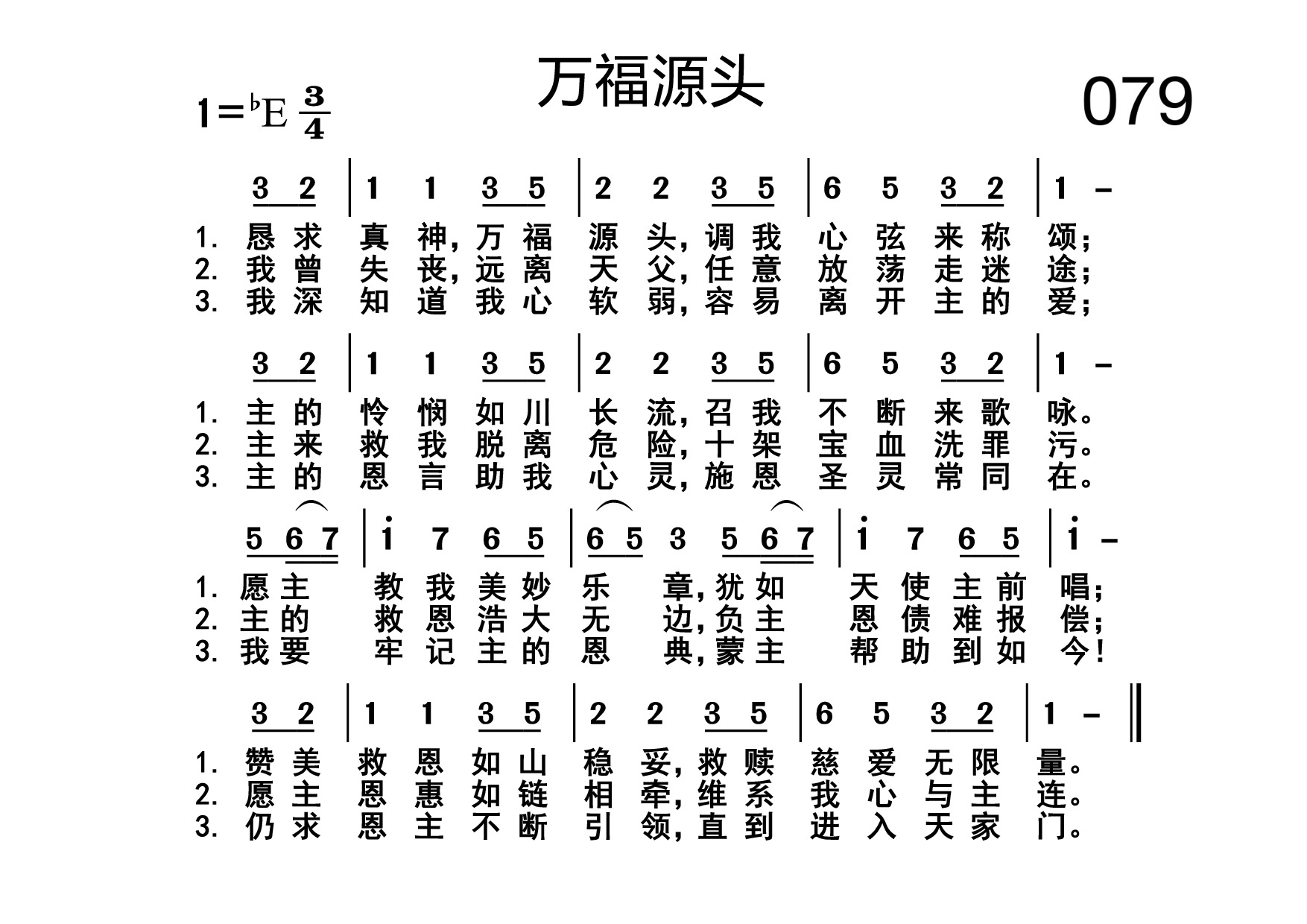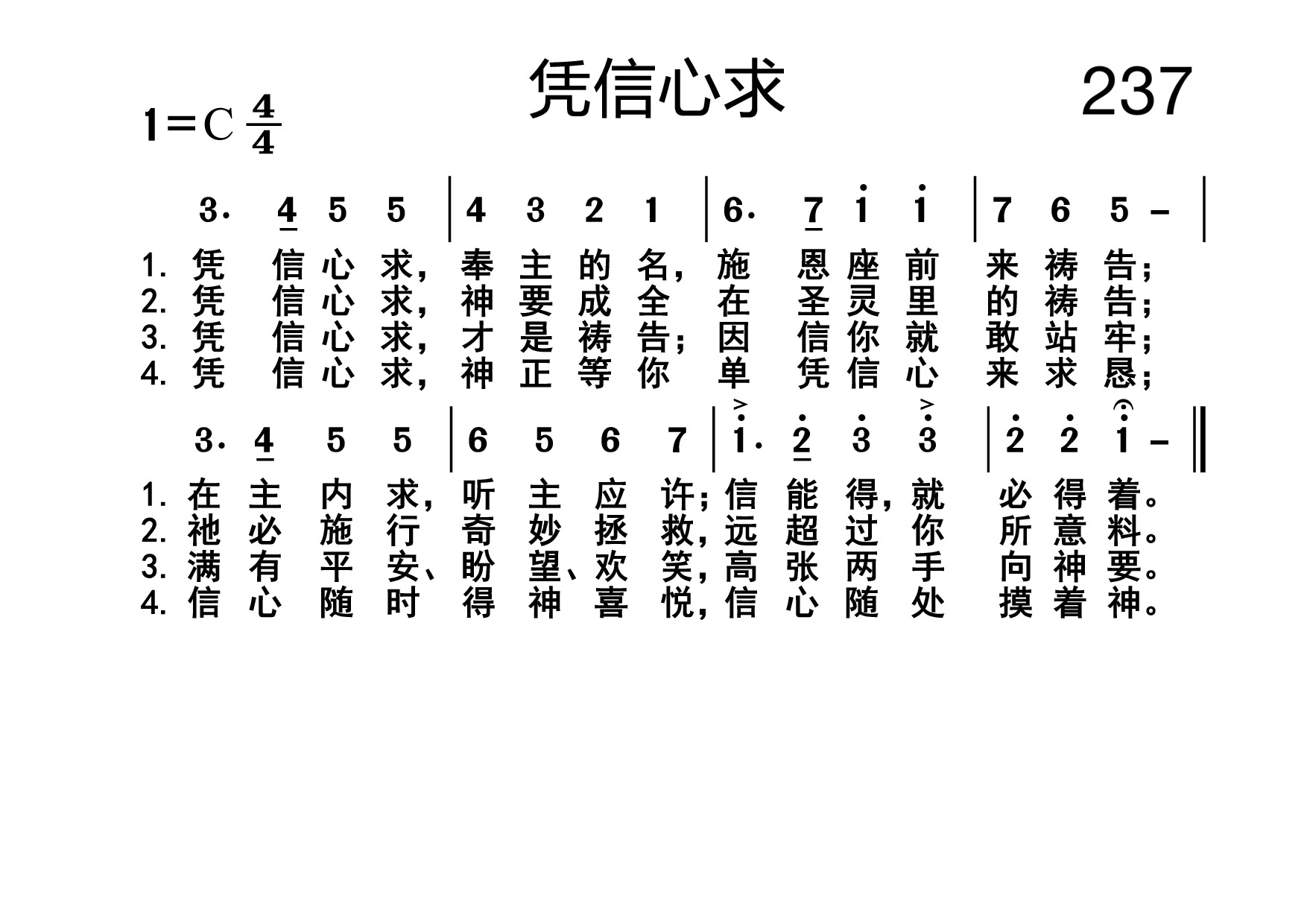 恳求圣父来临,助我赞美主名,敬献心声!惟主无上尊荣,惟主完全得胜,求主统治我们,万古之神!恳求圣子来临,彰显威严大能,垂听呼声!施恩与众子民,使主圣道振兴,建立善义公平,救主良朋!恳求圣灵来临,显出神圣见证,感化众人!惟主全能至尊,恳求统治众心,永不离开我们,大能圣灵!大哉三一真神,当受万民颂称,世世无尽!但愿我众齐来,欢然瞻仰圣明,献上爱戴崇敬,直到永恒!
