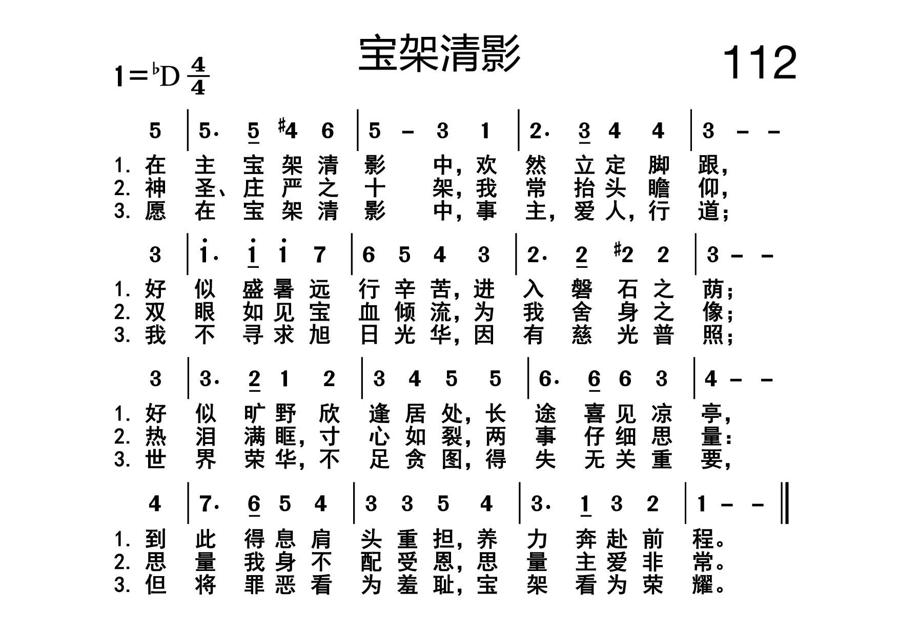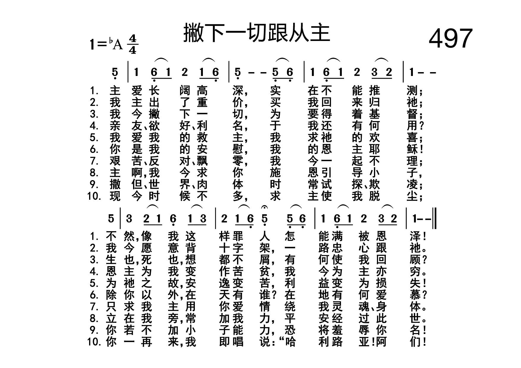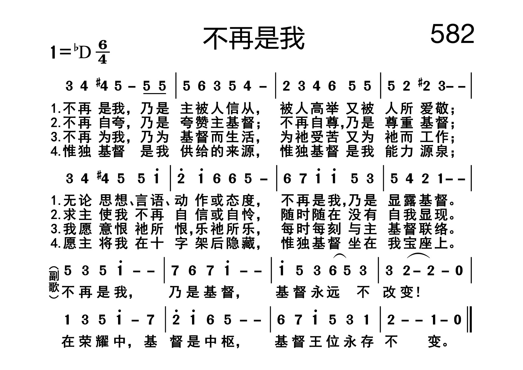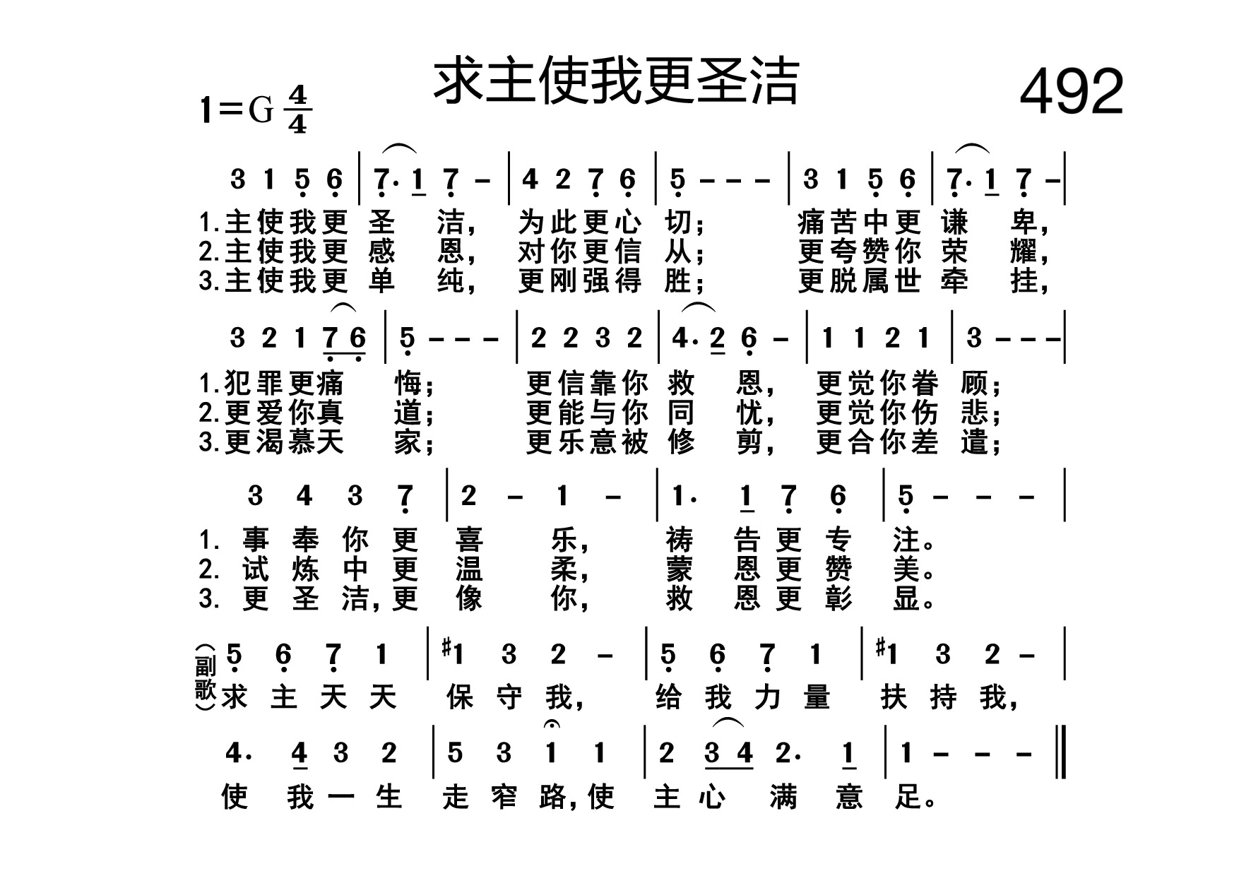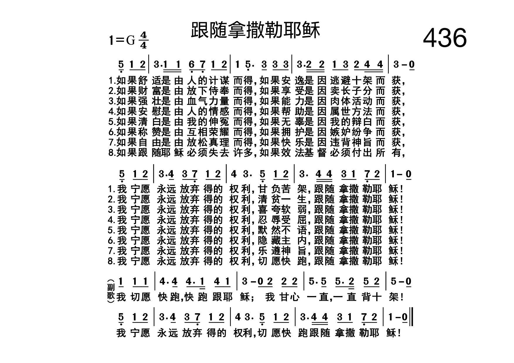 一 你怎没有伤痕?没有伤痕在你肋旁?你名反倒远播四方,你光反倒照射辉煌,你怎没有伤痕? 二 你怎没有伤痕?我是受迫挂在树上,四围尽是残忍、狂妄,我是受尽一切创伤,你怎没有伤痕? 三 怎能你无伤痕?仆人该与主人同样!本该与我同受创伤,而你却是完整无恙!怎能你无伤痕? 四 怎能你无伤痕?他们为我受人捆绑,枷锁、监禁,并且流放,或是舍身,喂狮广场,怎能你无伤痕? 五 你是没有伤痕!我受摧残,饮人锋芒,他们忍受忌恨、刀棒,你却平安,不缺宁康。你却没有伤痕! 六 你却没有伤痕!是否你向世俗依傍,你怕自己利益失丧,远远跟随,不甚明朗,所以没有伤痕? 七 你怎没有伤痕?没有疲倦、只有安享?能否有人忠心,受赏?能否有人跟隧羔羊,而他没有伤痕?