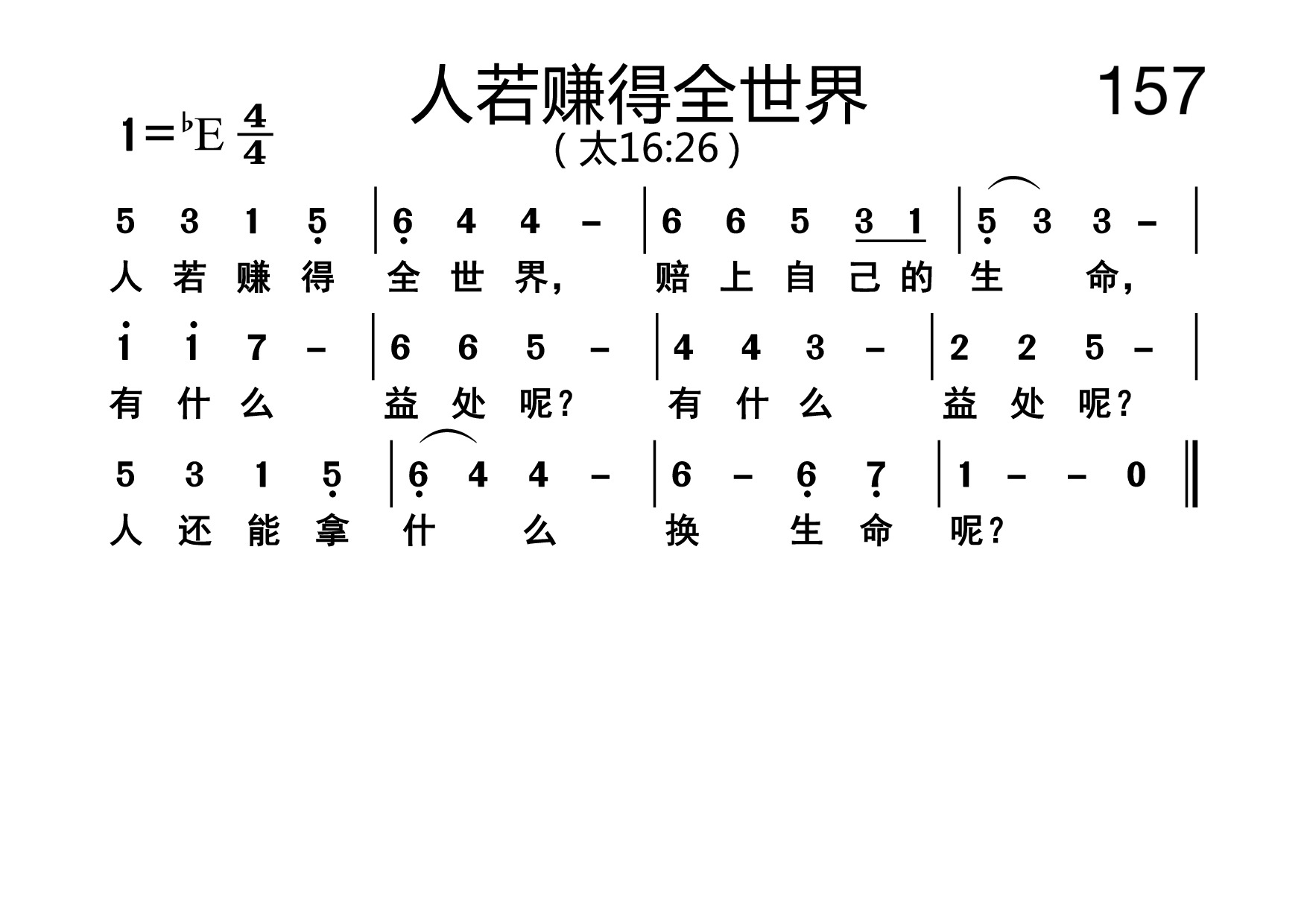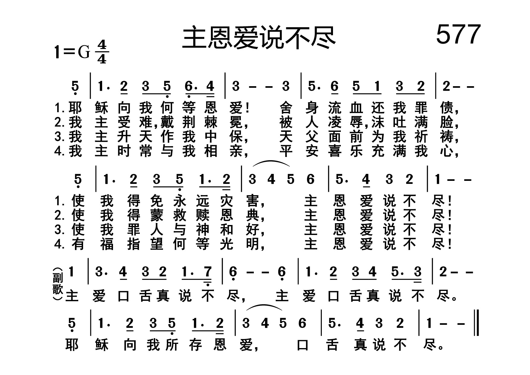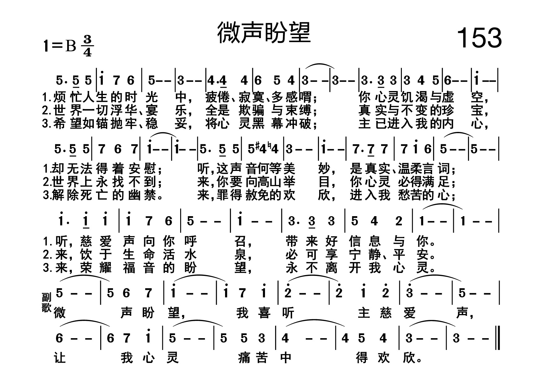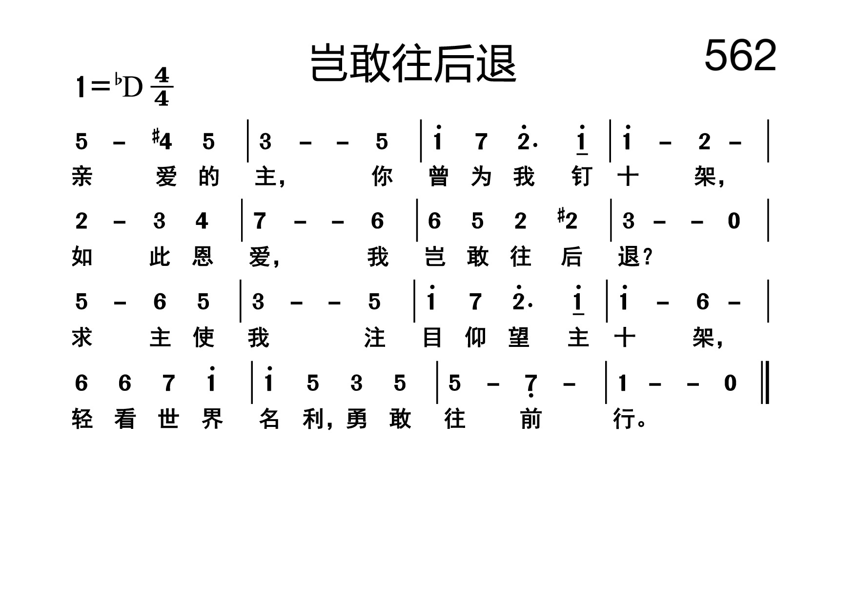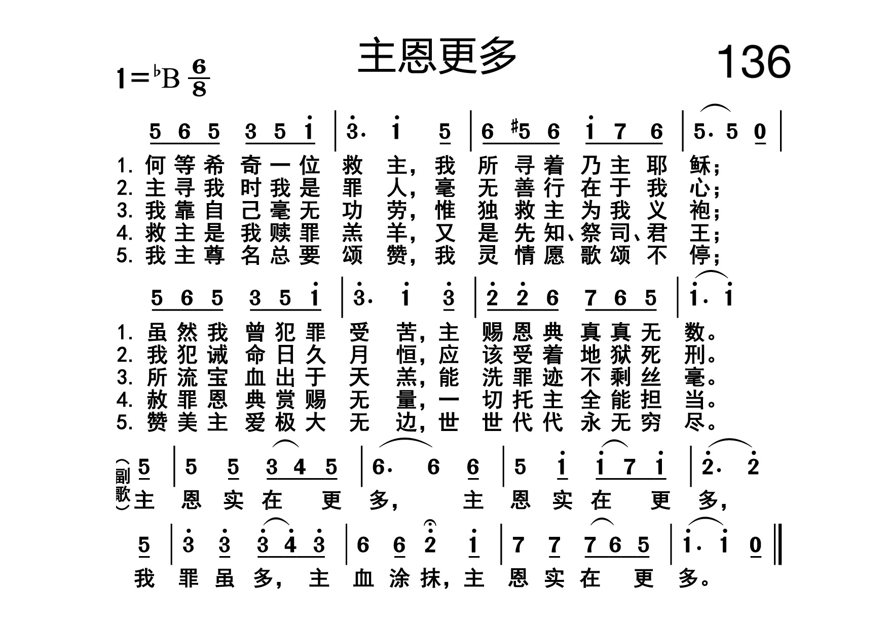 一 你怎没有伤痕?没有伤痕在你肋旁?你名反倒远播四方,你光反倒照射辉煌,你怎没有伤痕? 二 你怎没有伤痕?我是受迫挂在树上,四围尽是残忍、狂妄,我是受尽一切创伤,你怎没有伤痕? 三 怎能你无伤痕?仆人该与主人同样!本该与我同受创伤,而你却是完整无恙!怎能你无伤痕? 四 怎能你无伤痕?他们为我受人捆绑,枷锁、监禁,并且流放,或是舍身,喂狮广场,怎能你无伤痕? 五 你是没有伤痕!我受摧残,饮人锋芒,他们忍受忌恨、刀棒,你却平安,不缺宁康。你却没有伤痕! 六 你却没有伤痕!是否你向世俗依傍,你怕自己利益失丧,远远跟随,不甚明朗,所以没有伤痕? 七 你怎没有伤痕?没有疲倦、只有安享?能否有人忠心,受赏?能否有人跟隧羔羊,而他没有伤痕?