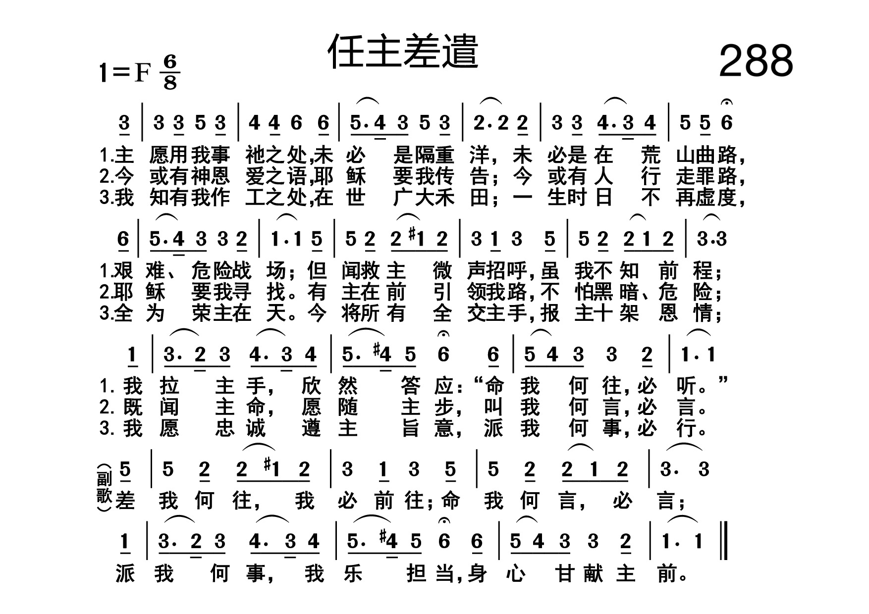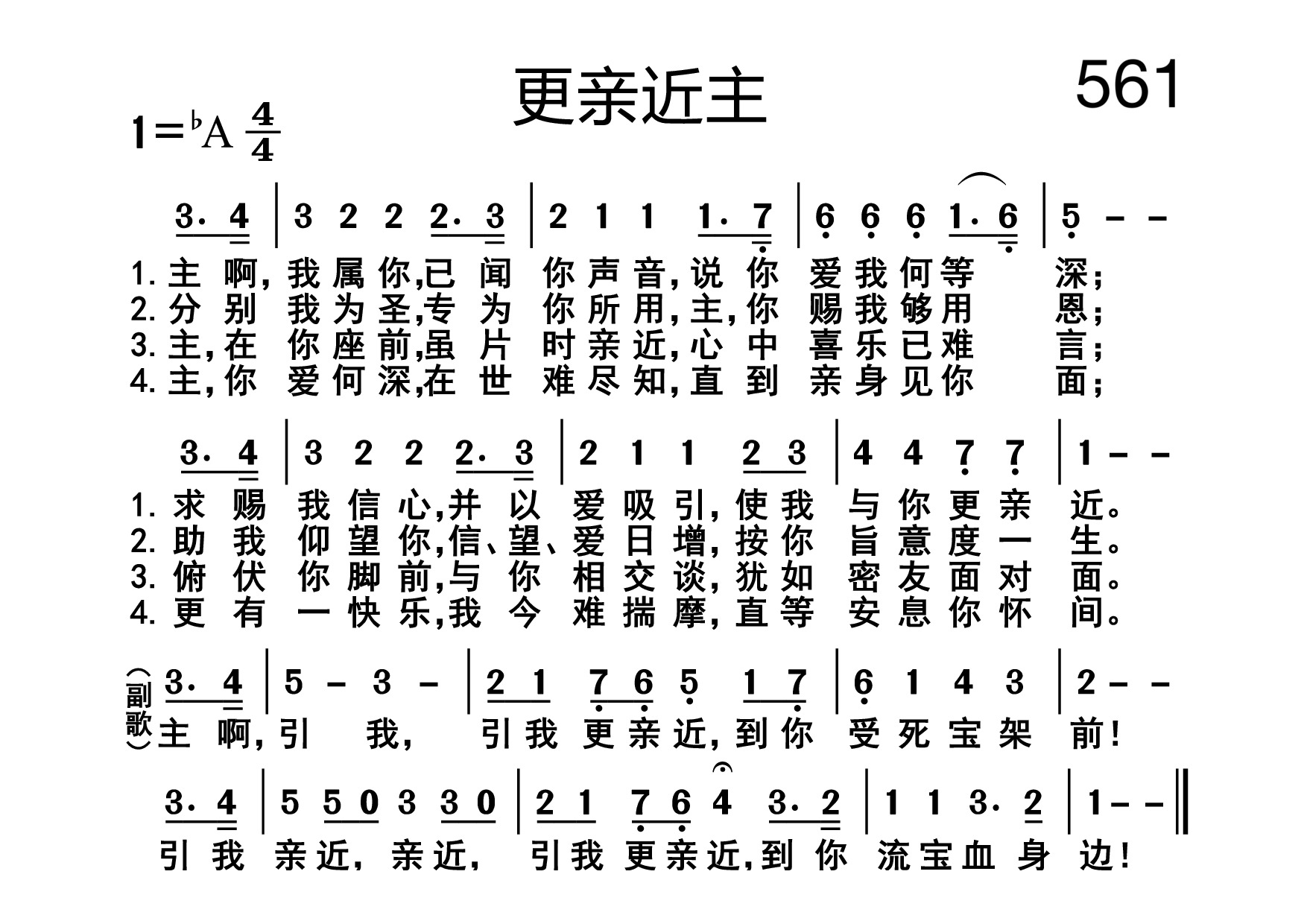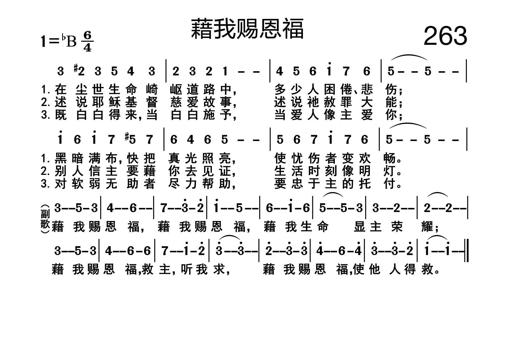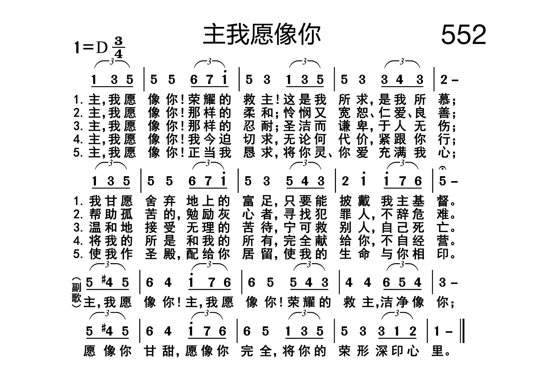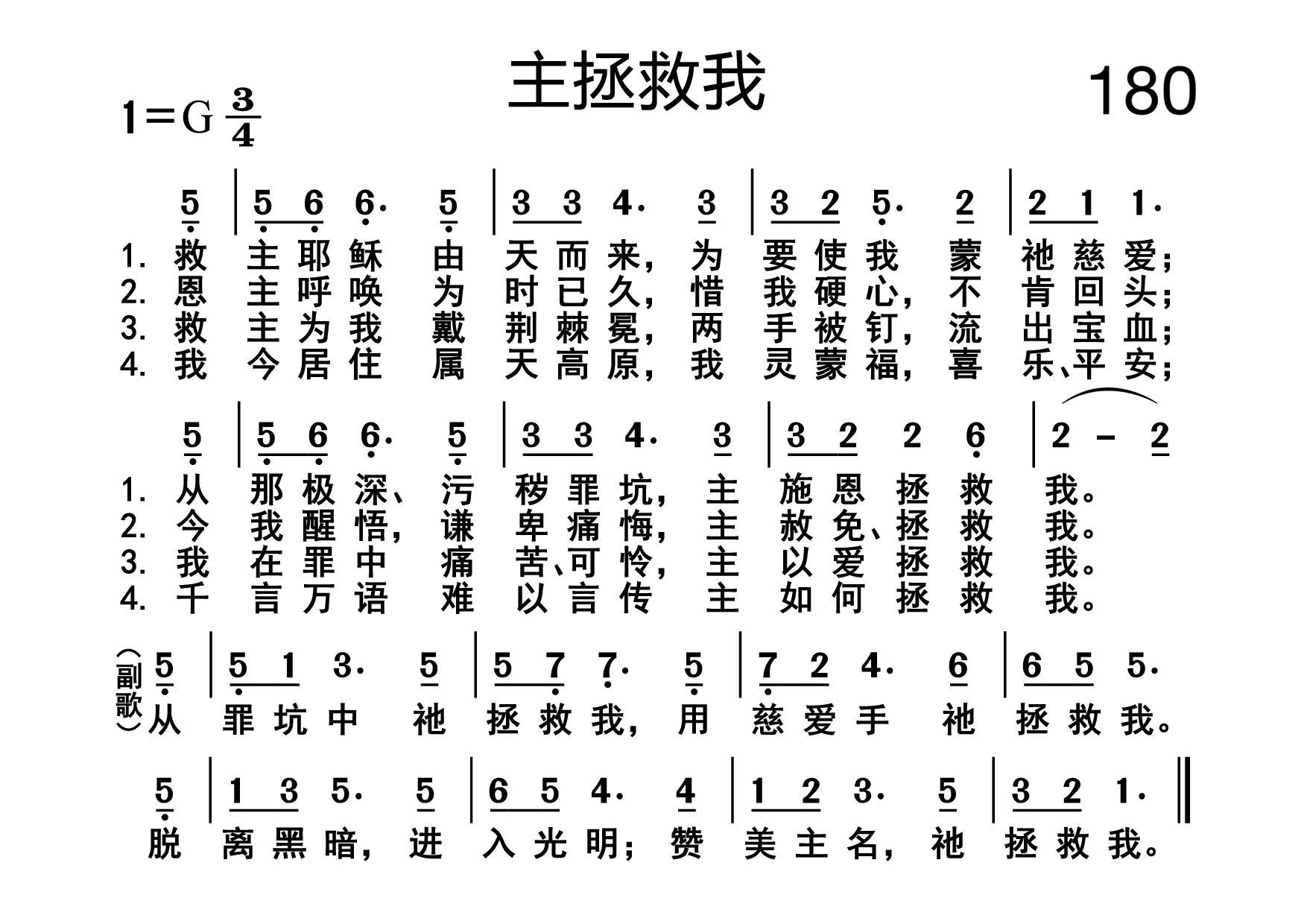 一 你怎没有伤痕?没有伤痕在你肋旁?你名反倒远播四方,你光反倒照射辉煌,你怎没有伤痕? 二 你怎没有伤痕?我是受迫挂在树上,四围尽是残忍、狂妄,我是受尽一切创伤,你怎没有伤痕? 三 怎能你无伤痕?仆人该与主人同样!本该与我同受创伤,而你却是完整无恙!怎能你无伤痕? 四 怎能你无伤痕?他们为我受人捆绑,枷锁、监禁,并且流放,或是舍身,喂狮广场,怎能你无伤痕? 五 你是没有伤痕!我受摧残,饮人锋芒,他们忍受忌恨、刀棒,你却平安,不缺宁康。你却没有伤痕! 六 你却没有伤痕!是否你向世俗依傍,你怕自己利益失丧,远远跟随,不甚明朗,所以没有伤痕? 七 你怎没有伤痕?没有疲倦、只有安享?能否有人忠心,受赏?能否有人跟隧羔羊,而他没有伤痕?