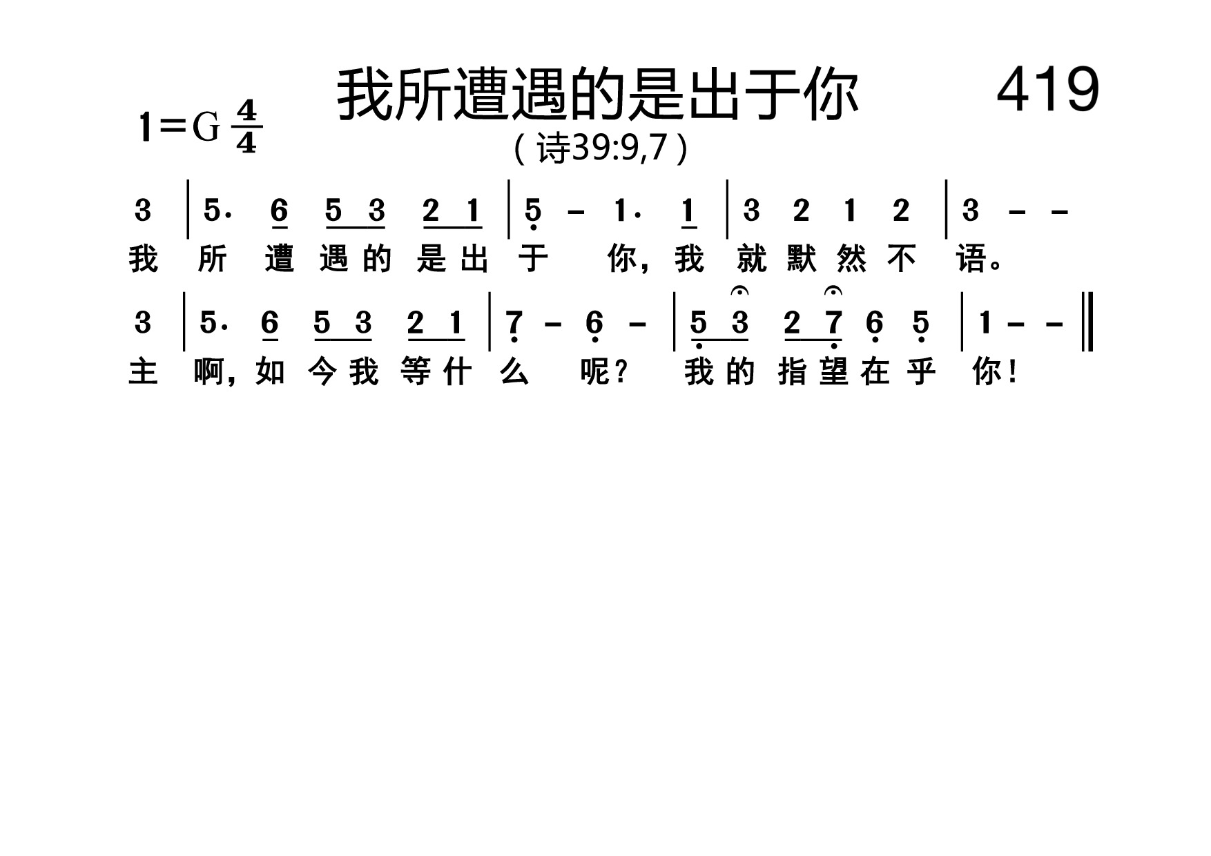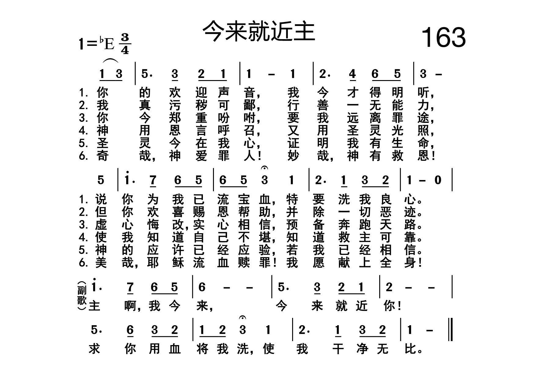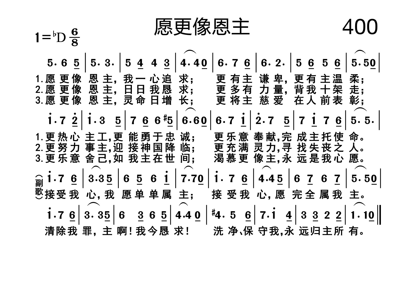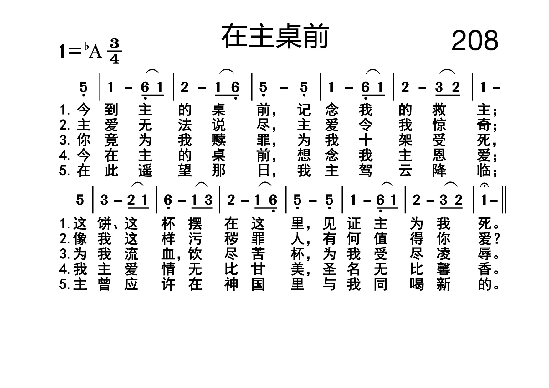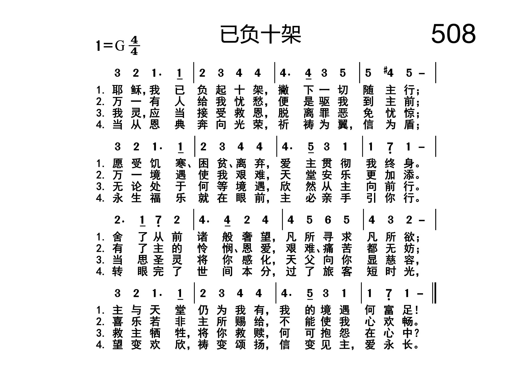 一 你怎没有伤痕?没有伤痕在你肋旁?你名反倒远播四方,你光反倒照射辉煌,你怎没有伤痕? 二 你怎没有伤痕?我是受迫挂在树上,四围尽是残忍、狂妄,我是受尽一切创伤,你怎没有伤痕? 三 怎能你无伤痕?仆人该与主人同样!本该与我同受创伤,而你却是完整无恙!怎能你无伤痕? 四 怎能你无伤痕?他们为我受人捆绑,枷锁、监禁,并且流放,或是舍身,喂狮广场,怎能你无伤痕? 五 你是没有伤痕!我受摧残,饮人锋芒,他们忍受忌恨、刀棒,你却平安,不缺宁康。你却没有伤痕! 六 你却没有伤痕!是否你向世俗依傍,你怕自己利益失丧,远远跟随,不甚明朗,所以没有伤痕? 七 你怎没有伤痕?没有疲倦、只有安享?能否有人忠心,受赏?能否有人跟隧羔羊,而他没有伤痕?