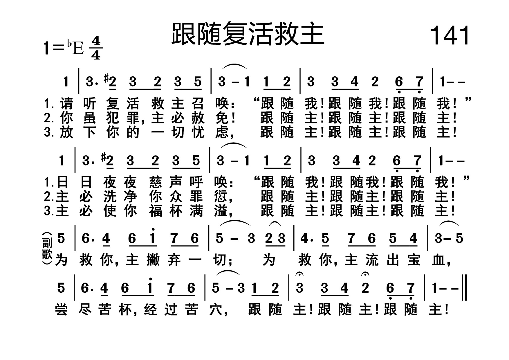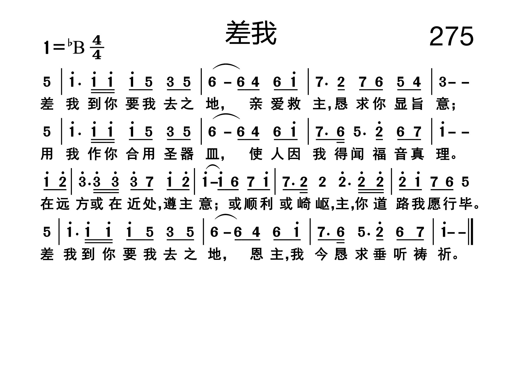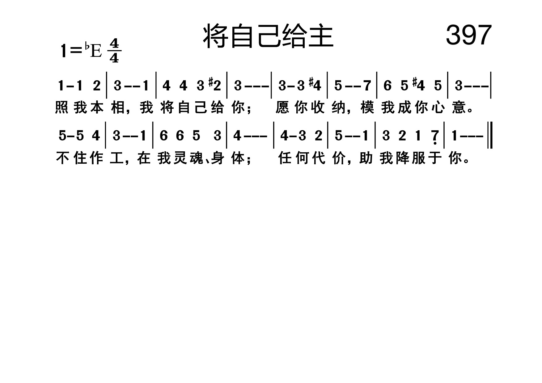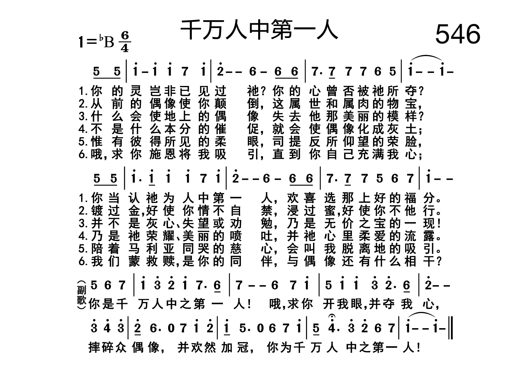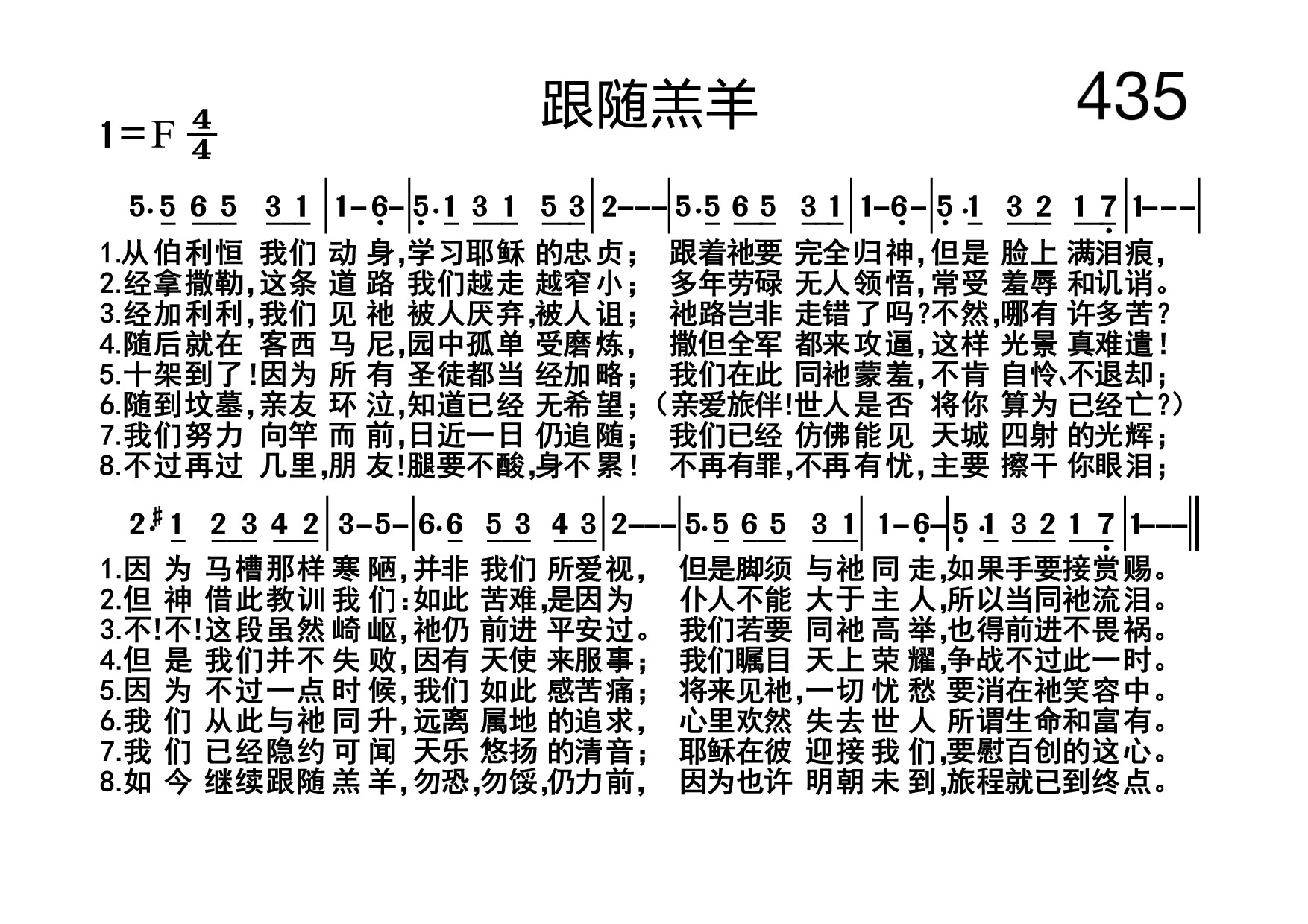 一 你怎没有伤痕?没有伤痕在你肋旁?你名反倒远播四方,你光反倒照射辉煌,你怎没有伤痕? 二 你怎没有伤痕?我是受迫挂在树上,四围尽是残忍、狂妄,我是受尽一切创伤,你怎没有伤痕? 三 怎能你无伤痕?仆人该与主人同样!本该与我同受创伤,而你却是完整无恙!怎能你无伤痕? 四 怎能你无伤痕?他们为我受人捆绑,枷锁、监禁,并且流放,或是舍身,喂狮广场,怎能你无伤痕? 五 你是没有伤痕!我受摧残,饮人锋芒,他们忍受忌恨、刀棒,你却平安,不缺宁康。你却没有伤痕! 六 你却没有伤痕!是否你向世俗依傍,你怕自己利益失丧,远远跟随,不甚明朗,所以没有伤痕? 七 你怎没有伤痕?没有疲倦、只有安享?能否有人忠心,受赏?能否有人跟隧羔羊,而他没有伤痕?