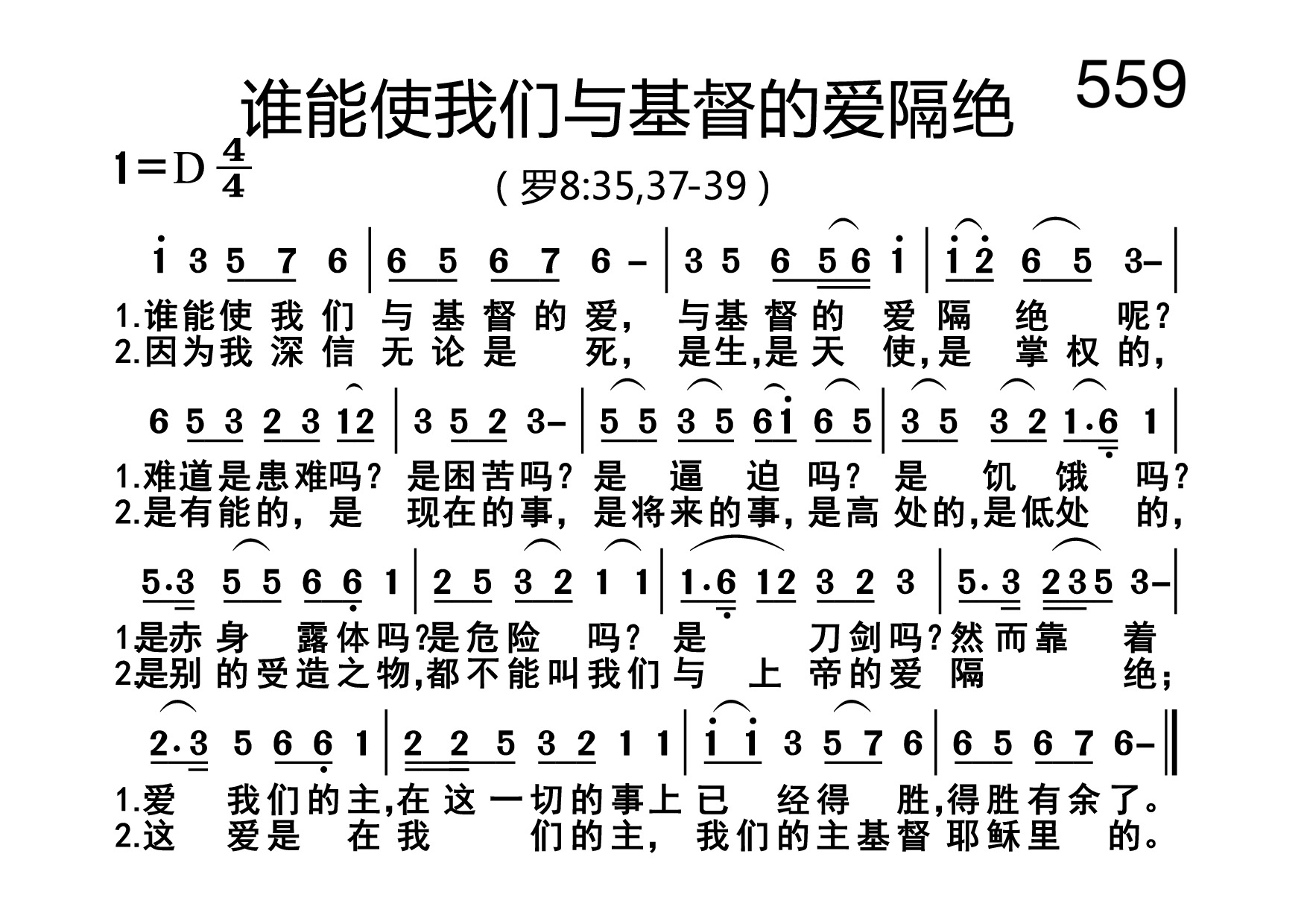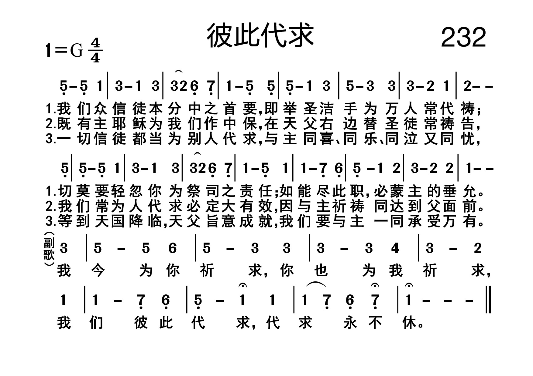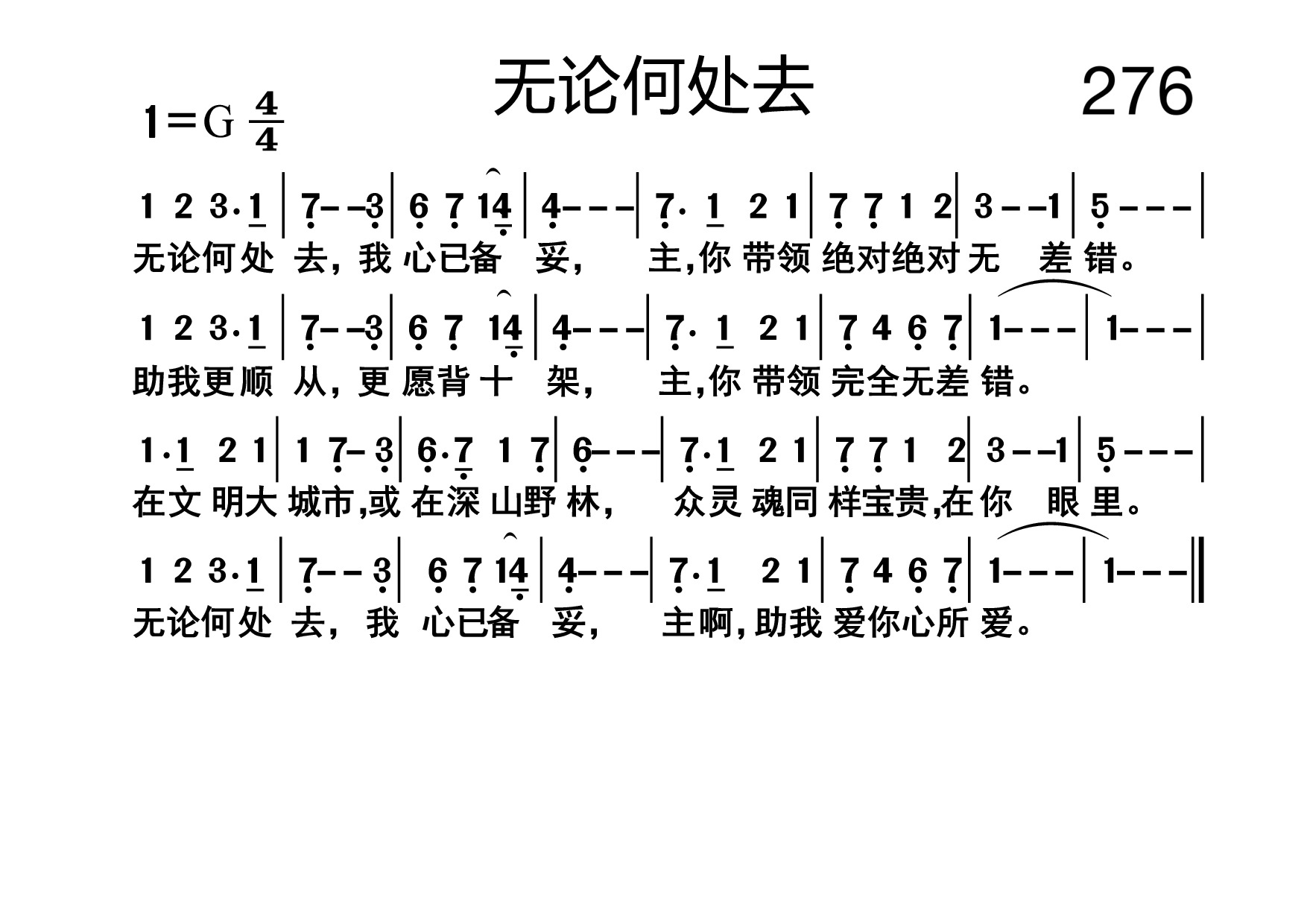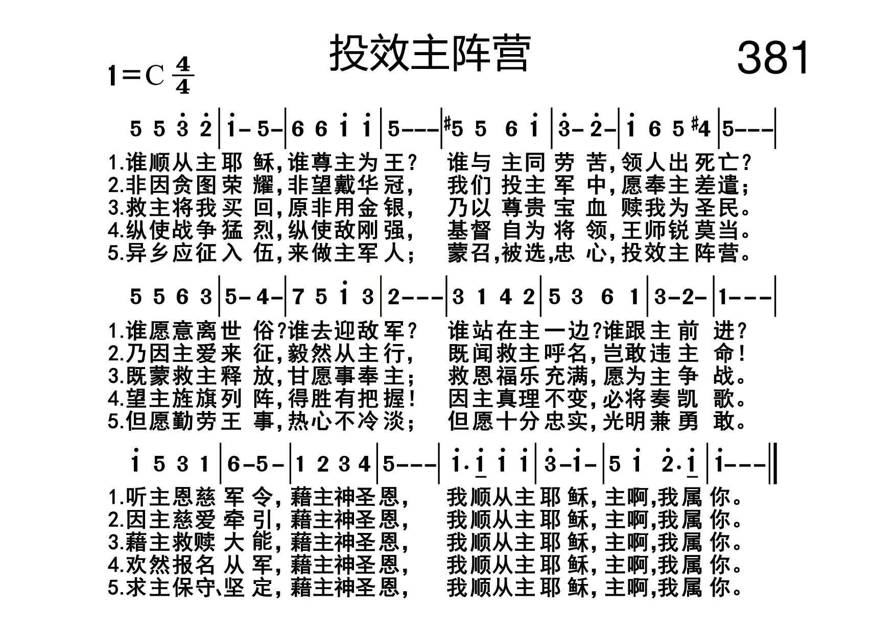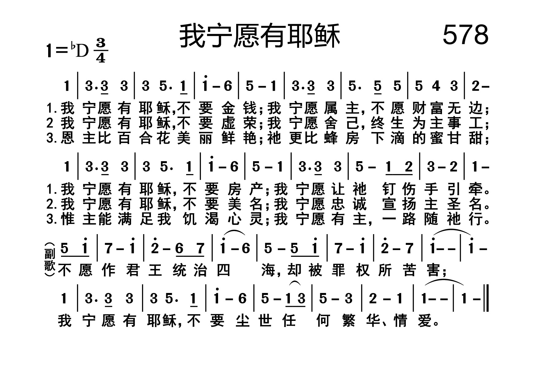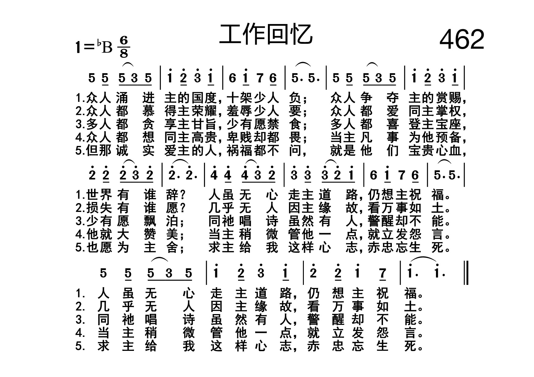 一 你怎没有伤痕?没有伤痕在你肋旁?你名反倒远播四方,你光反倒照射辉煌,你怎没有伤痕? 二 你怎没有伤痕?我是受迫挂在树上,四围尽是残忍、狂妄,我是受尽一切创伤,你怎没有伤痕? 三 怎能你无伤痕?仆人该与主人同样!本该与我同受创伤,而你却是完整无恙!怎能你无伤痕? 四 怎能你无伤痕?他们为我受人捆绑,枷锁、监禁,并且流放,或是舍身,喂狮广场,怎能你无伤痕? 五 你是没有伤痕!我受摧残,饮人锋芒,他们忍受忌恨、刀棒,你却平安,不缺宁康。你却没有伤痕! 六 你却没有伤痕!是否你向世俗依傍,你怕自己利益失丧,远远跟随,不甚明朗,所以没有伤痕? 七 你怎没有伤痕?没有疲倦、只有安享?能否有人忠心,受赏?能否有人跟隧羔羊,而他没有伤痕?