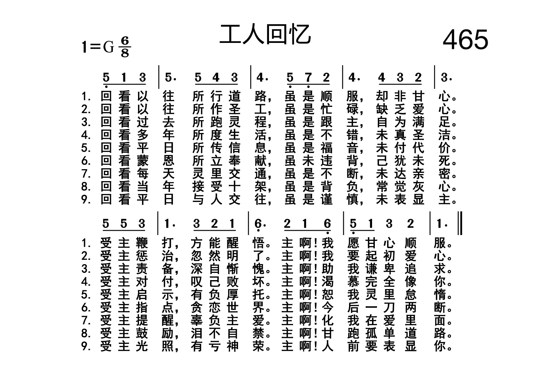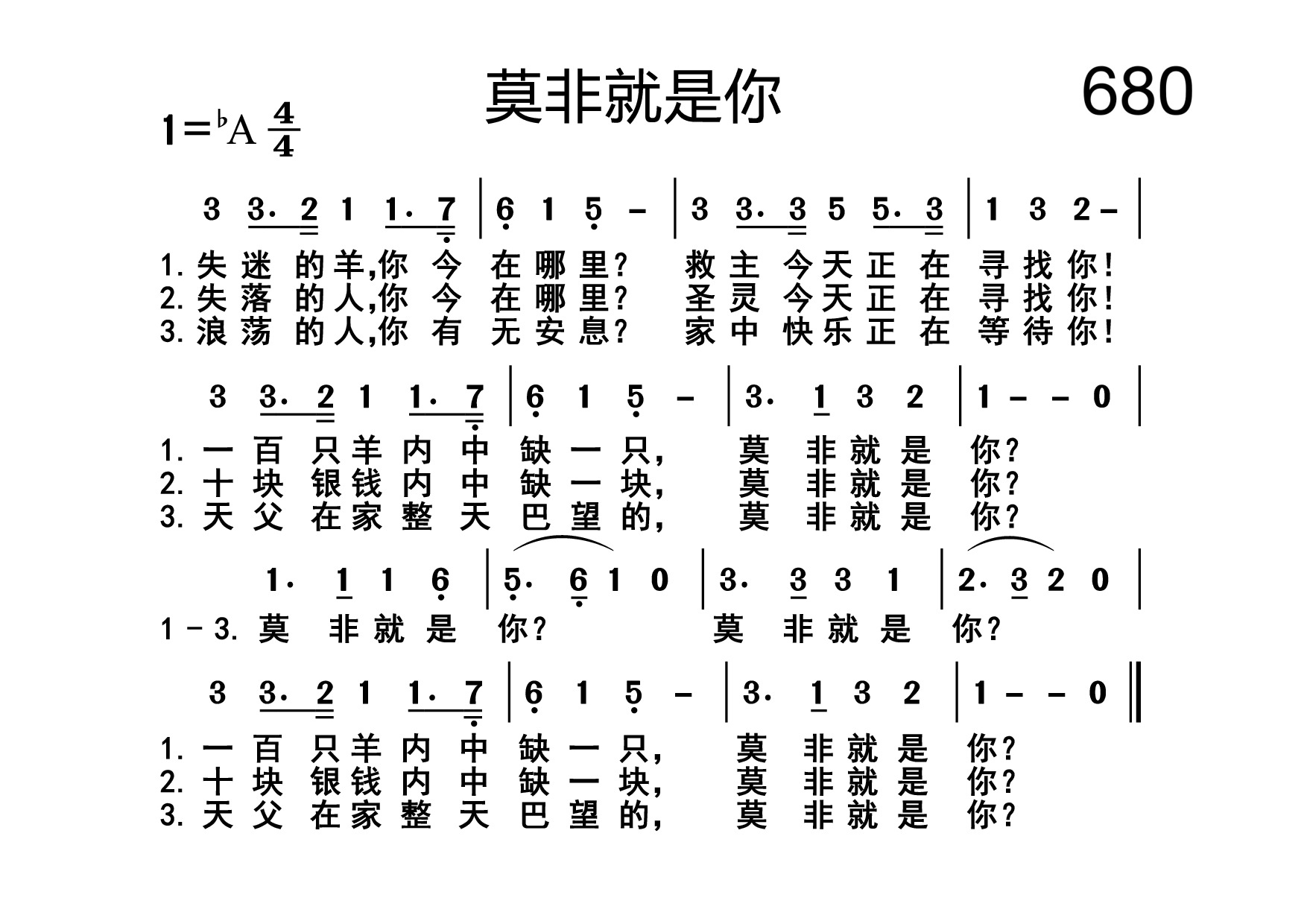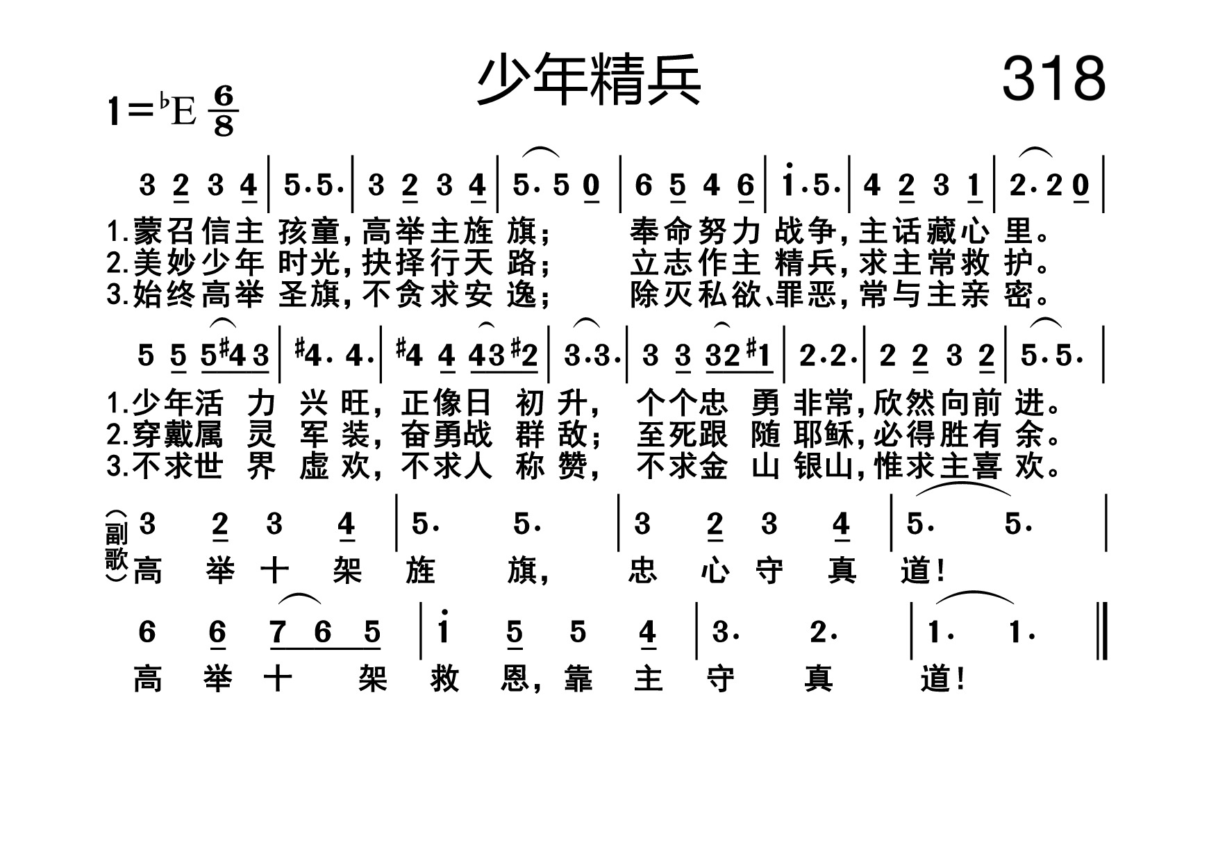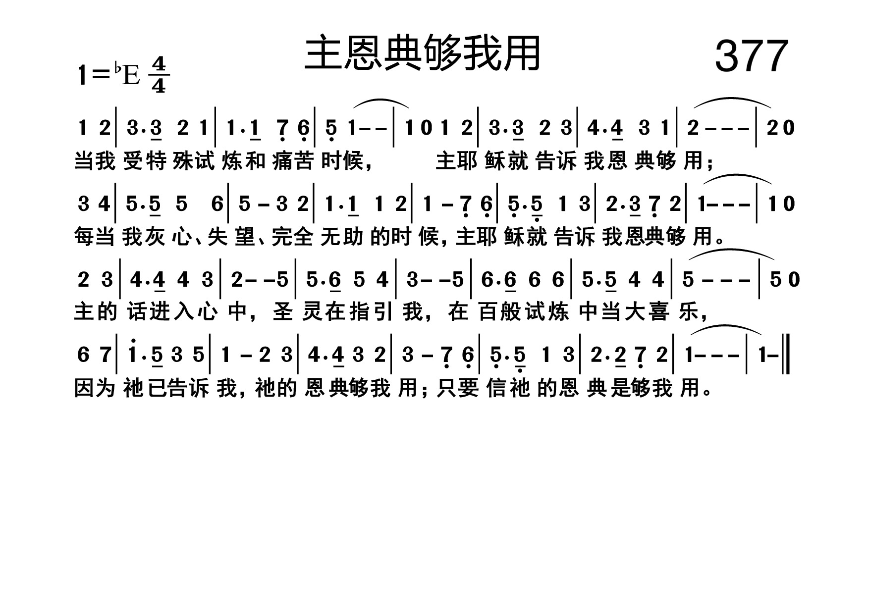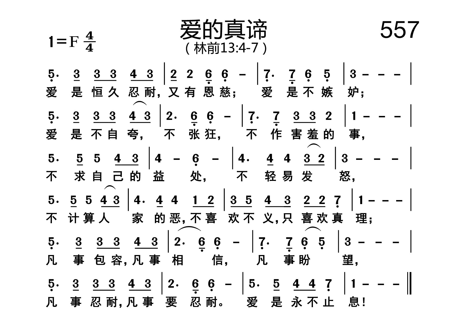 一 你怎没有伤痕?没有伤痕在你肋旁?你名反倒远播四方,你光反倒照射辉煌,你怎没有伤痕? 二 你怎没有伤痕?我是受迫挂在树上,四围尽是残忍、狂妄,我是受尽一切创伤,你怎没有伤痕? 三 怎能你无伤痕?仆人该与主人同样!本该与我同受创伤,而你却是完整无恙!怎能你无伤痕? 四 怎能你无伤痕?他们为我受人捆绑,枷锁、监禁,并且流放,或是舍身,喂狮广场,怎能你无伤痕? 五 你是没有伤痕!我受摧残,饮人锋芒,他们忍受忌恨、刀棒,你却平安,不缺宁康。你却没有伤痕! 六 你却没有伤痕!是否你向世俗依傍,你怕自己利益失丧,远远跟随,不甚明朗,所以没有伤痕? 七 你怎没有伤痕?没有疲倦、只有安享?能否有人忠心,受赏?能否有人跟隧羔羊,而他没有伤痕?