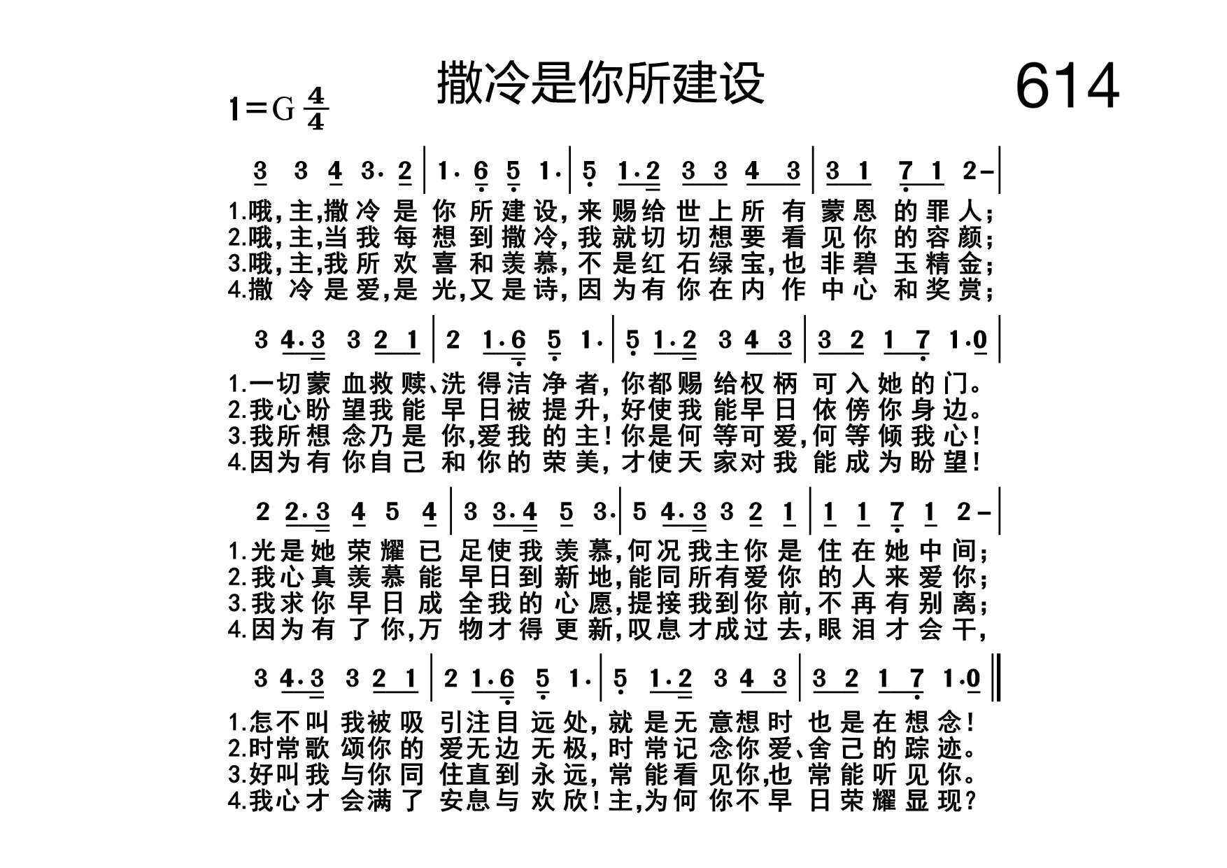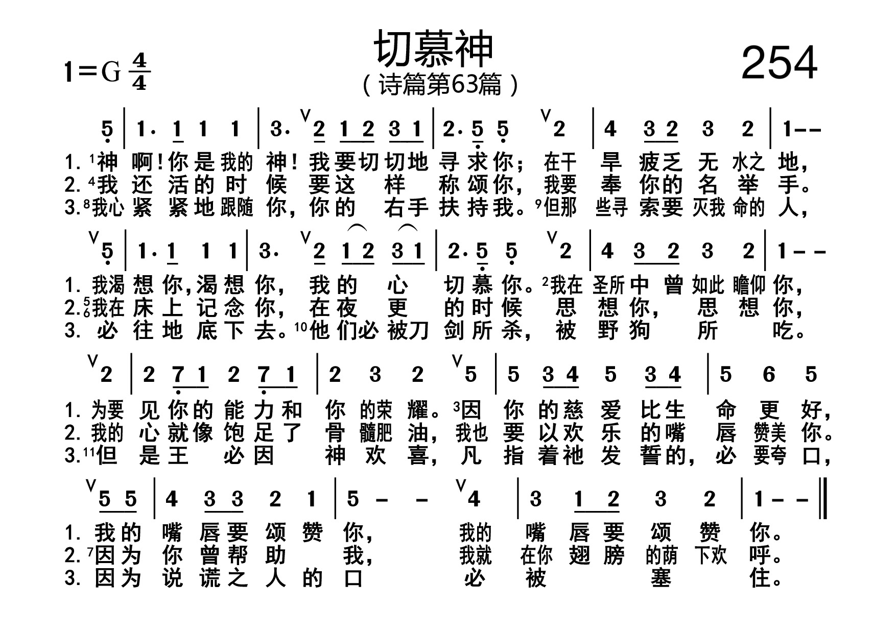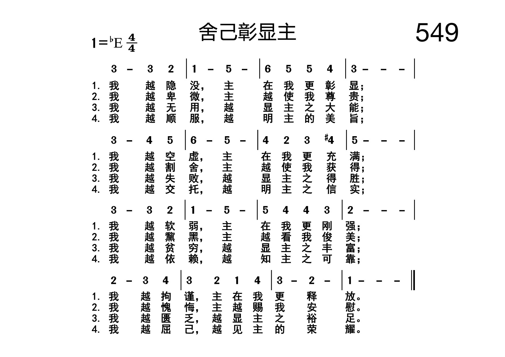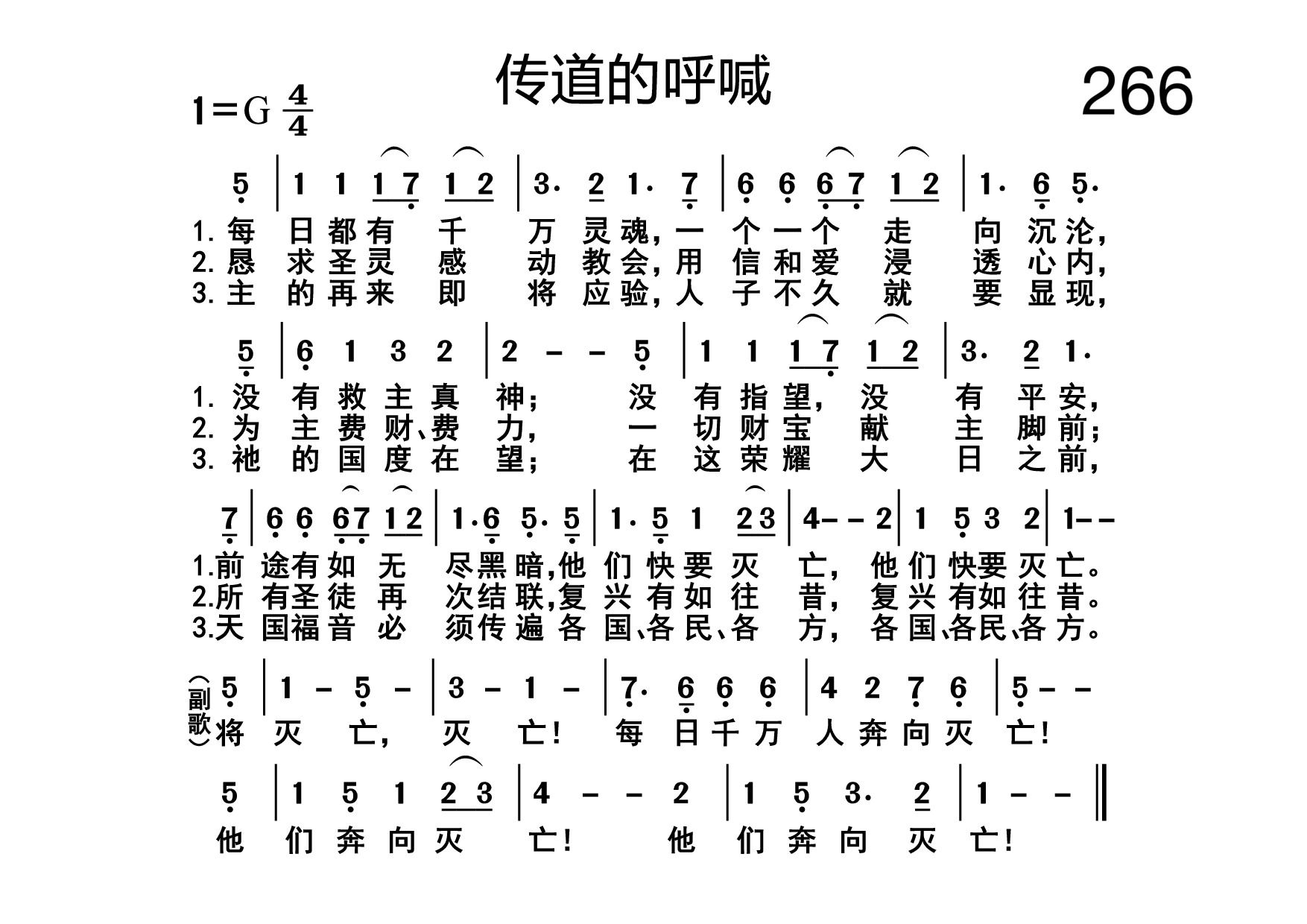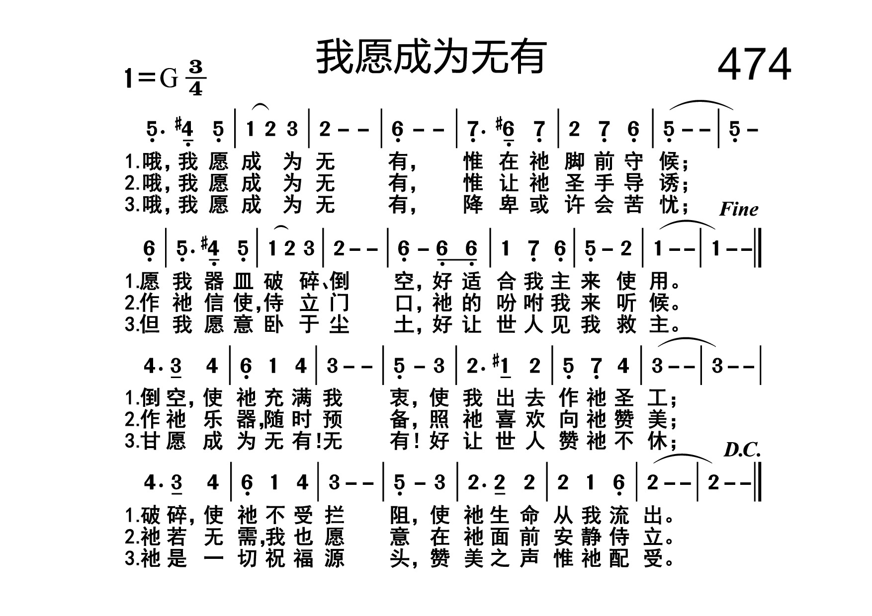 一 你怎没有伤痕?没有伤痕在你肋旁?你名反倒远播四方,你光反倒照射辉煌,你怎没有伤痕? 二 你怎没有伤痕?我是受迫挂在树上,四围尽是残忍、狂妄,我是受尽一切创伤,你怎没有伤痕? 三 怎能你无伤痕?仆人该与主人同样!本该与我同受创伤,而你却是完整无恙!怎能你无伤痕? 四 怎能你无伤痕?他们为我受人捆绑,枷锁、监禁,并且流放,或是舍身,喂狮广场,怎能你无伤痕? 五 你是没有伤痕!我受摧残,饮人锋芒,他们忍受忌恨、刀棒,你却平安,不缺宁康。你却没有伤痕! 六 你却没有伤痕!是否你向世俗依傍,你怕自己利益失丧,远远跟随,不甚明朗,所以没有伤痕? 七 你怎没有伤痕?没有疲倦、只有安享?能否有人忠心,受赏?能否有人跟隧羔羊,而他没有伤痕?