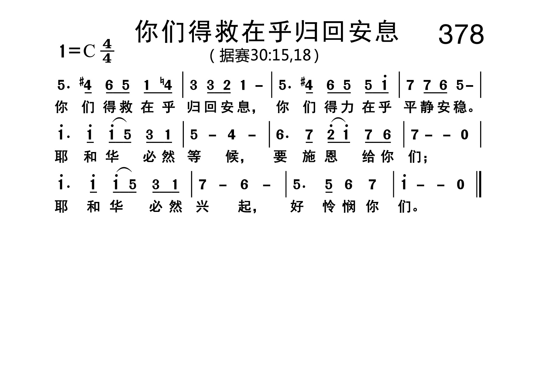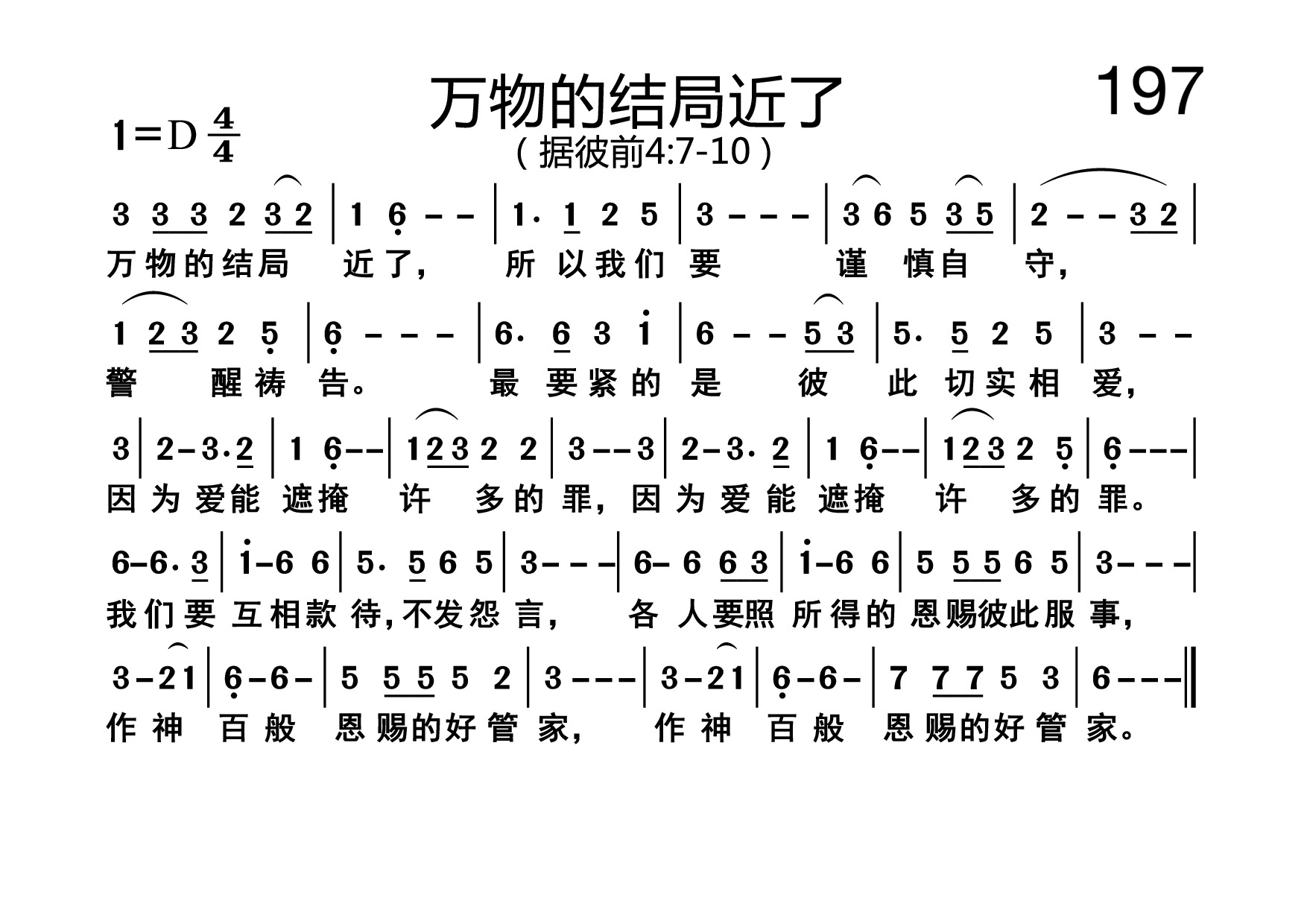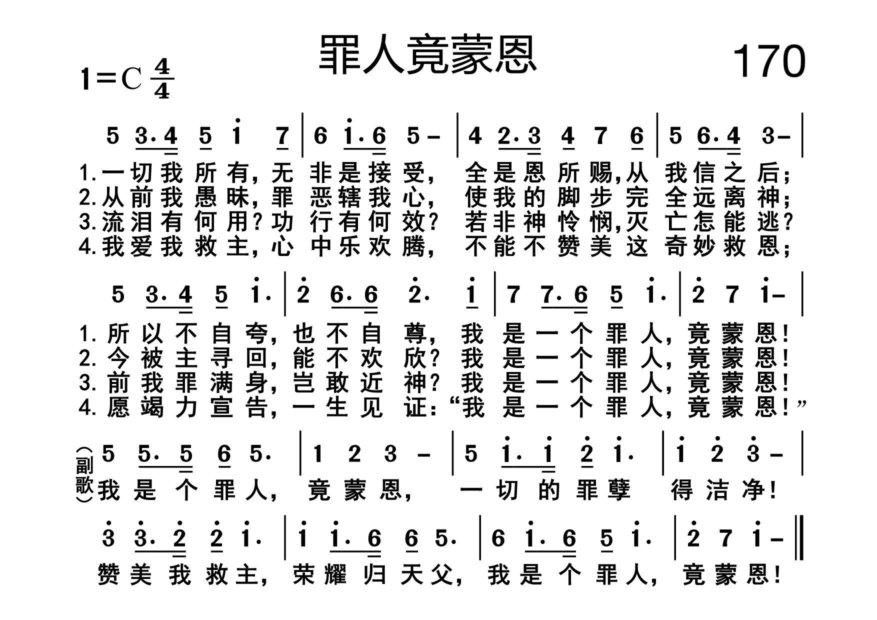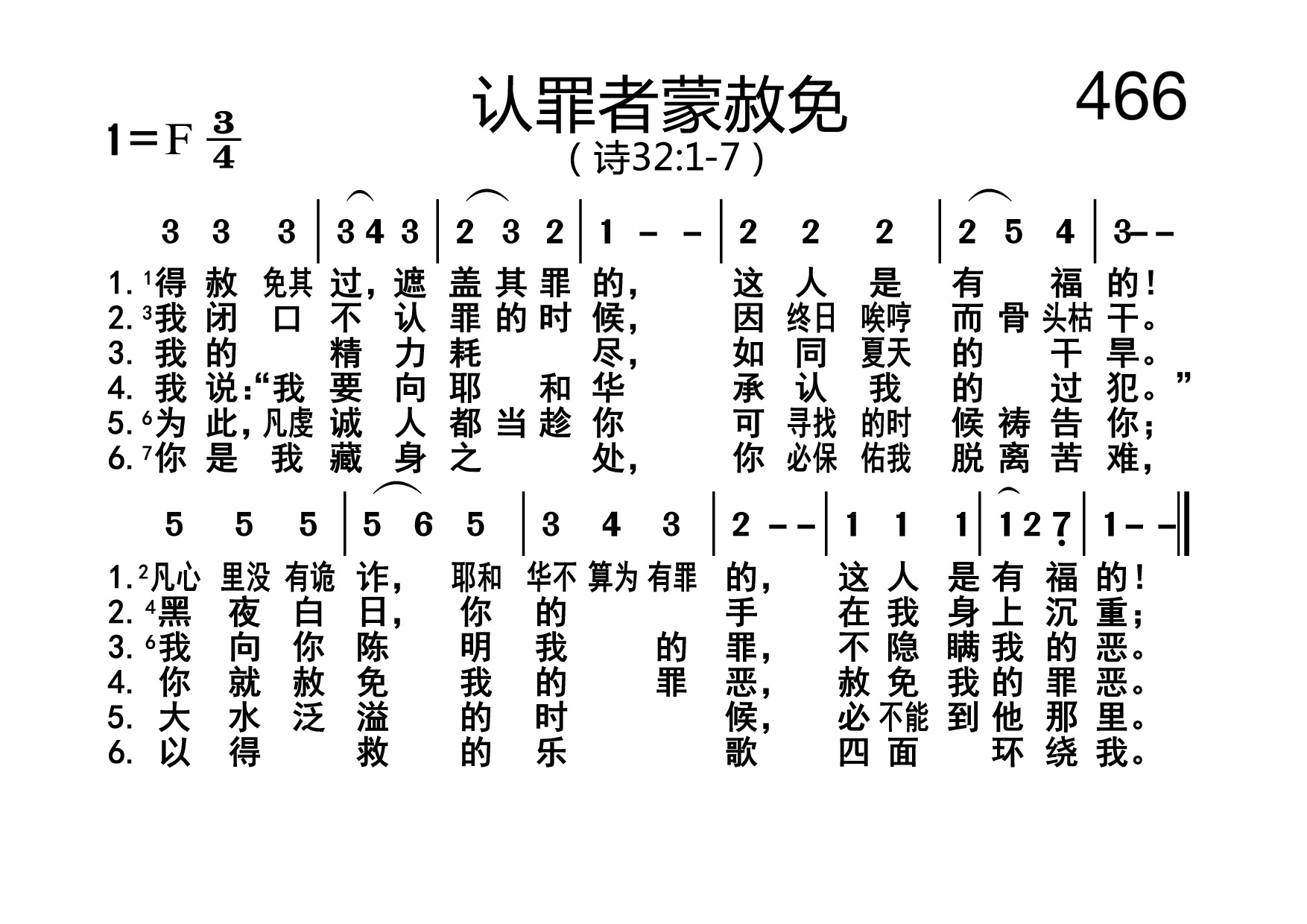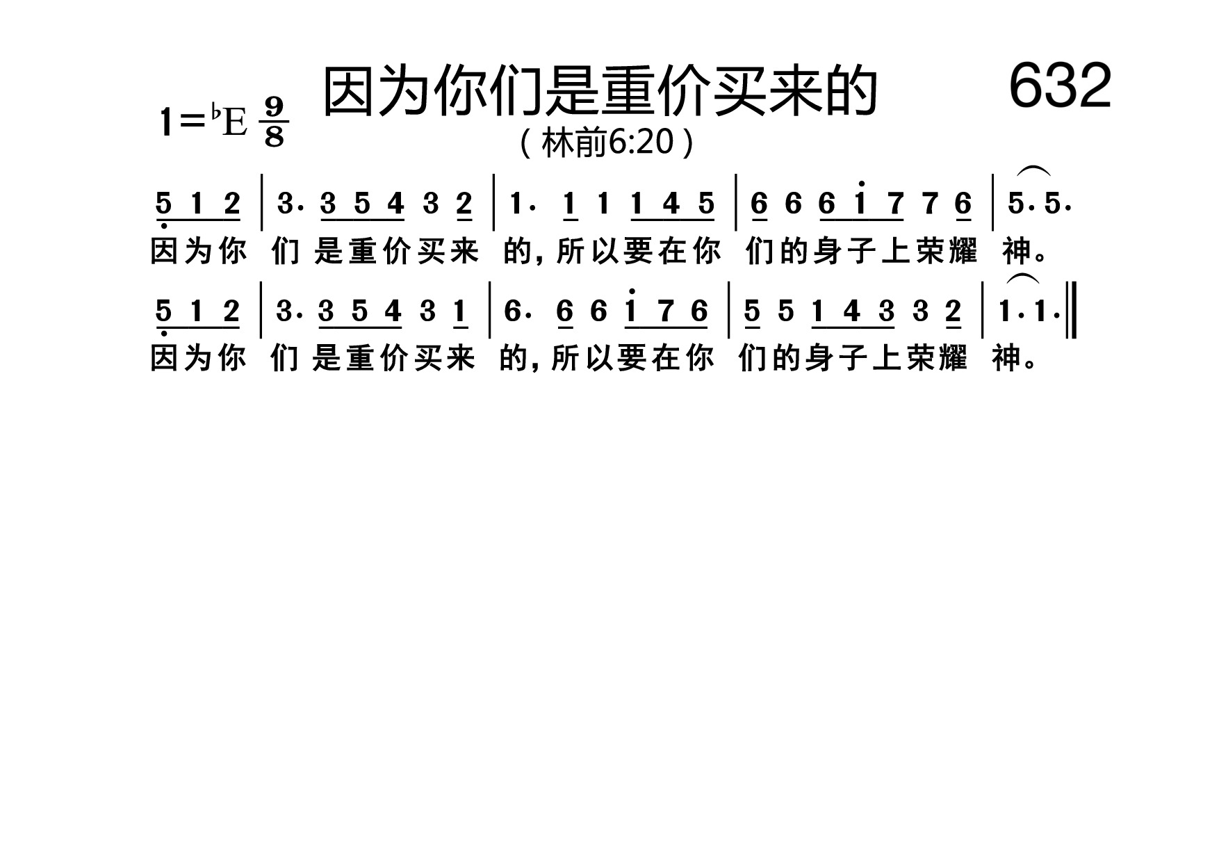 一 你怎没有伤痕?没有伤痕在你肋旁?你名反倒远播四方,你光反倒照射辉煌,你怎没有伤痕? 二 你怎没有伤痕?我是受迫挂在树上,四围尽是残忍、狂妄,我是受尽一切创伤,你怎没有伤痕? 三 怎能你无伤痕?仆人该与主人同样!本该与我同受创伤,而你却是完整无恙!怎能你无伤痕? 四 怎能你无伤痕?他们为我受人捆绑,枷锁、监禁,并且流放,或是舍身,喂狮广场,怎能你无伤痕? 五 你是没有伤痕!我受摧残,饮人锋芒,他们忍受忌恨、刀棒,你却平安,不缺宁康。你却没有伤痕! 六 你却没有伤痕!是否你向世俗依傍,你怕自己利益失丧,远远跟随,不甚明朗,所以没有伤痕? 七 你怎没有伤痕?没有疲倦、只有安享?能否有人忠心,受赏?能否有人跟隧羔羊,而他没有伤痕?