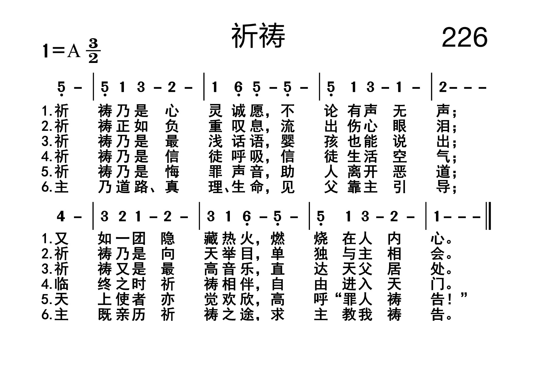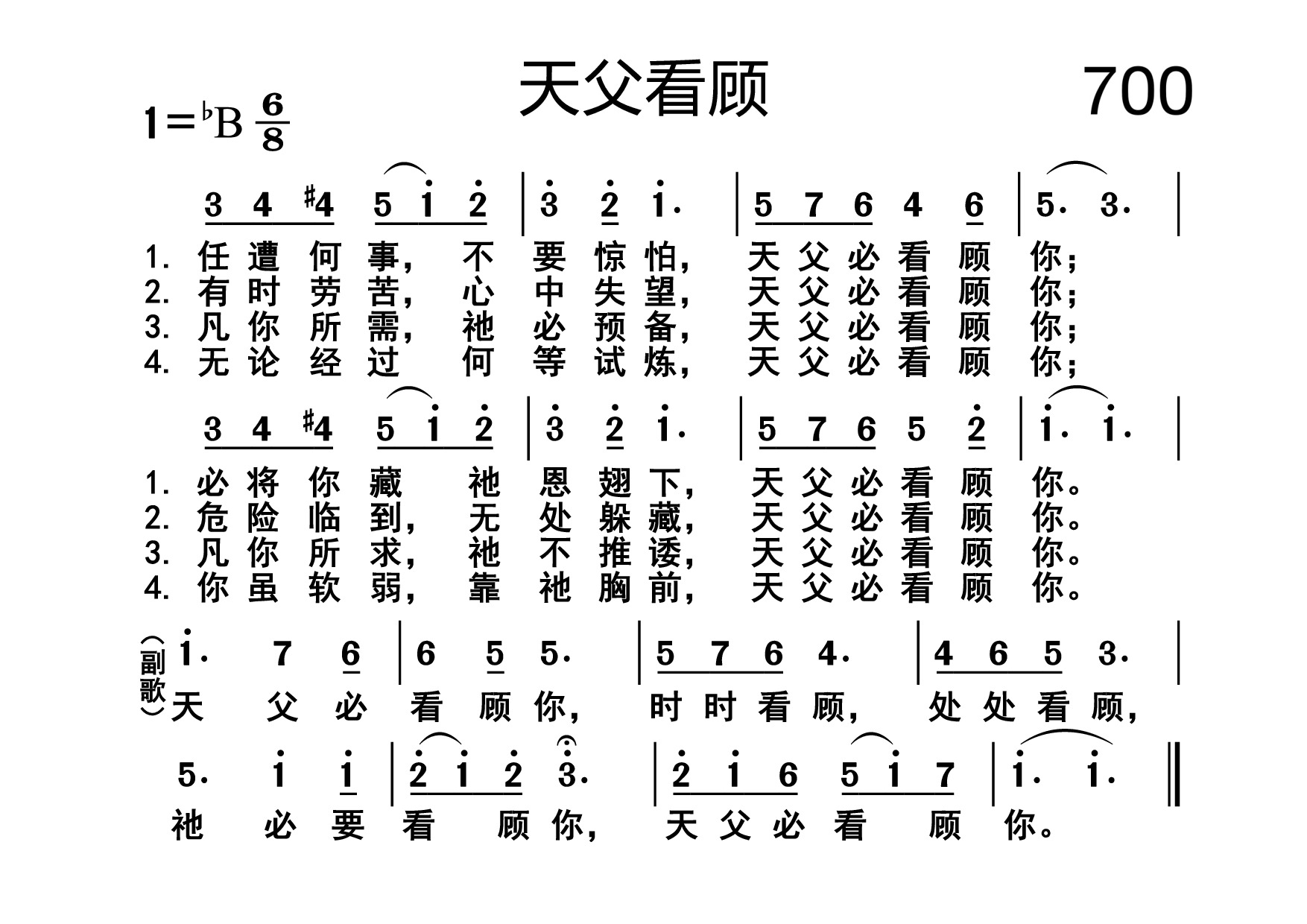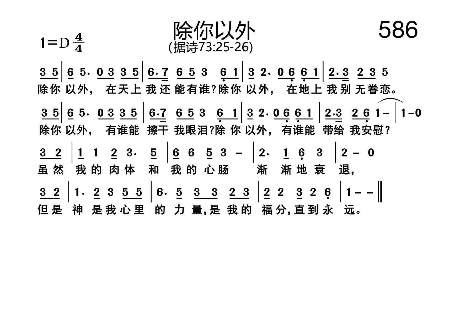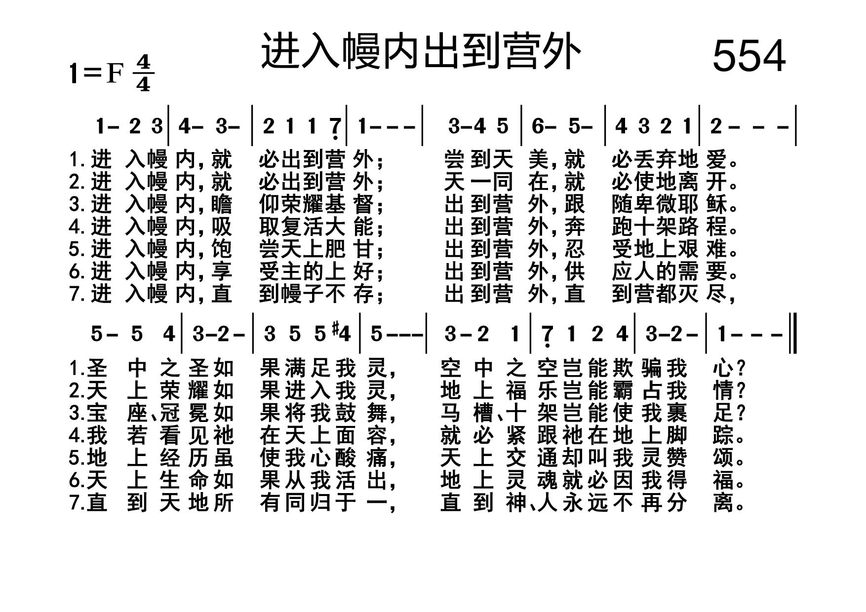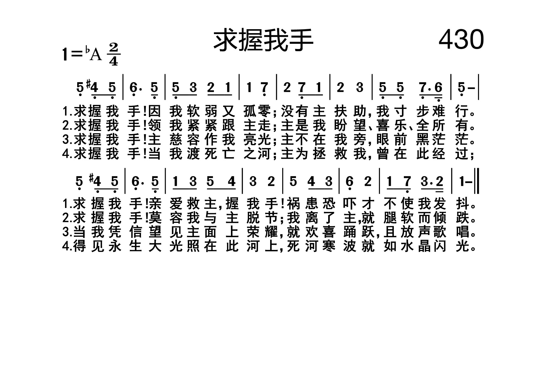 一 你怎没有伤痕?没有伤痕在你肋旁?你名反倒远播四方,你光反倒照射辉煌,你怎没有伤痕? 二 你怎没有伤痕?我是受迫挂在树上,四围尽是残忍、狂妄,我是受尽一切创伤,你怎没有伤痕? 三 怎能你无伤痕?仆人该与主人同样!本该与我同受创伤,而你却是完整无恙!怎能你无伤痕? 四 怎能你无伤痕?他们为我受人捆绑,枷锁、监禁,并且流放,或是舍身,喂狮广场,怎能你无伤痕? 五 你是没有伤痕!我受摧残,饮人锋芒,他们忍受忌恨、刀棒,你却平安,不缺宁康。你却没有伤痕! 六 你却没有伤痕!是否你向世俗依傍,你怕自己利益失丧,远远跟随,不甚明朗,所以没有伤痕? 七 你怎没有伤痕?没有疲倦、只有安享?能否有人忠心,受赏?能否有人跟隧羔羊,而他没有伤痕?