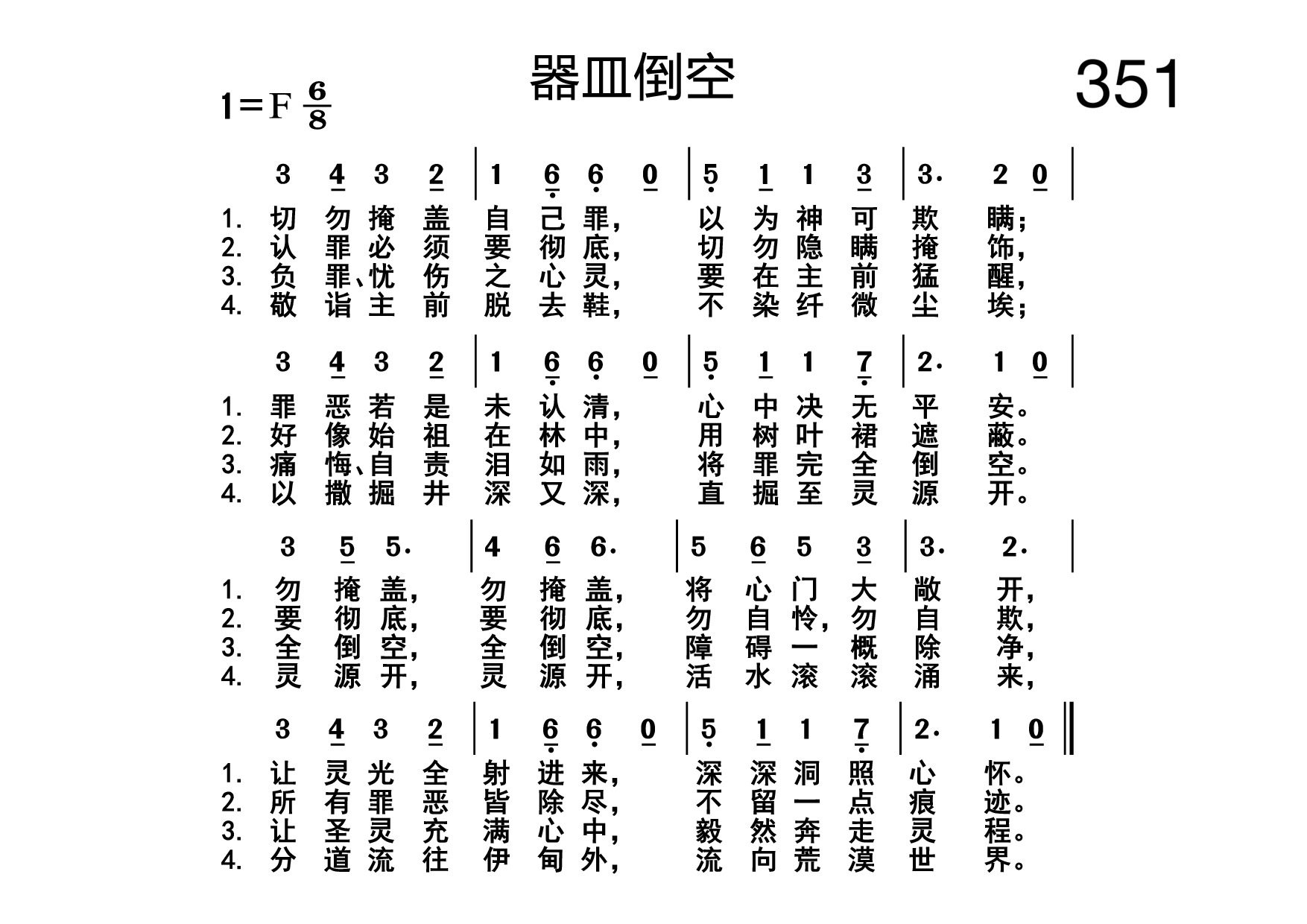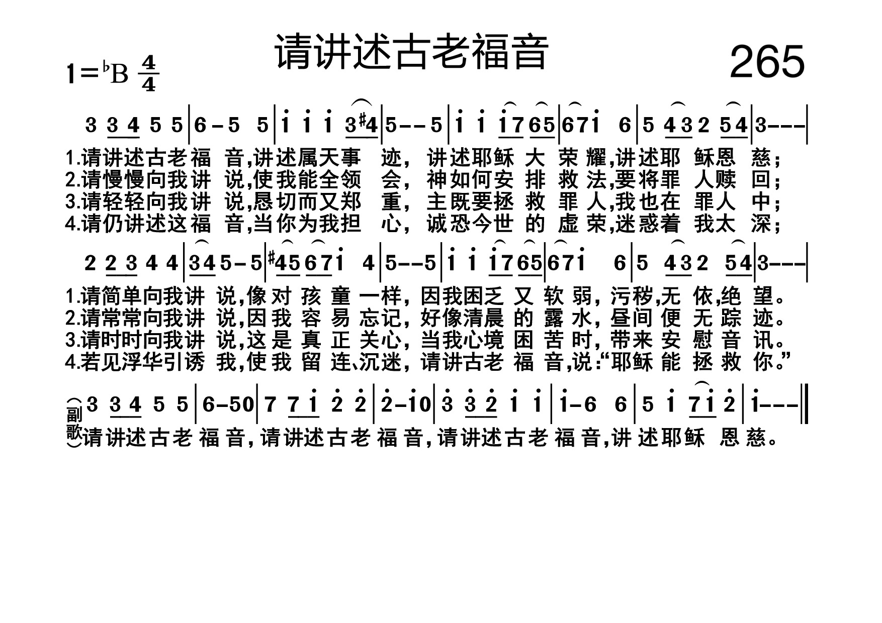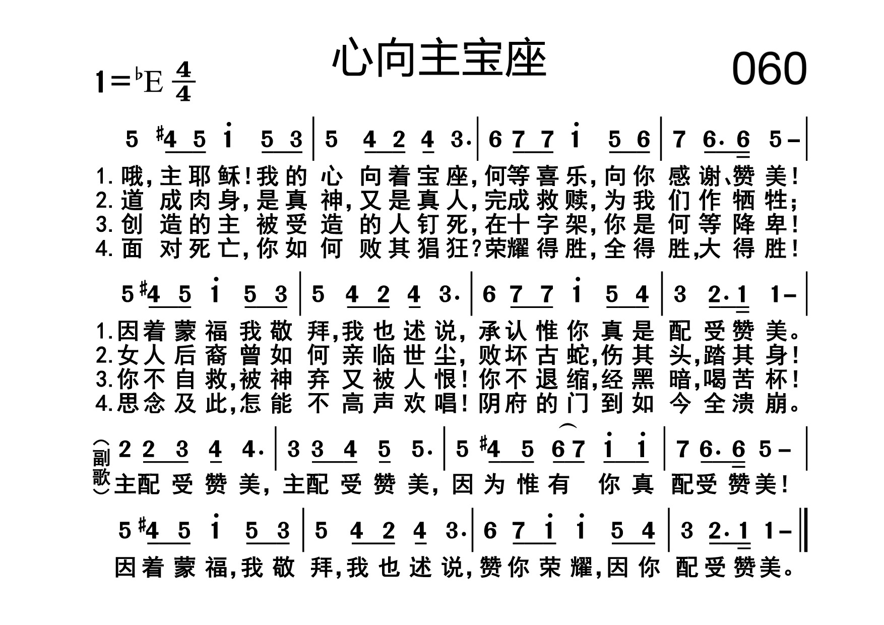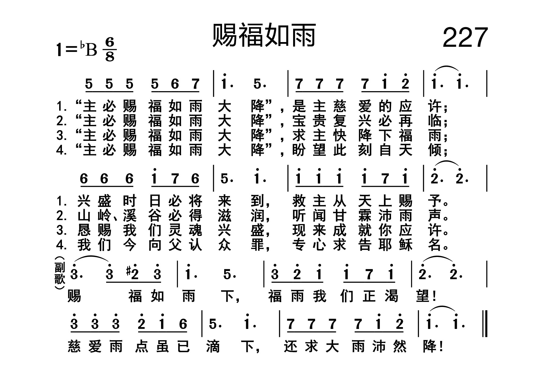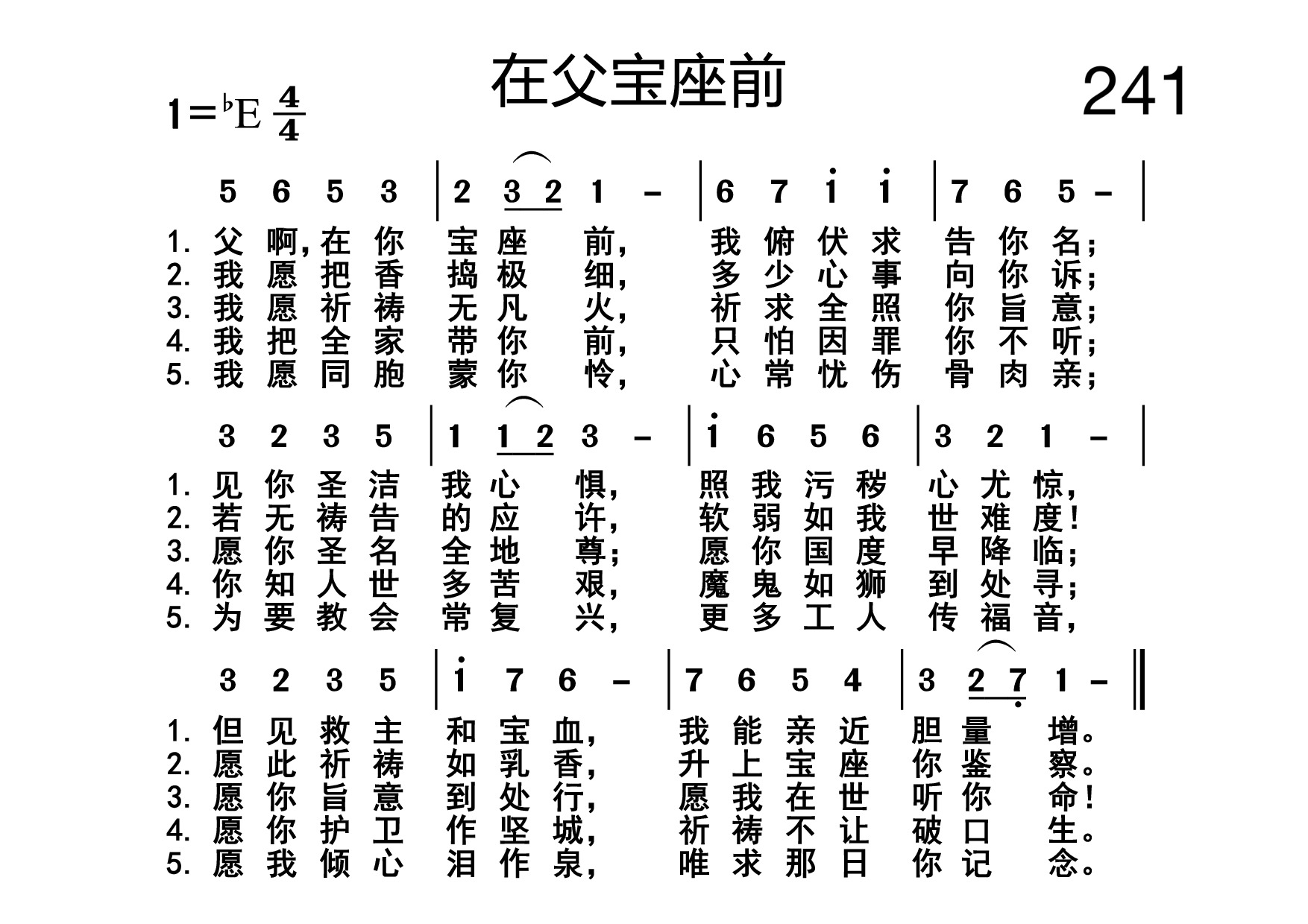 一 你怎没有伤痕?没有伤痕在你肋旁?你名反倒远播四方,你光反倒照射辉煌,你怎没有伤痕? 二 你怎没有伤痕?我是受迫挂在树上,四围尽是残忍、狂妄,我是受尽一切创伤,你怎没有伤痕? 三 怎能你无伤痕?仆人该与主人同样!本该与我同受创伤,而你却是完整无恙!怎能你无伤痕? 四 怎能你无伤痕?他们为我受人捆绑,枷锁、监禁,并且流放,或是舍身,喂狮广场,怎能你无伤痕? 五 你是没有伤痕!我受摧残,饮人锋芒,他们忍受忌恨、刀棒,你却平安,不缺宁康。你却没有伤痕! 六 你却没有伤痕!是否你向世俗依傍,你怕自己利益失丧,远远跟随,不甚明朗,所以没有伤痕? 七 你怎没有伤痕?没有疲倦、只有安享?能否有人忠心,受赏?能否有人跟隧羔羊,而他没有伤痕?