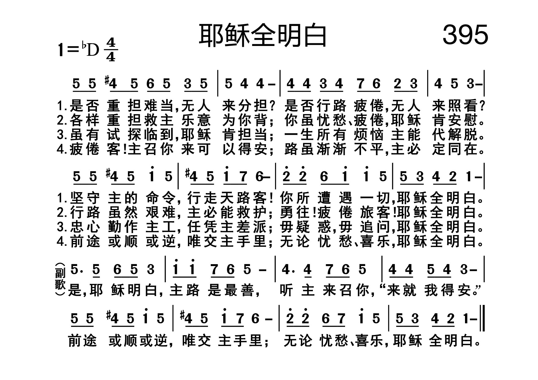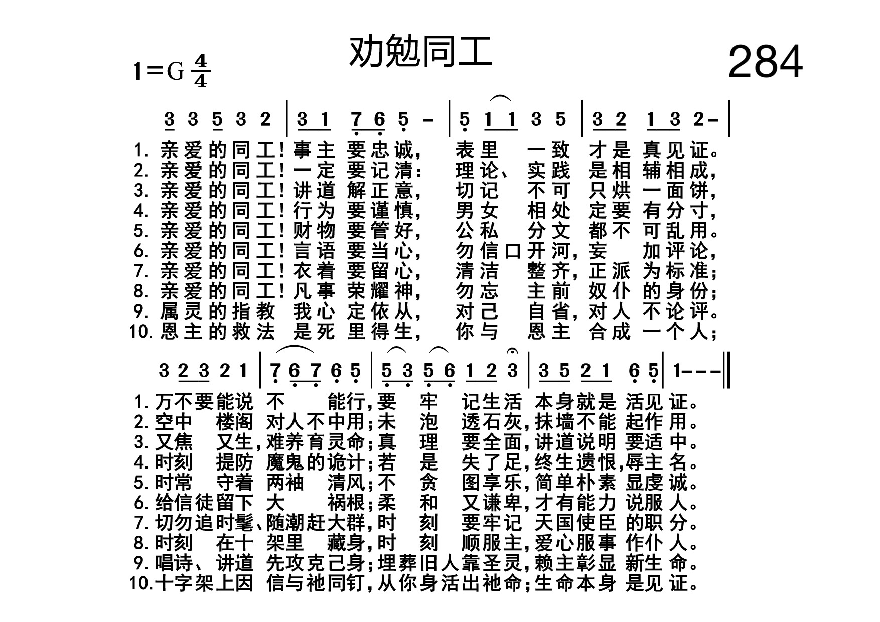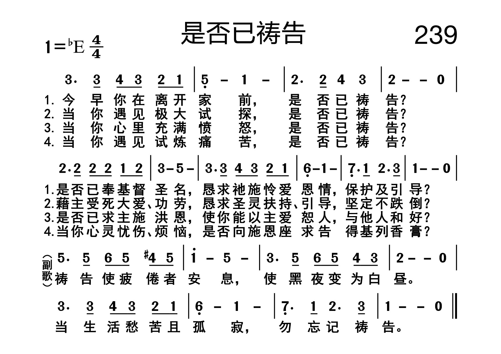 问你是否劳倦忧愁是否苦难堪 有声说道到我这里 享平安倘若他来做我领导是否有特征他的双手双足肋旁诸伤痕问他是否头戴冠冕荣耀象国君是的 冠冕确有一顶棘制成倘我寻他 倘我跟他他有何报酬 许多苦工许多苦泪 许多愁倘若我仍紧紧跟他到底会如何 忧愁消散苦工完毕 约但过我若归依 求他接收他会推辞否 天地虽过他不推辞 总收留追寻紧跟珍存奋争是否能蒙恩众圣使徒先知先烈都说能