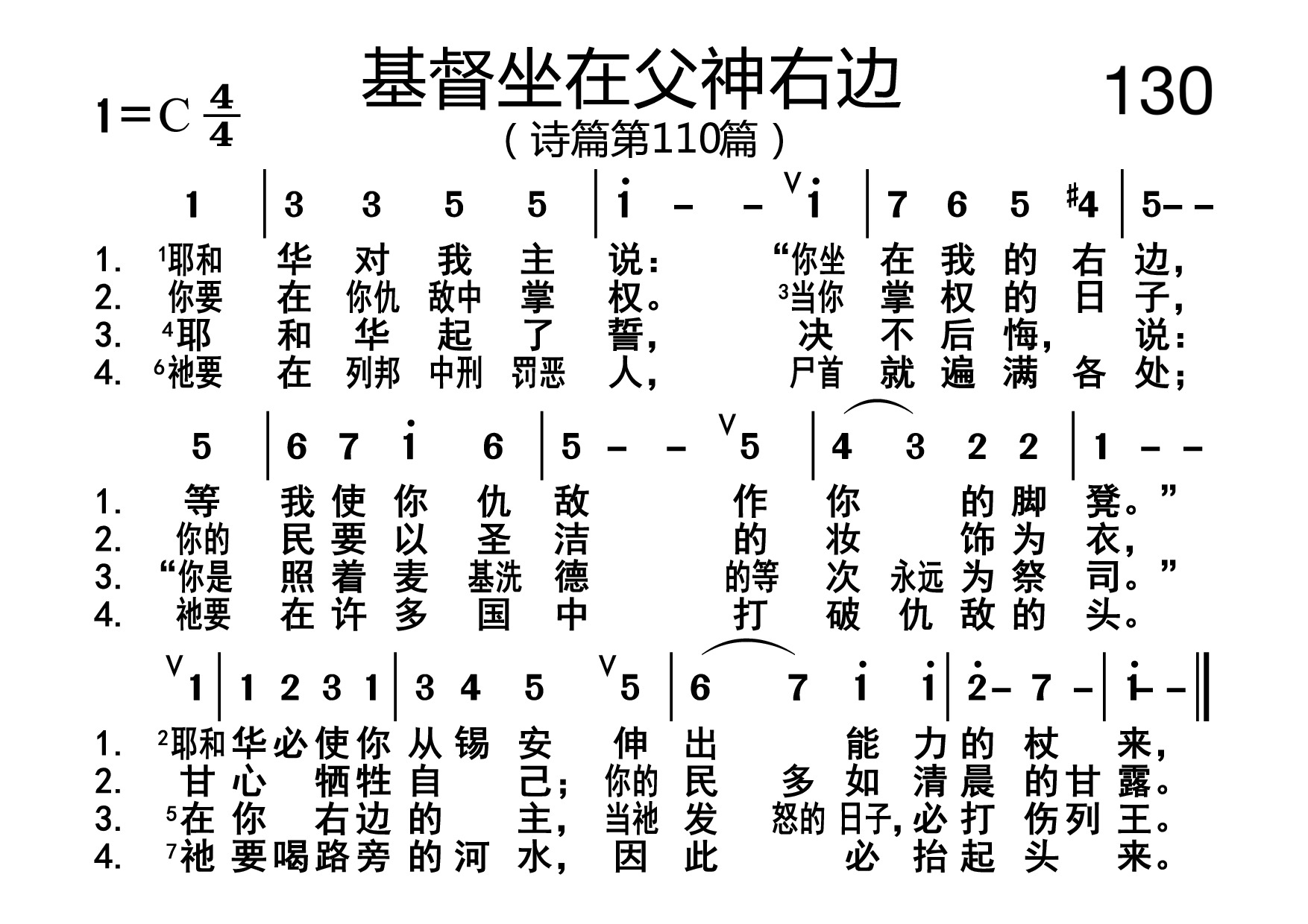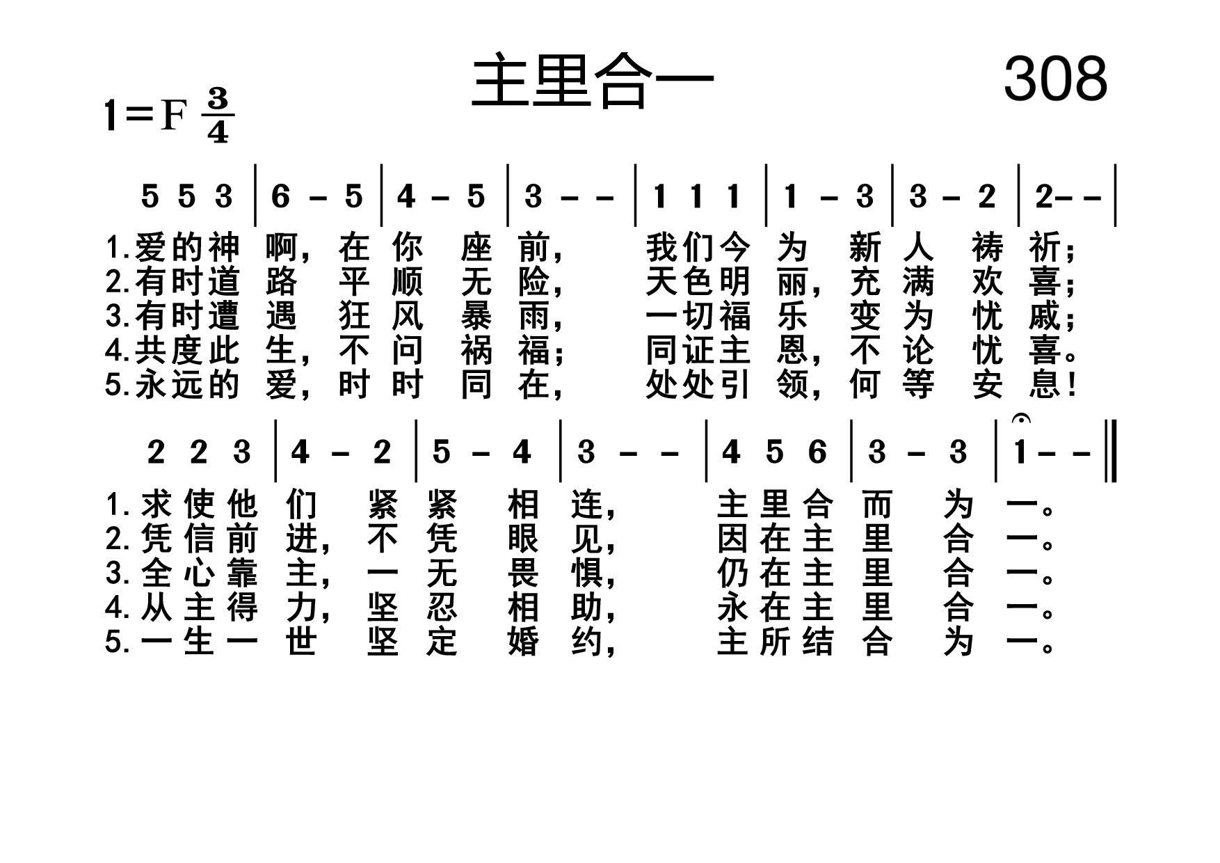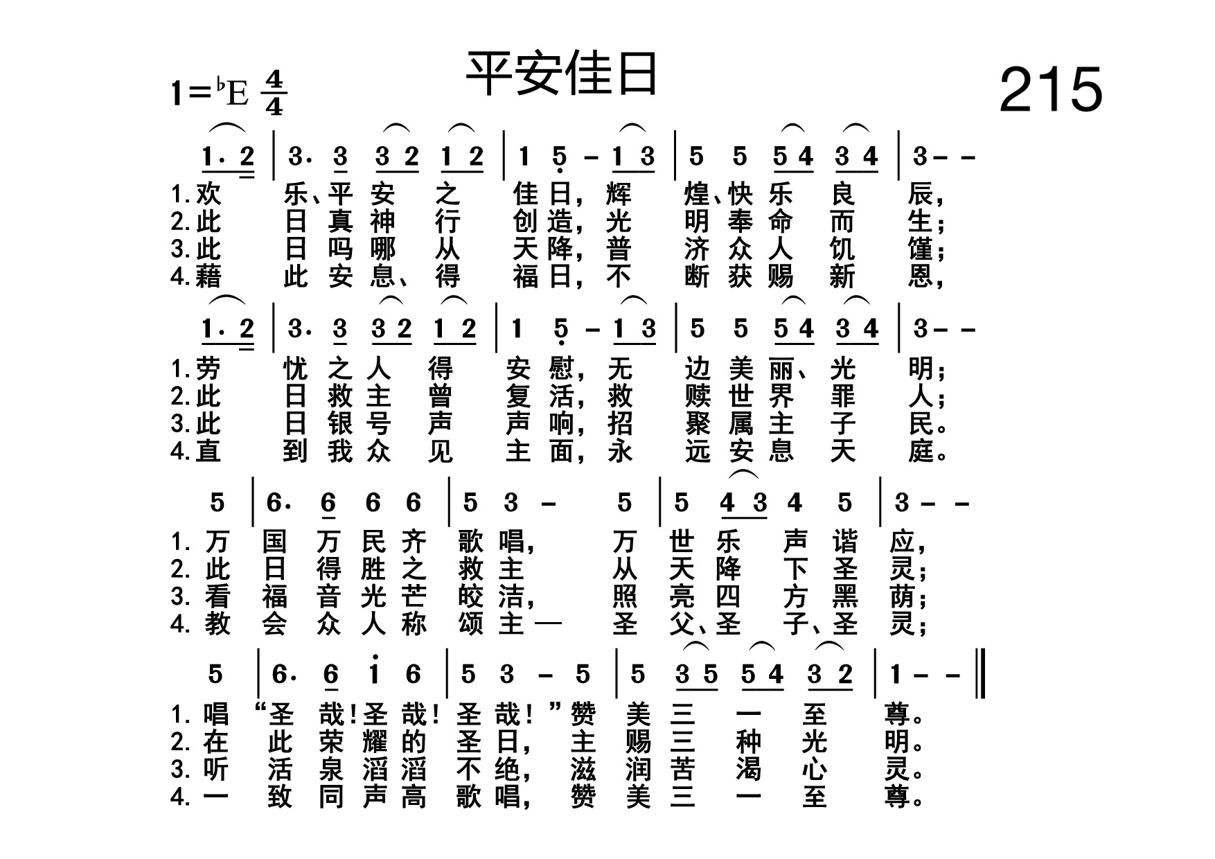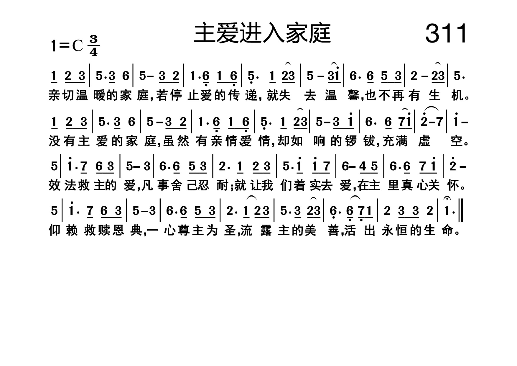 圣哉,圣哉,圣哉!全能大主宰!清晨我众歌声,穿云上达至尊;圣哉,圣哉,圣哉!慈悲与全能,荣耀与赞美,归三一真神。圣哉,圣哉,圣哉!众圣都崇敬,放下黄金冠冕,环绕晶海之滨;千万天军叩拜,同声颂主名,昔在而今在,永在亿万春。圣哉,圣哉,圣哉!黑暗蔽圣明,罪人焉能瞻望真神威严荣光;惟独主为真源,惟主为至尊,全权又全爱,全善全能神。圣哉,圣哉,圣哉!全能大主宰!海天云山酬和吾众赞美歌声;圣哉,圣哉,圣哉!慈悲与全能,荣耀与赞美,归三一真神。
