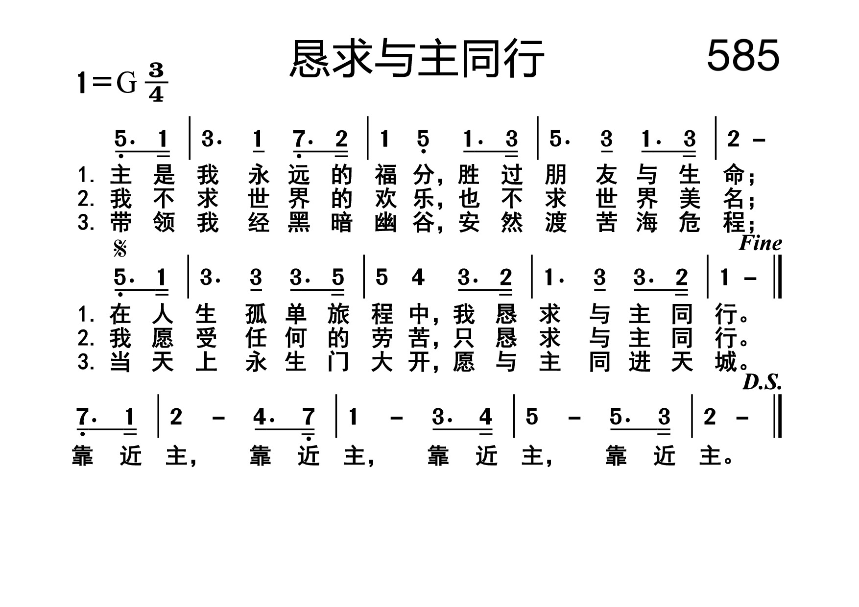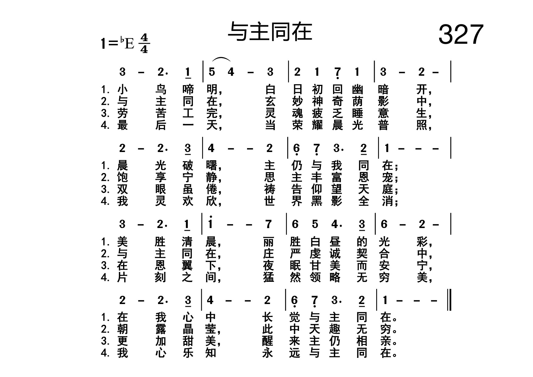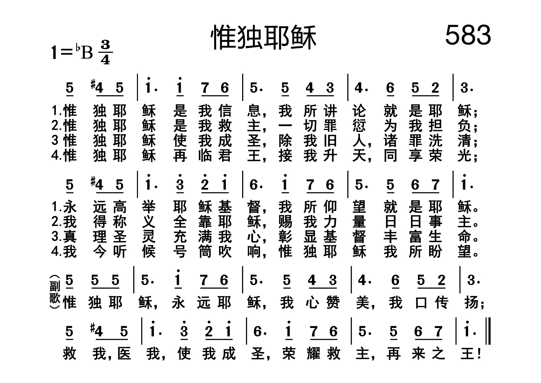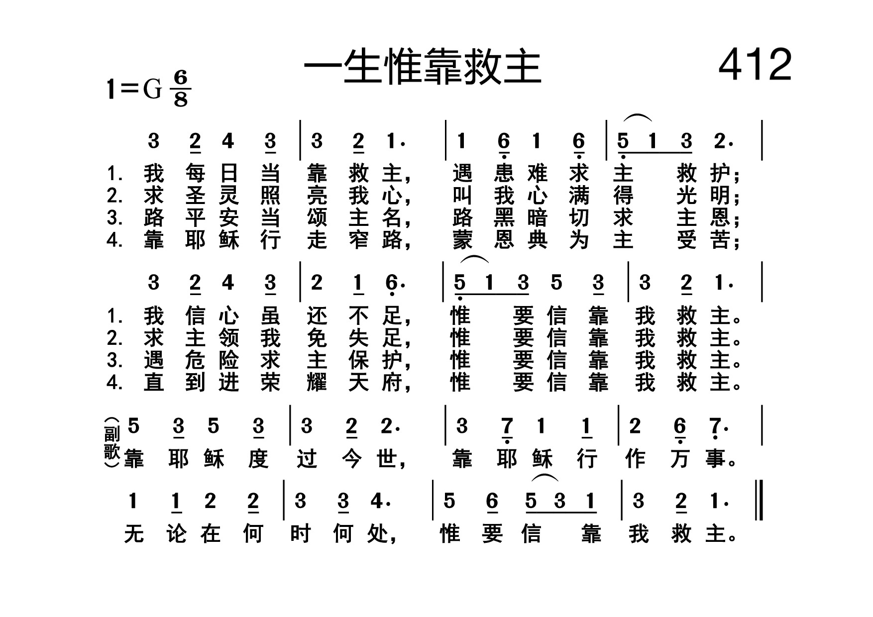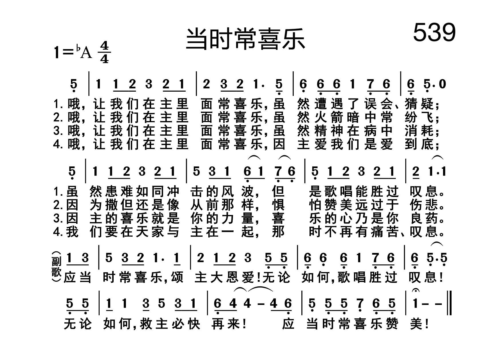 不要想天色常晴朗,有时遇暴风巨浪;虽然前路崎岖不平,有我主与我同行。我要永远永远赞美我的主,因救主居在我心房。我要永远永远赞美我的主,今救主永活在我心。再也没有孤单悲伤,主用圣手扶持我;纵然黑云遮盖前路,我也要欢乐歌唱。