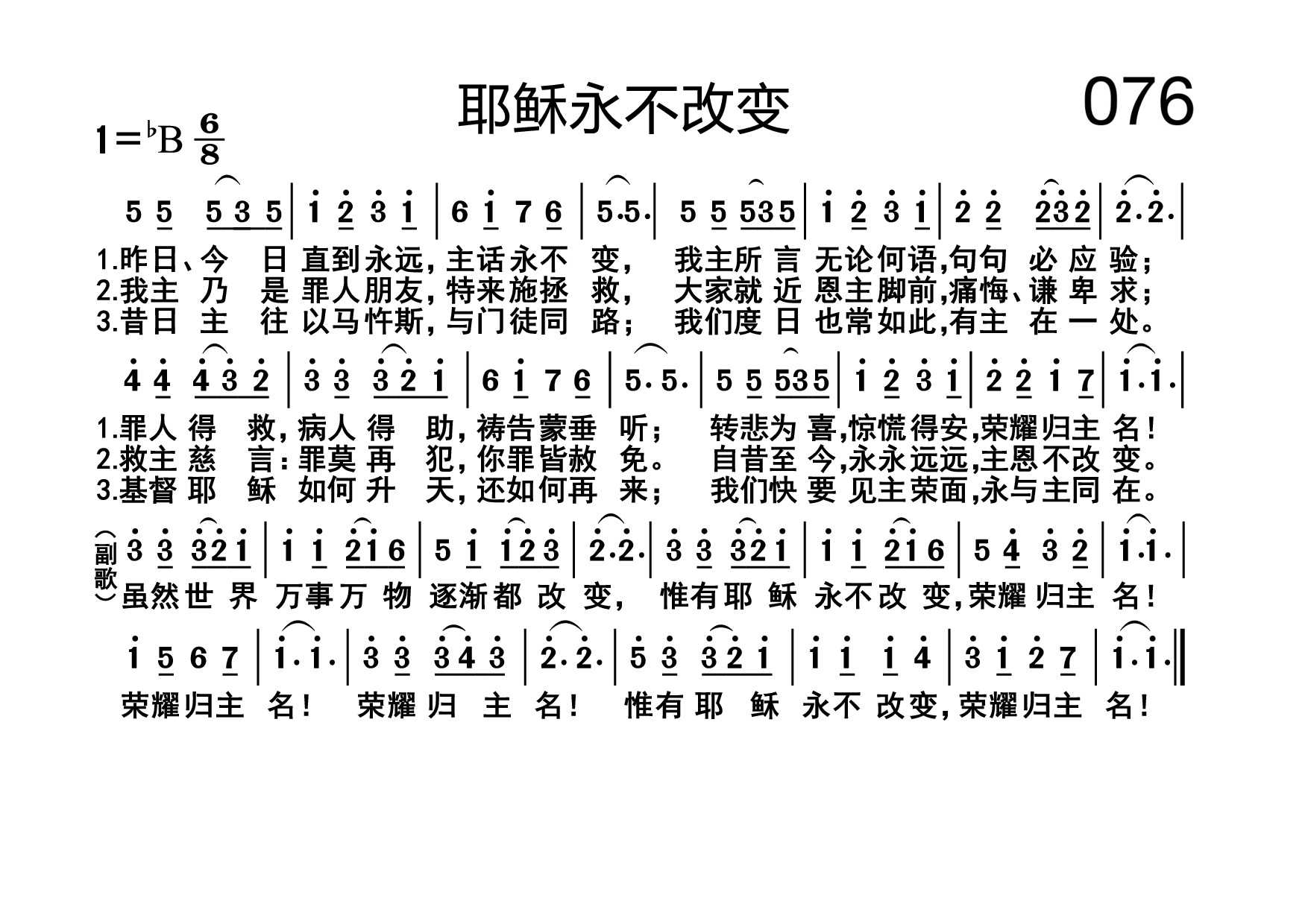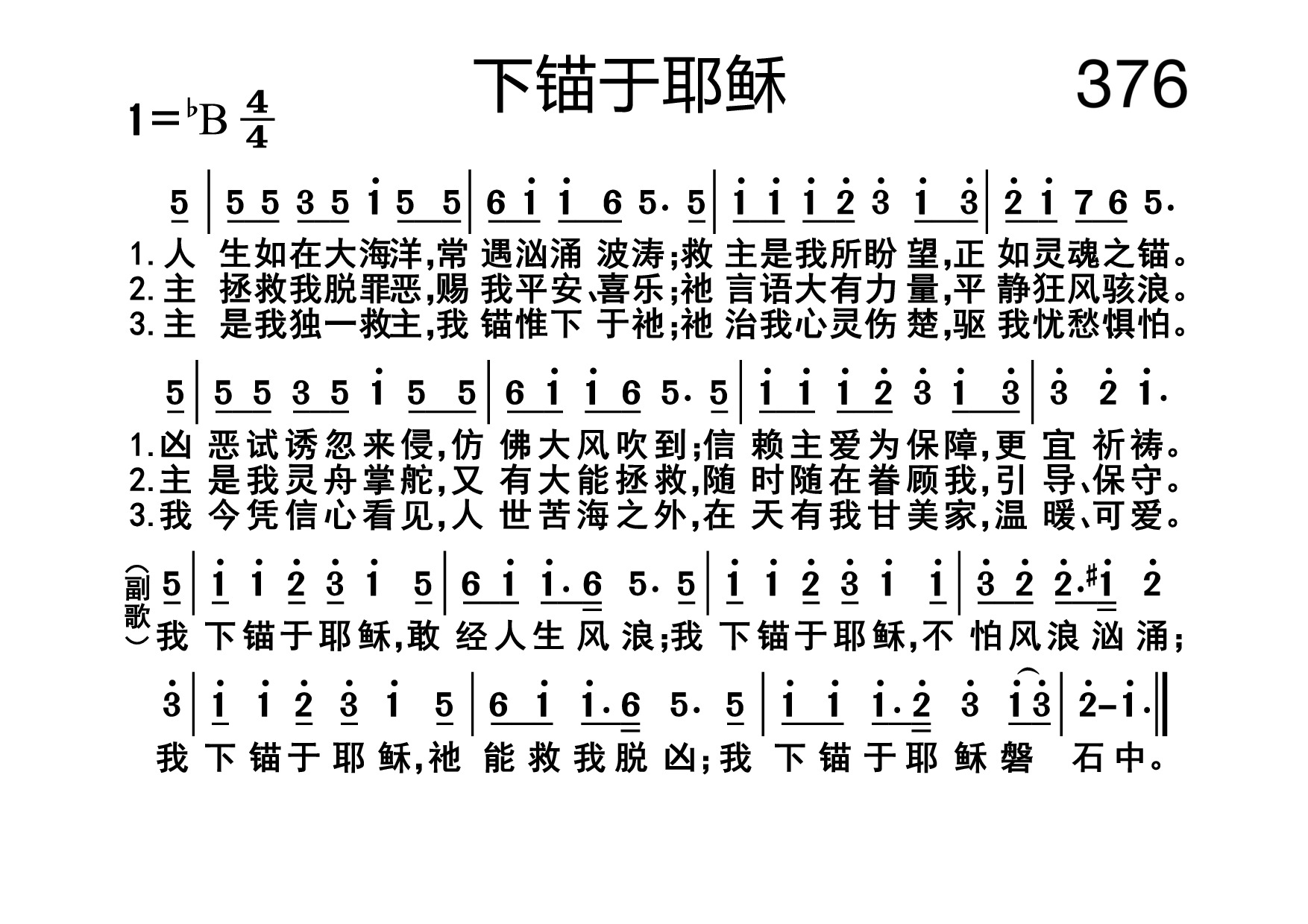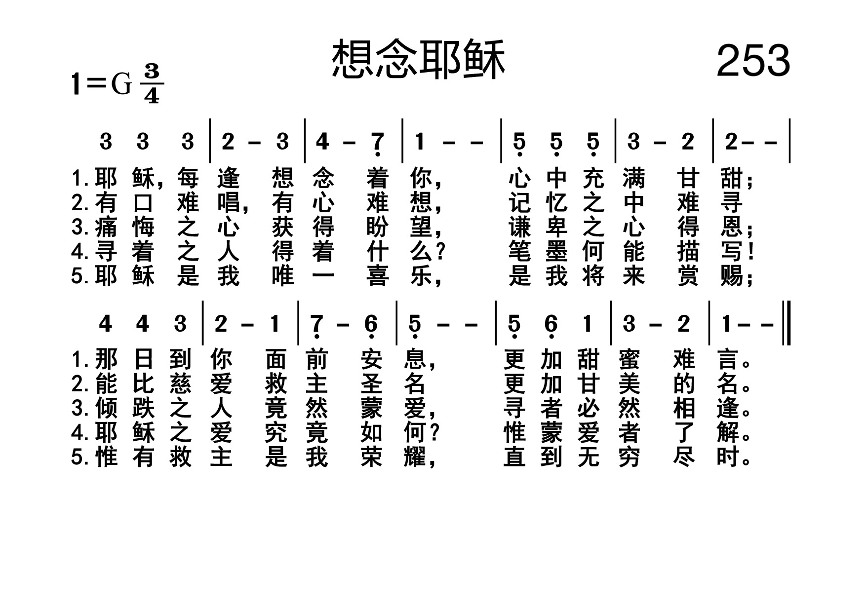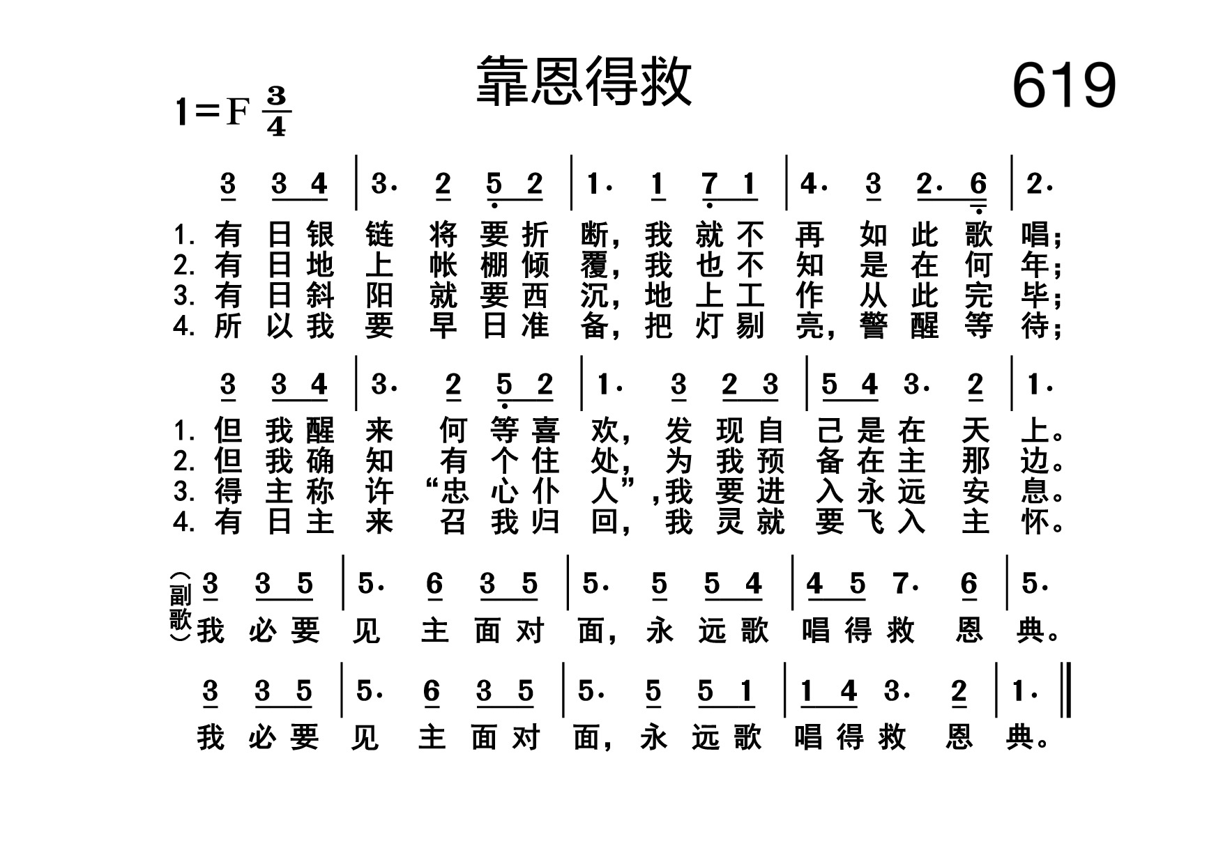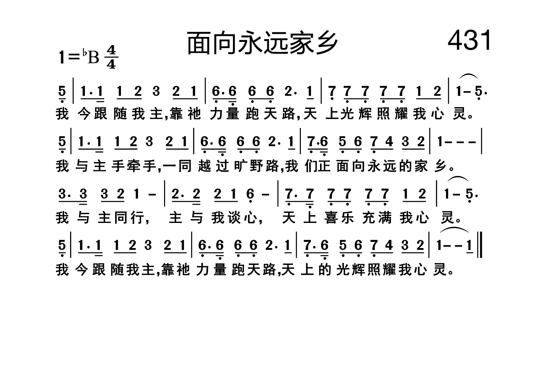 不要想天色常晴朗,有时遇暴风巨浪;虽然前路崎岖不平,有我主与我同行。我要永远永远赞美我的主,因救主居在我心房。我要永远永远赞美我的主,今救主永活在我心。再也没有孤单悲伤,主用圣手扶持我;纵然黑云遮盖前路,我也要欢乐歌唱。