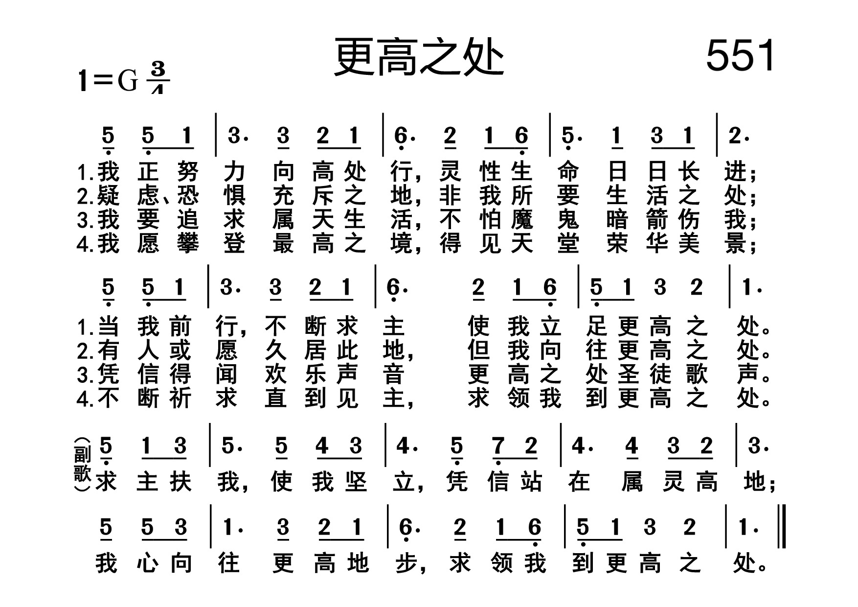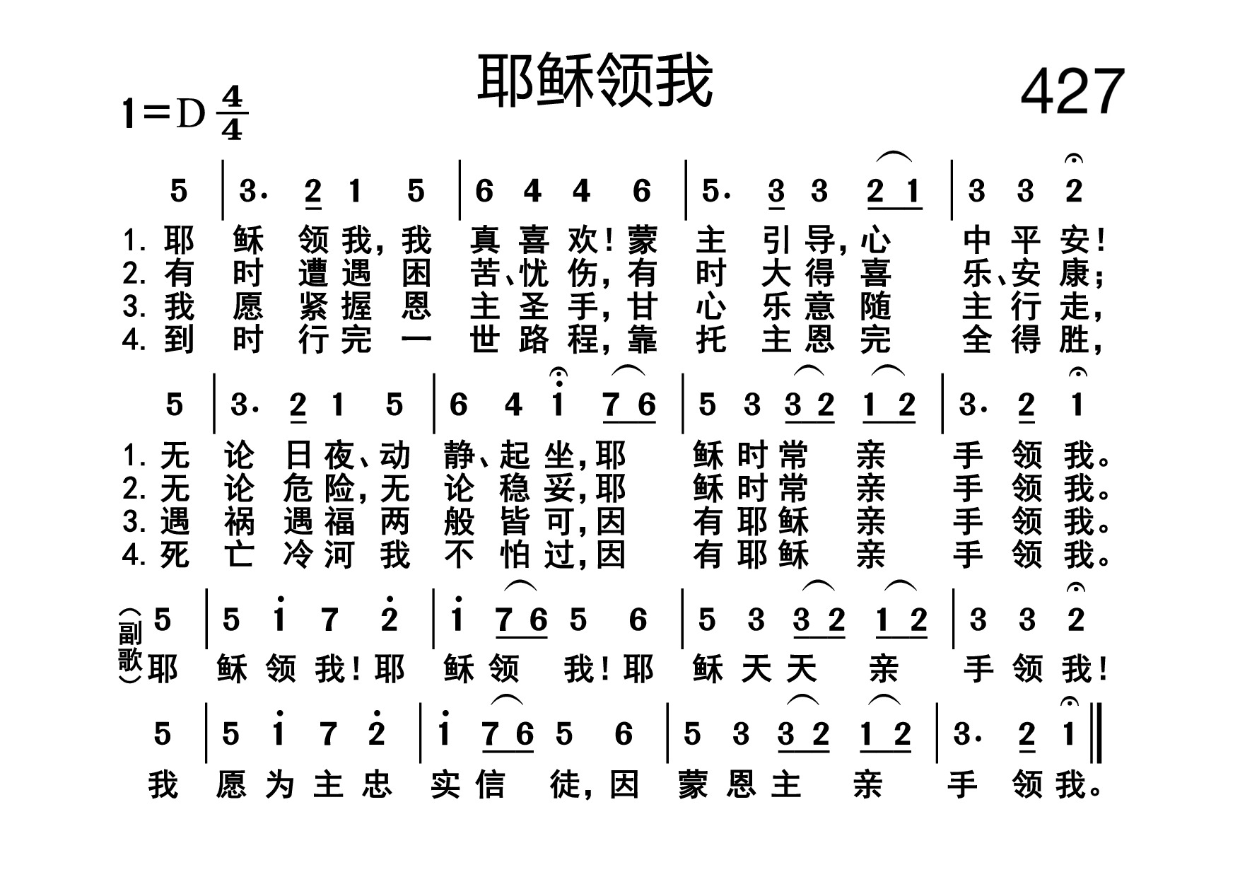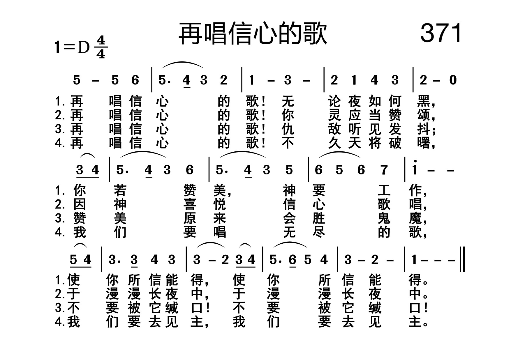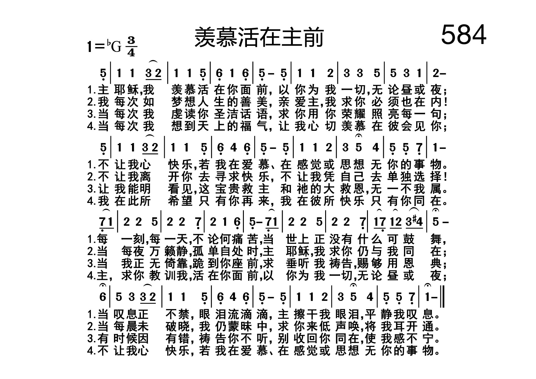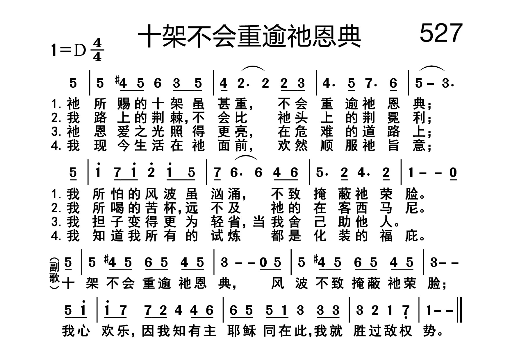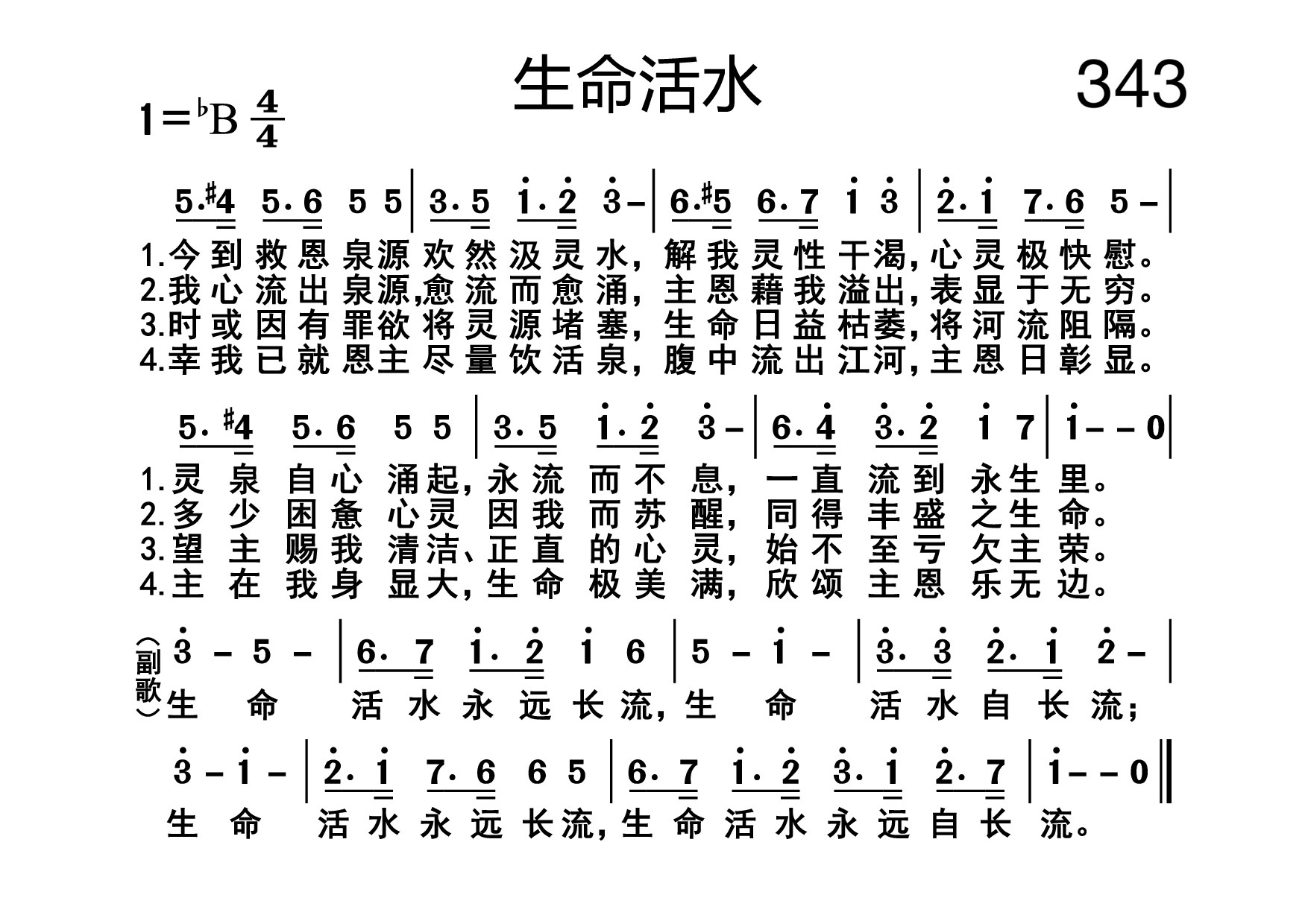 不要想天色常晴朗,有时遇暴风巨浪;虽然前路崎岖不平,有我主与我同行。我要永远永远赞美我的主,因救主居在我心房。我要永远永远赞美我的主,今救主永活在我心。再也没有孤单悲伤,主用圣手扶持我;纵然黑云遮盖前路,我也要欢乐歌唱。