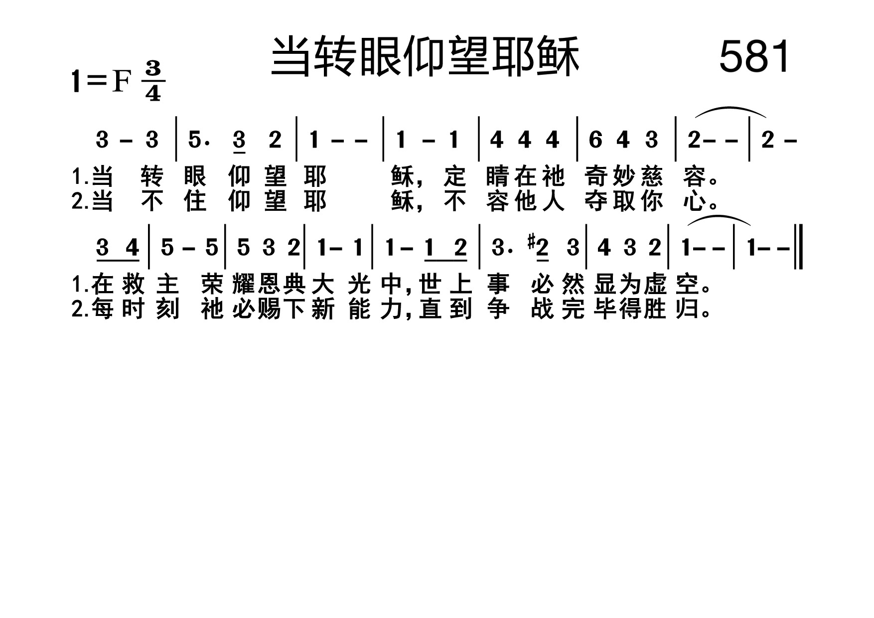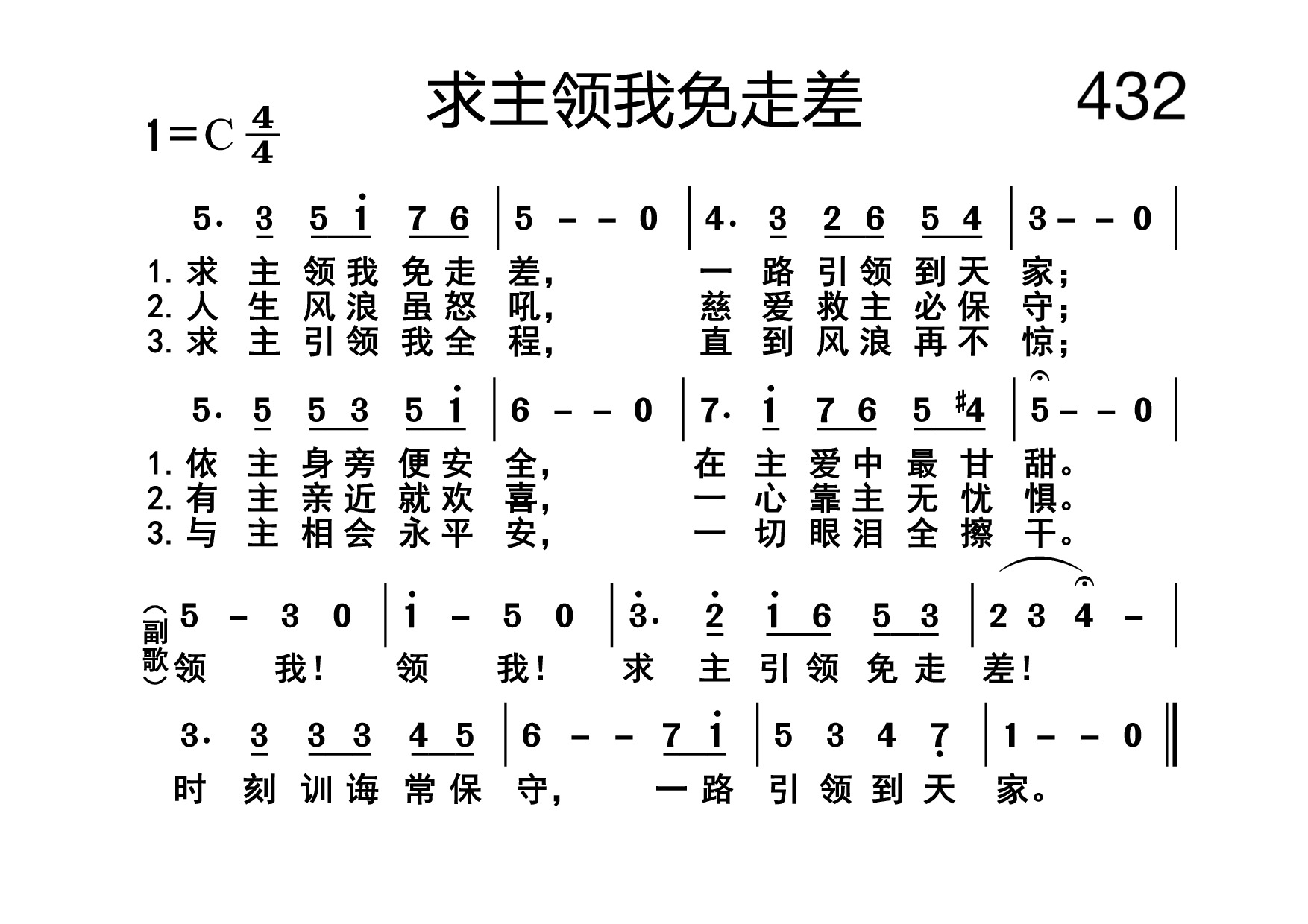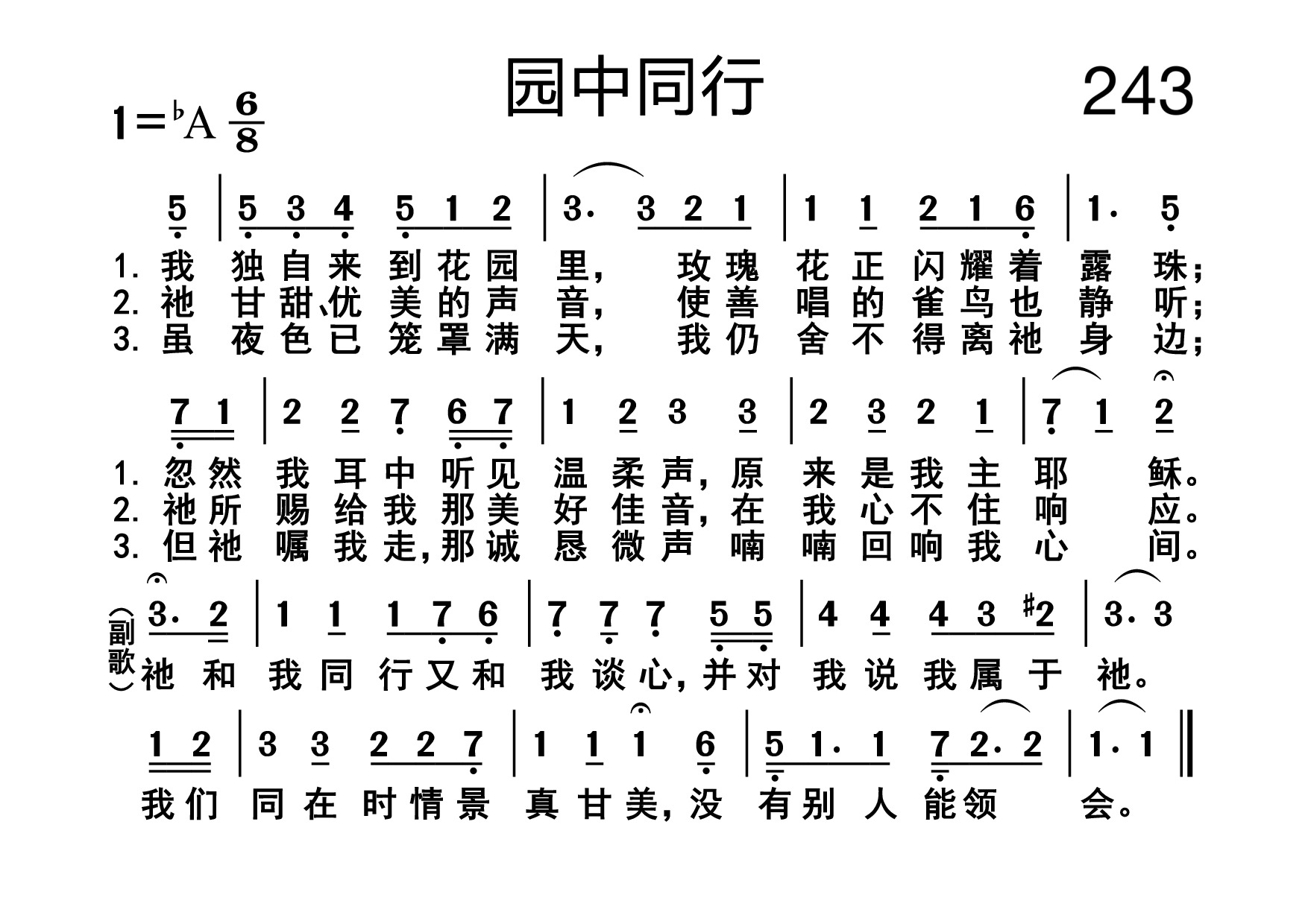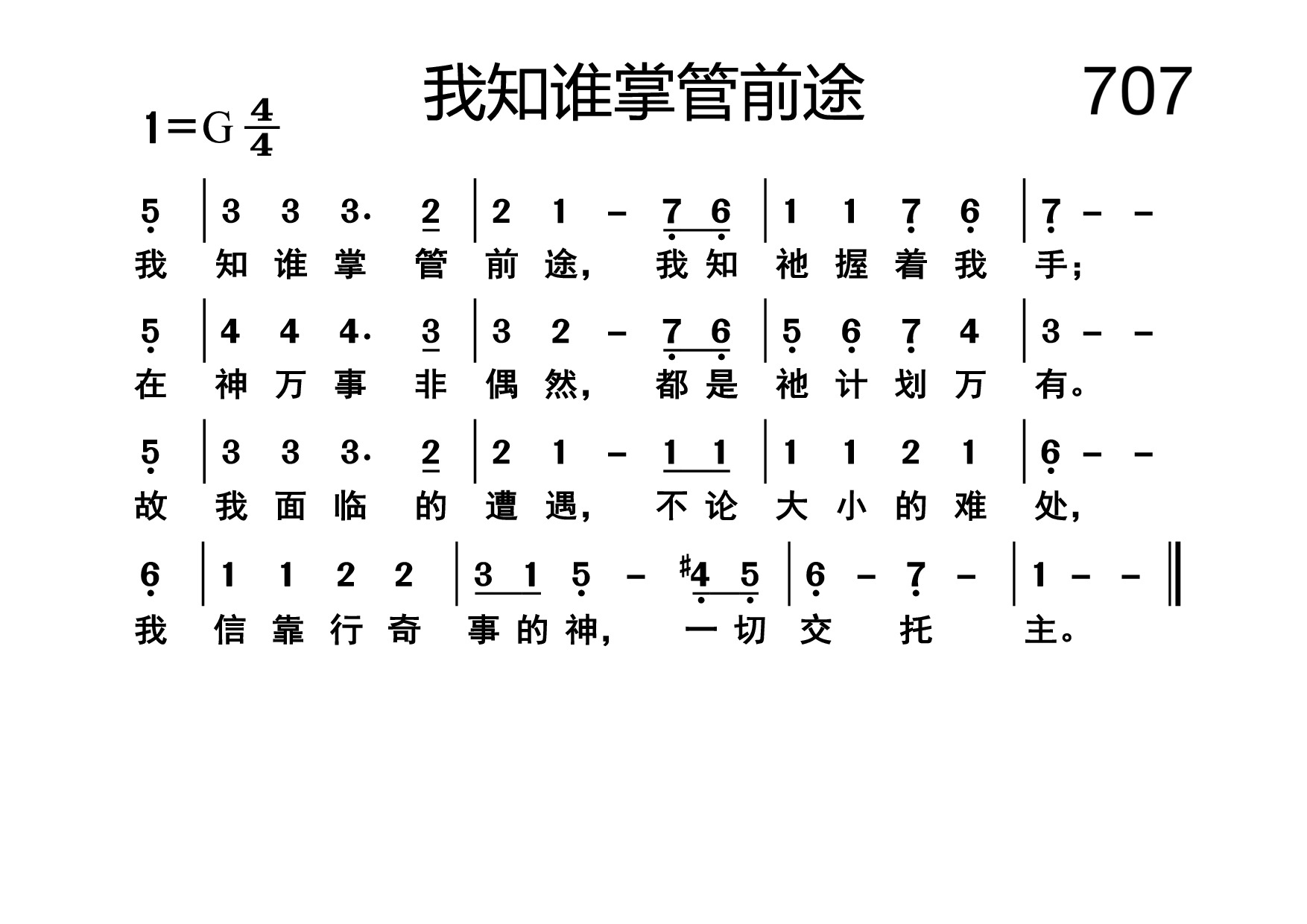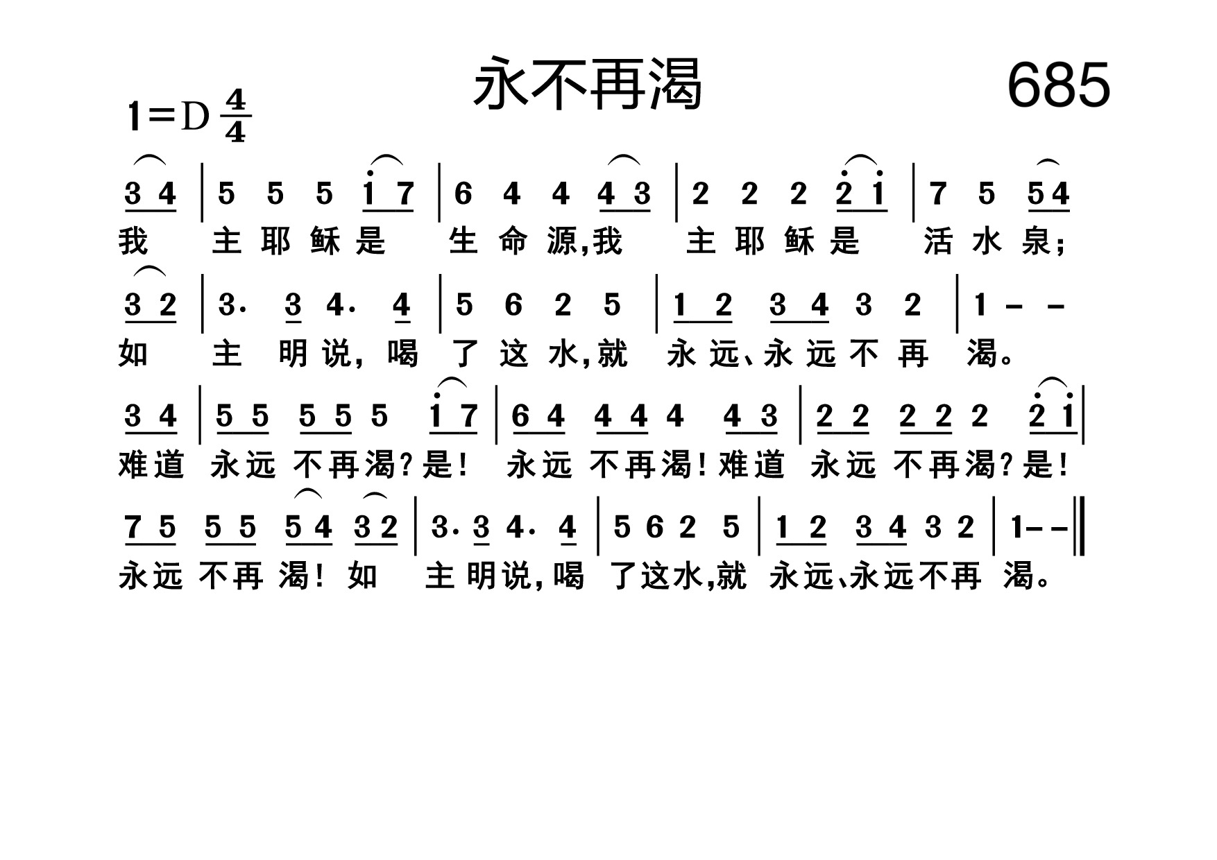 不要想天色常晴朗,有时遇暴风巨浪;虽然前路崎岖不平,有我主与我同行。我要永远永远赞美我的主,因救主居在我心房。我要永远永远赞美我的主,今救主永活在我心。再也没有孤单悲伤,主用圣手扶持我;纵然黑云遮盖前路,我也要欢乐歌唱。