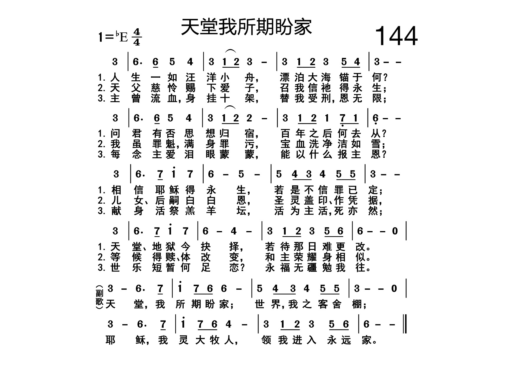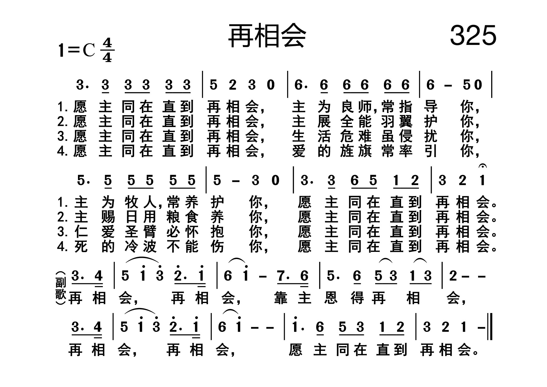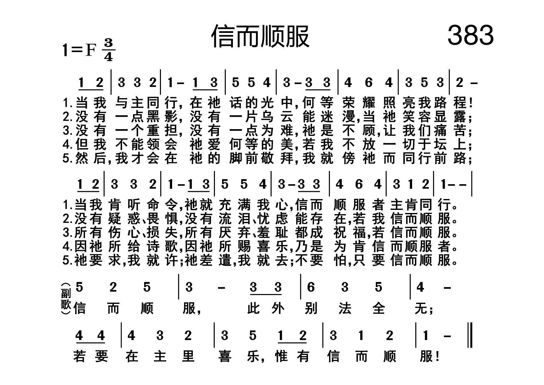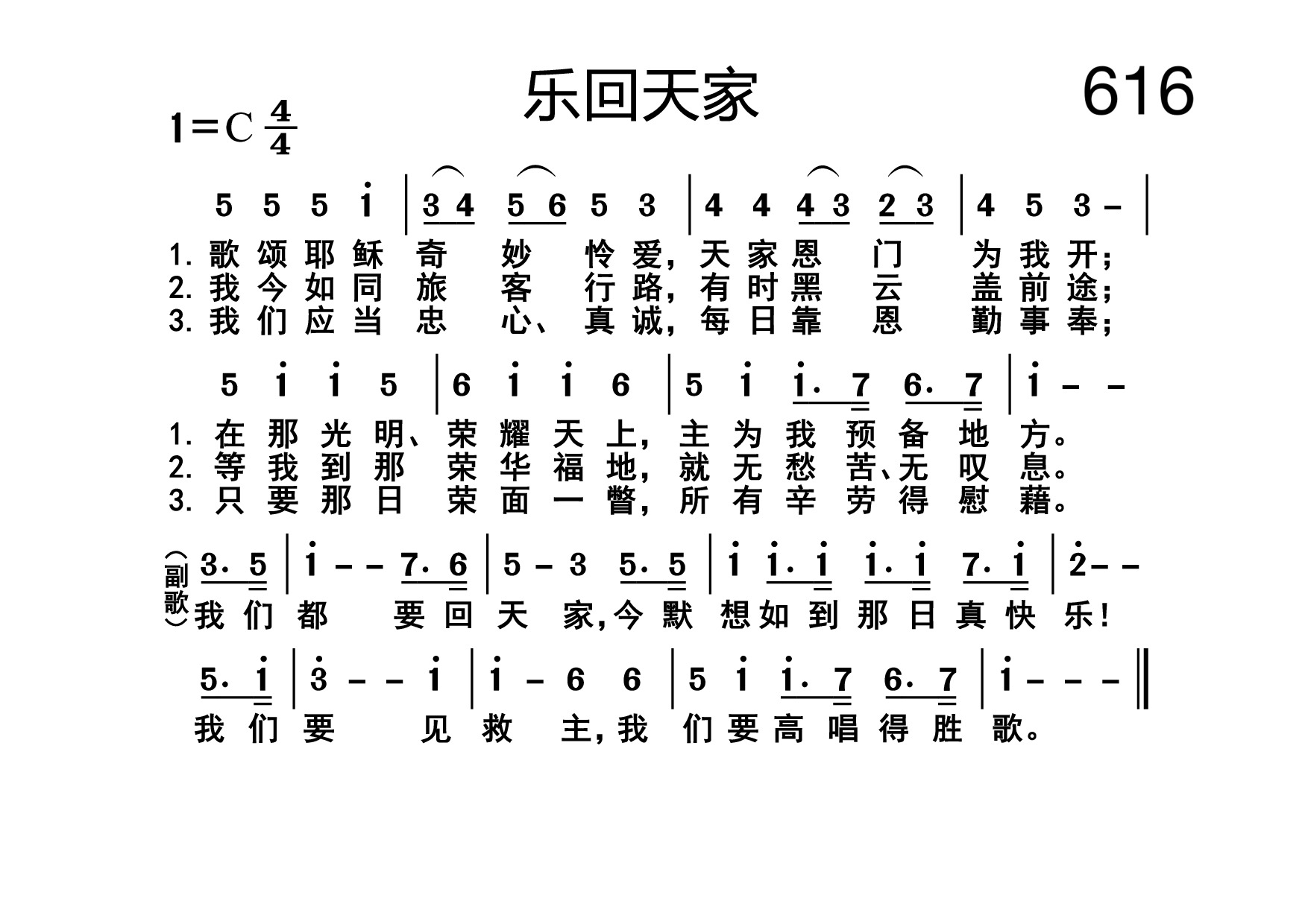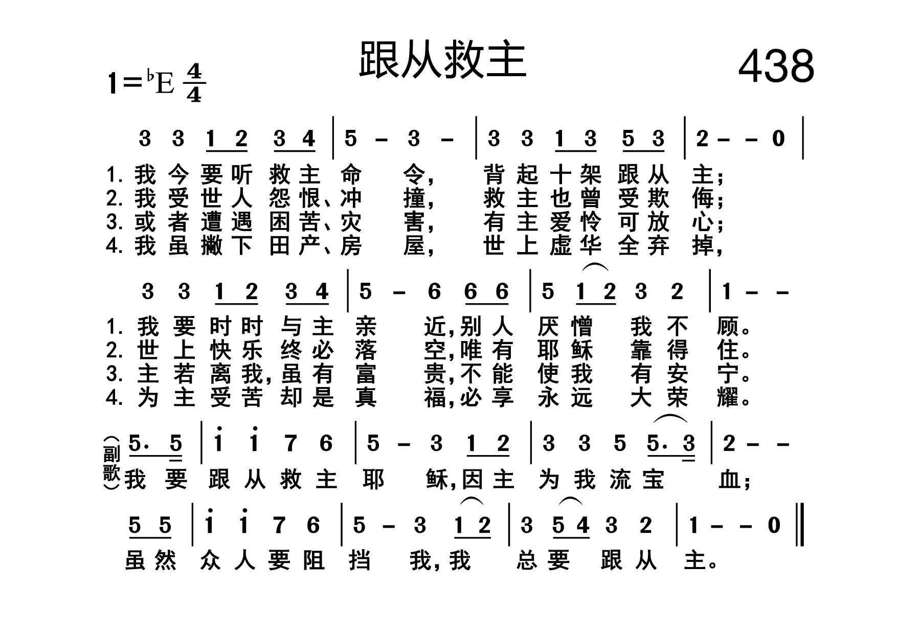 不要想天色常晴朗,有时遇暴风巨浪;虽然前路崎岖不平,有我主与我同行。我要永远永远赞美我的主,因救主居在我心房。我要永远永远赞美我的主,今救主永活在我心。再也没有孤单悲伤,主用圣手扶持我;纵然黑云遮盖前路,我也要欢乐歌唱。