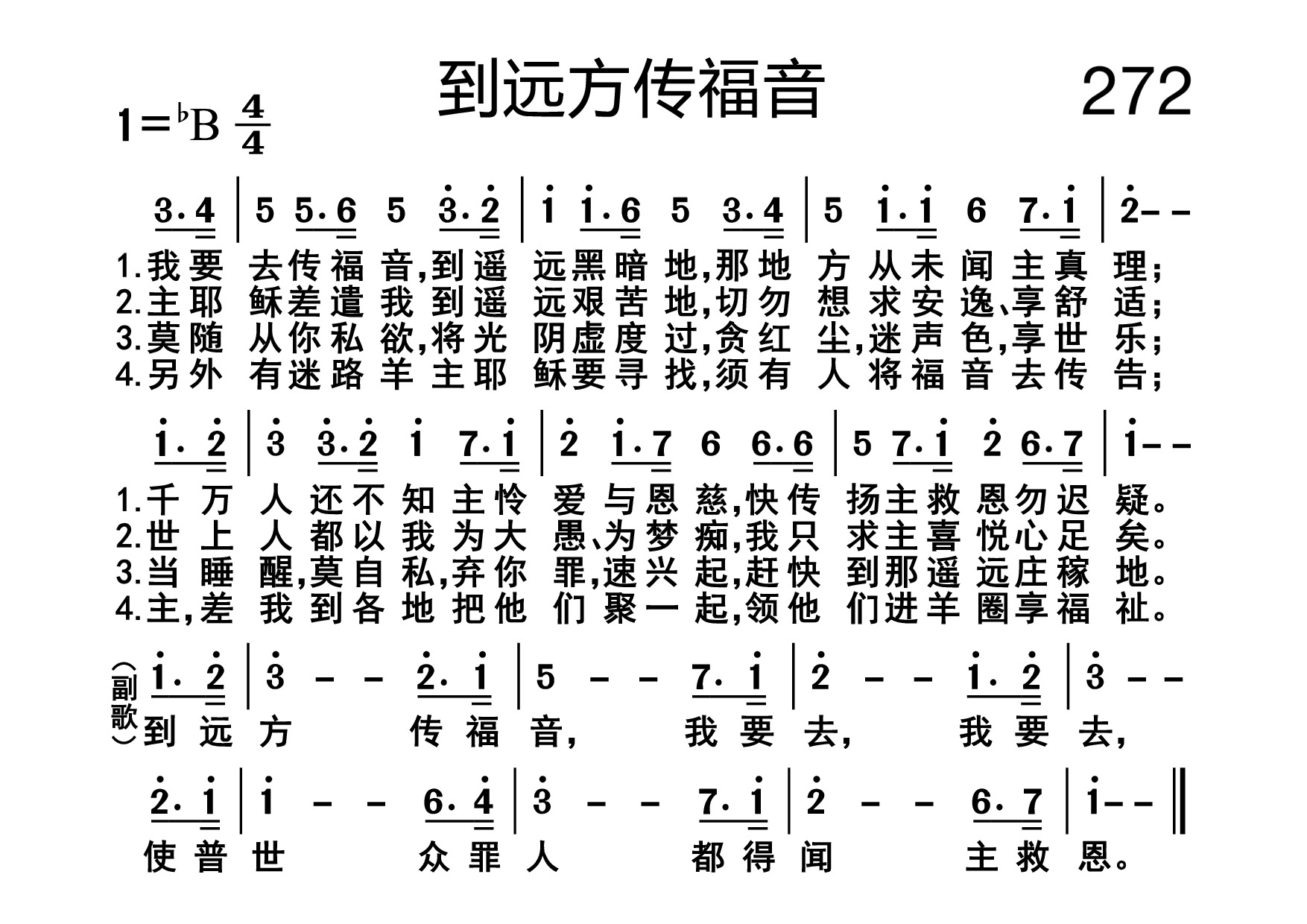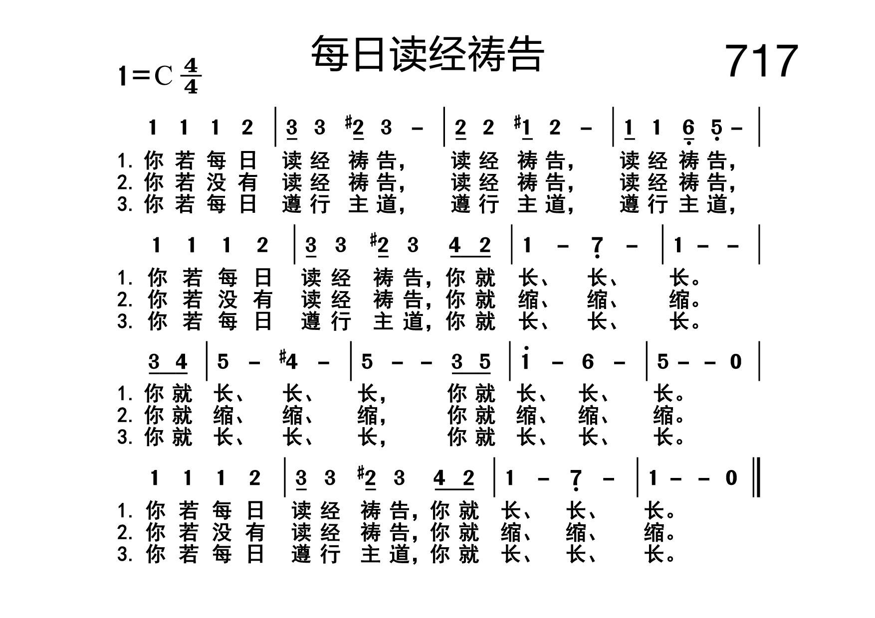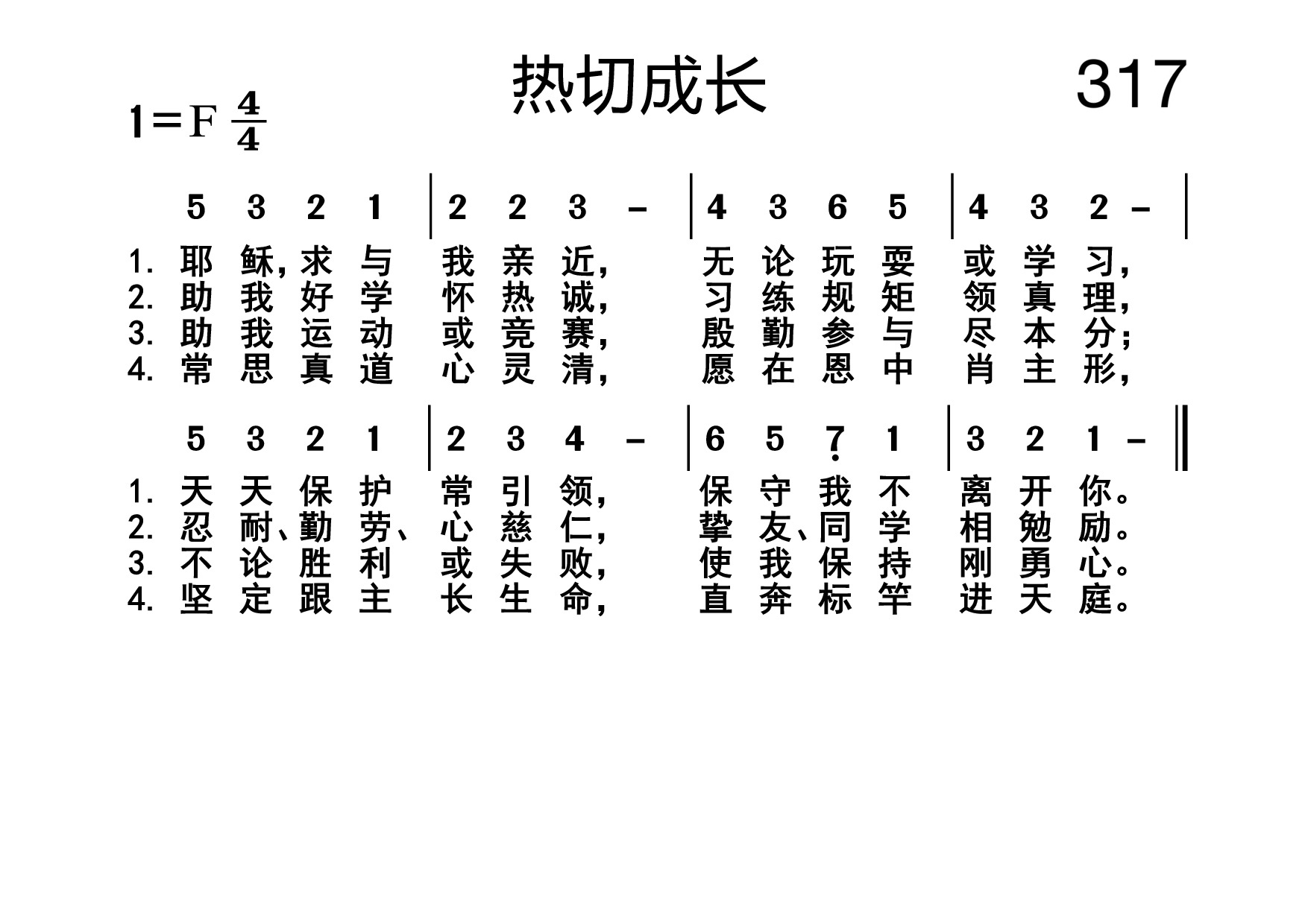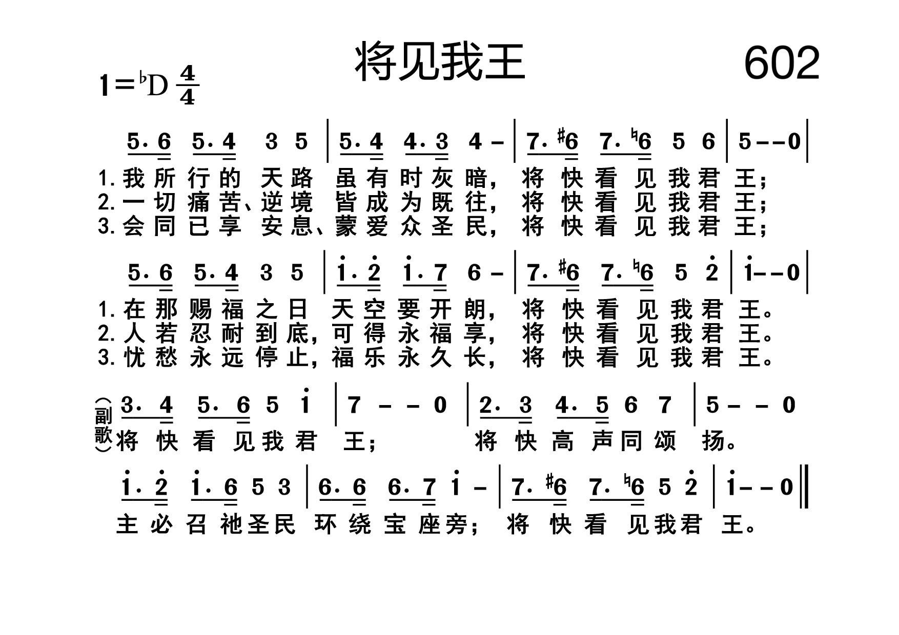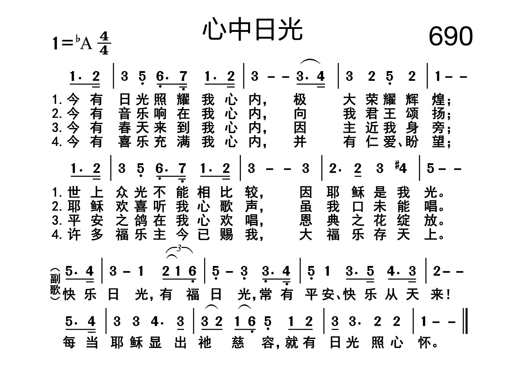 不要想天色常晴朗,有时遇暴风巨浪;虽然前路崎岖不平,有我主与我同行。我要永远永远赞美我的主,因救主居在我心房。我要永远永远赞美我的主,今救主永活在我心。再也没有孤单悲伤,主用圣手扶持我;纵然黑云遮盖前路,我也要欢乐歌唱。
