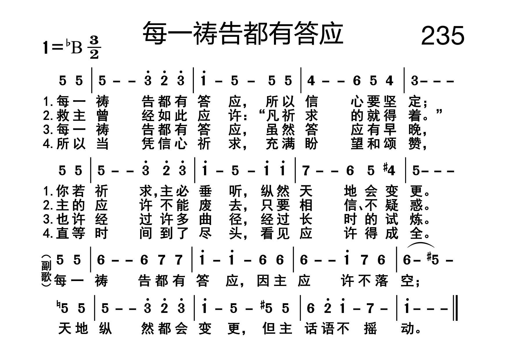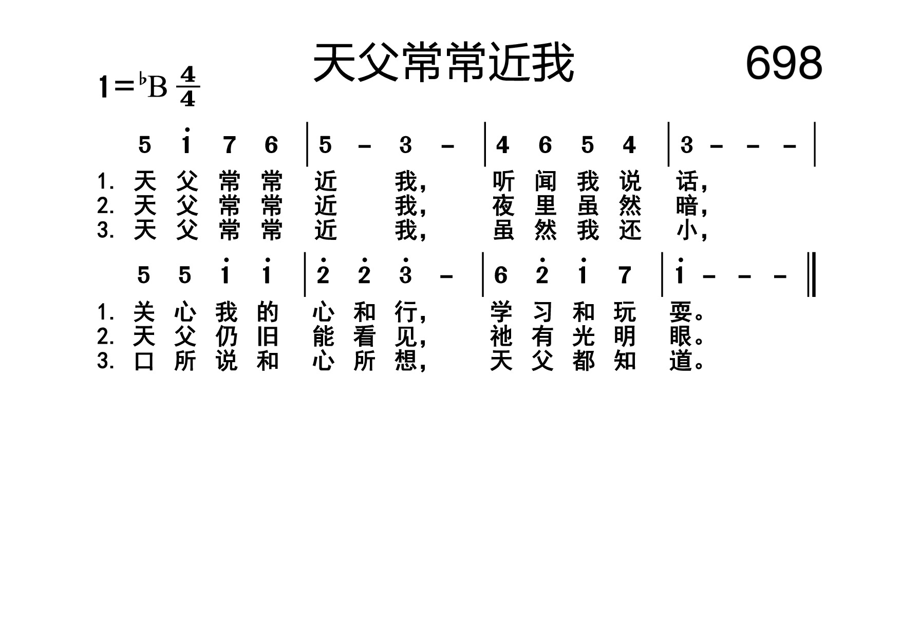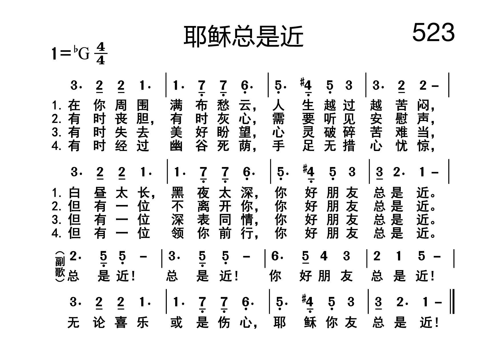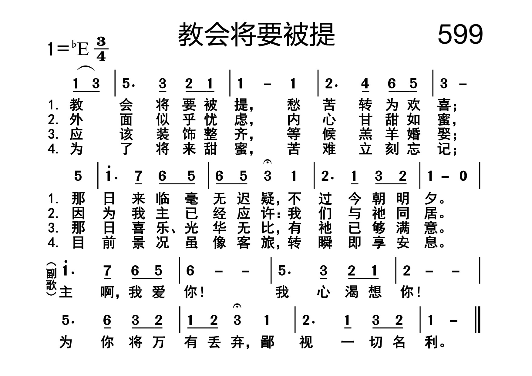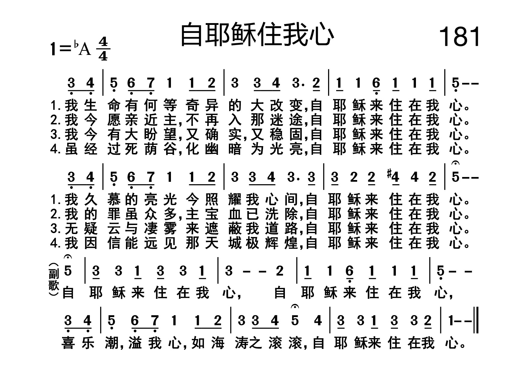 不要想天色常晴朗,有时遇暴风巨浪;虽然前路崎岖不平,有我主与我同行。我要永远永远赞美我的主,因救主居在我心房。我要永远永远赞美我的主,今救主永活在我心。再也没有孤单悲伤,主用圣手扶持我;纵然黑云遮盖前路,我也要欢乐歌唱。