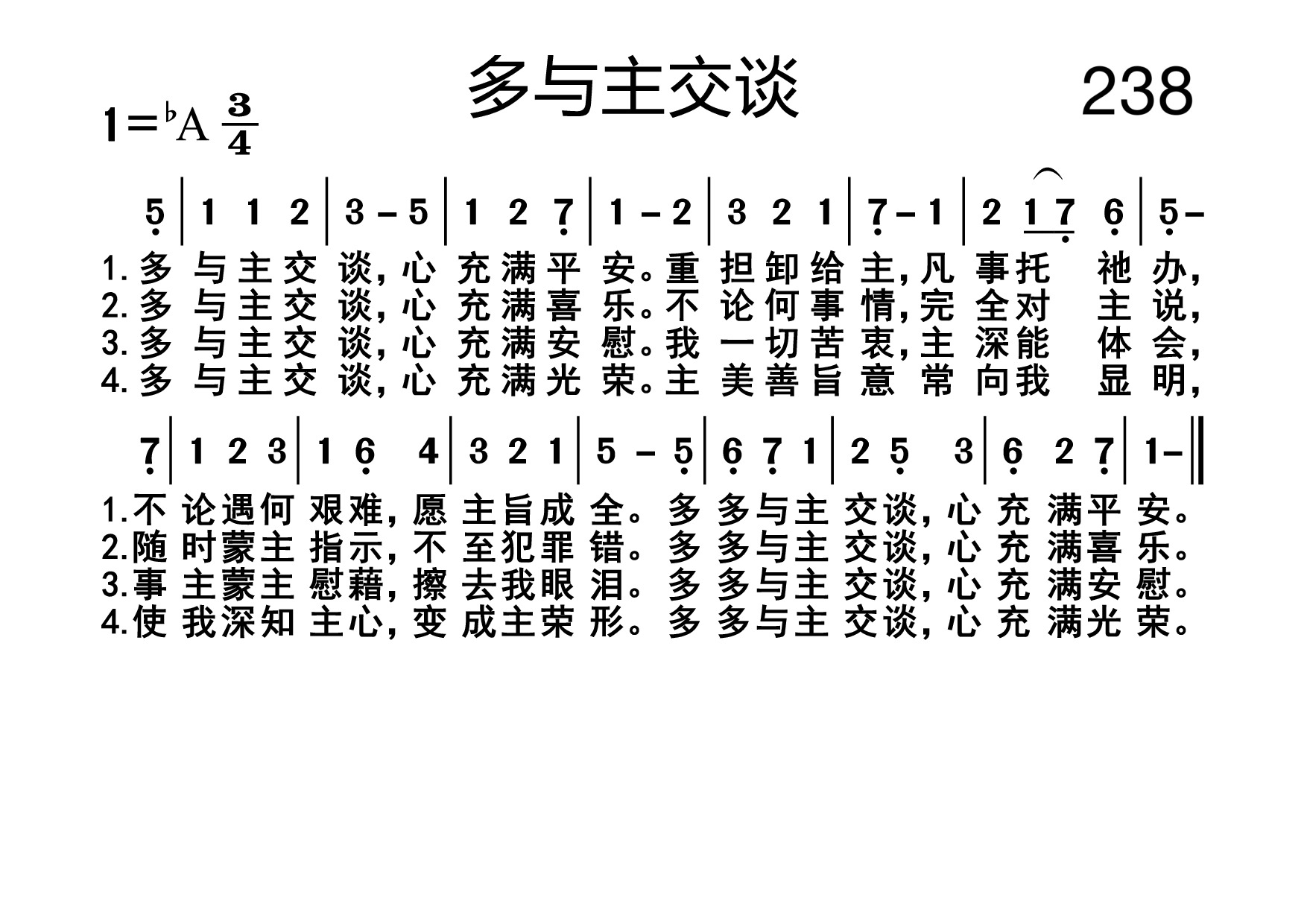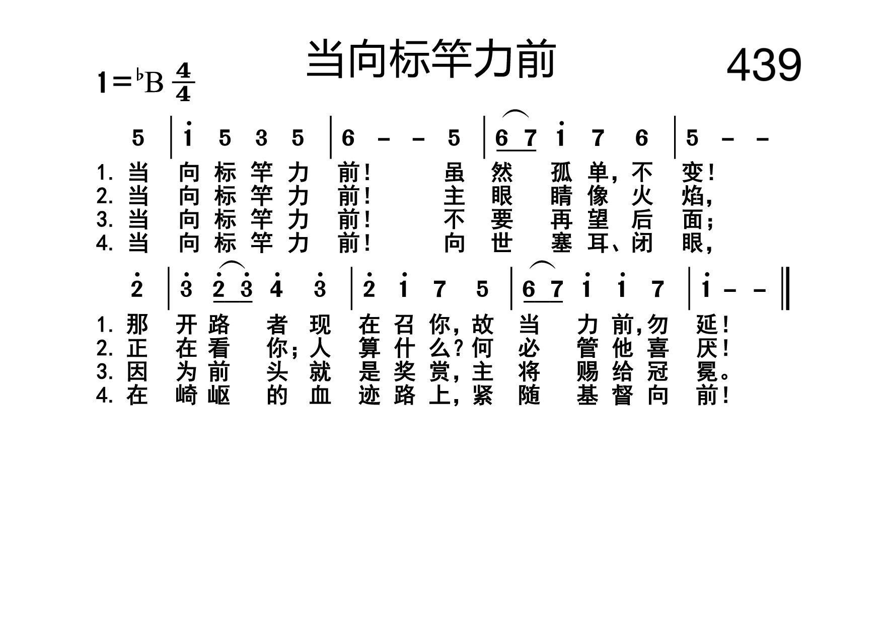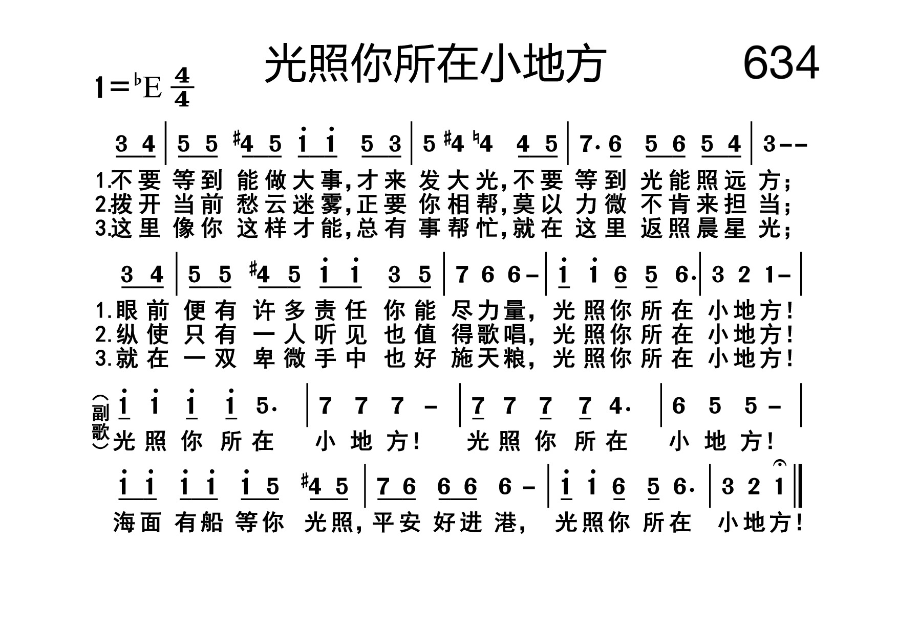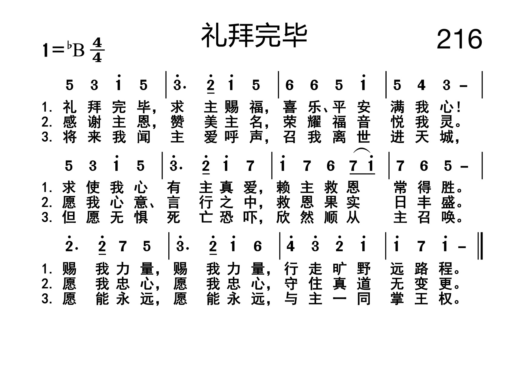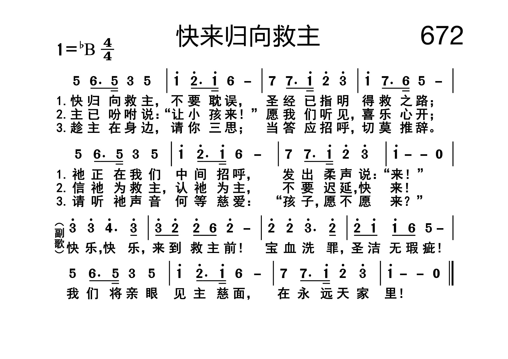 不要想天色常晴朗,有时遇暴风巨浪;虽然前路崎岖不平,有我主与我同行。我要永远永远赞美我的主,因救主居在我心房。我要永远永远赞美我的主,今救主永活在我心。再也没有孤单悲伤,主用圣手扶持我;纵然黑云遮盖前路,我也要欢乐歌唱。
