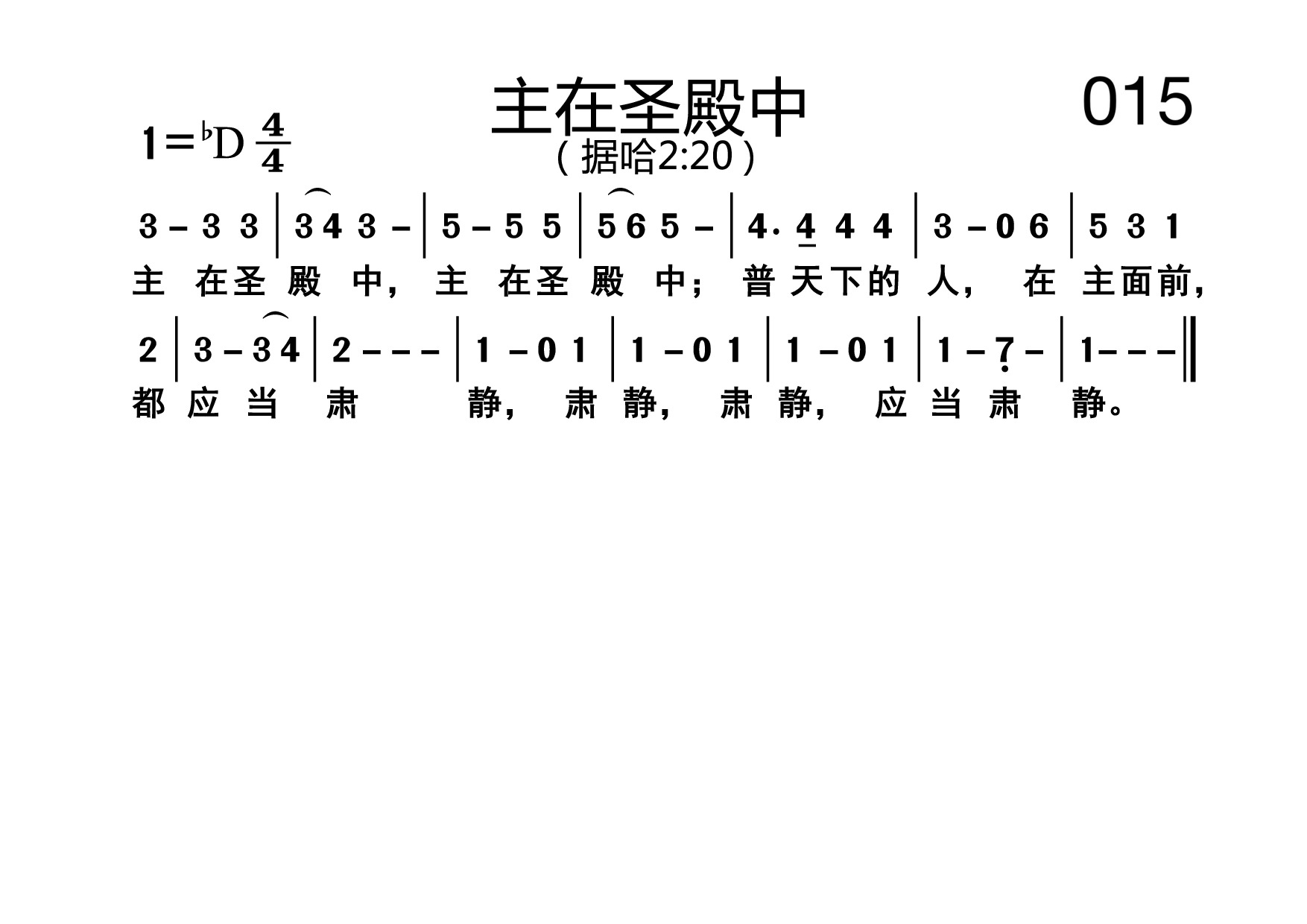 主在圣殿中主在圣殿中普天下的人 在主面前都应当肃静 肃静 肃静应当肃静