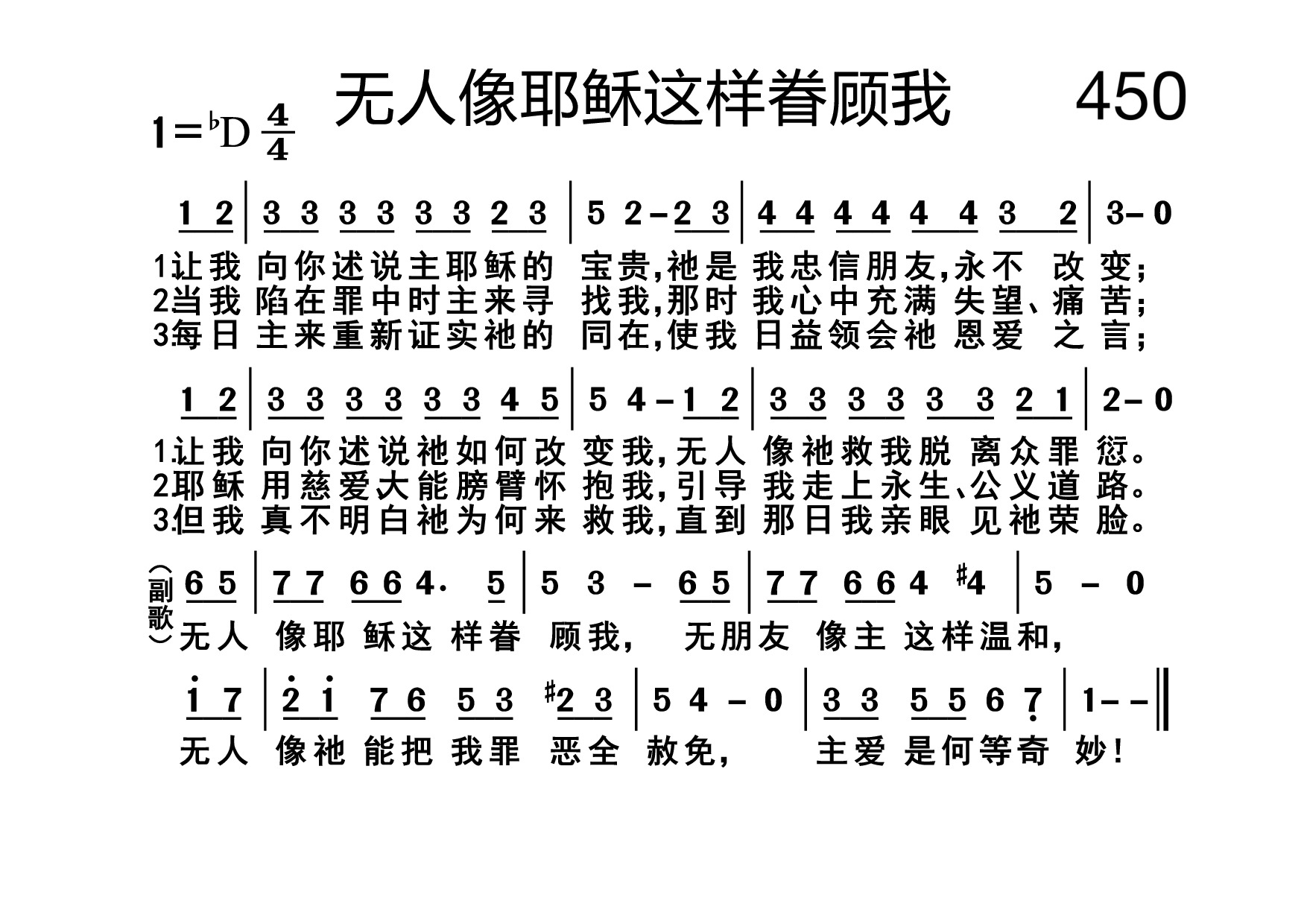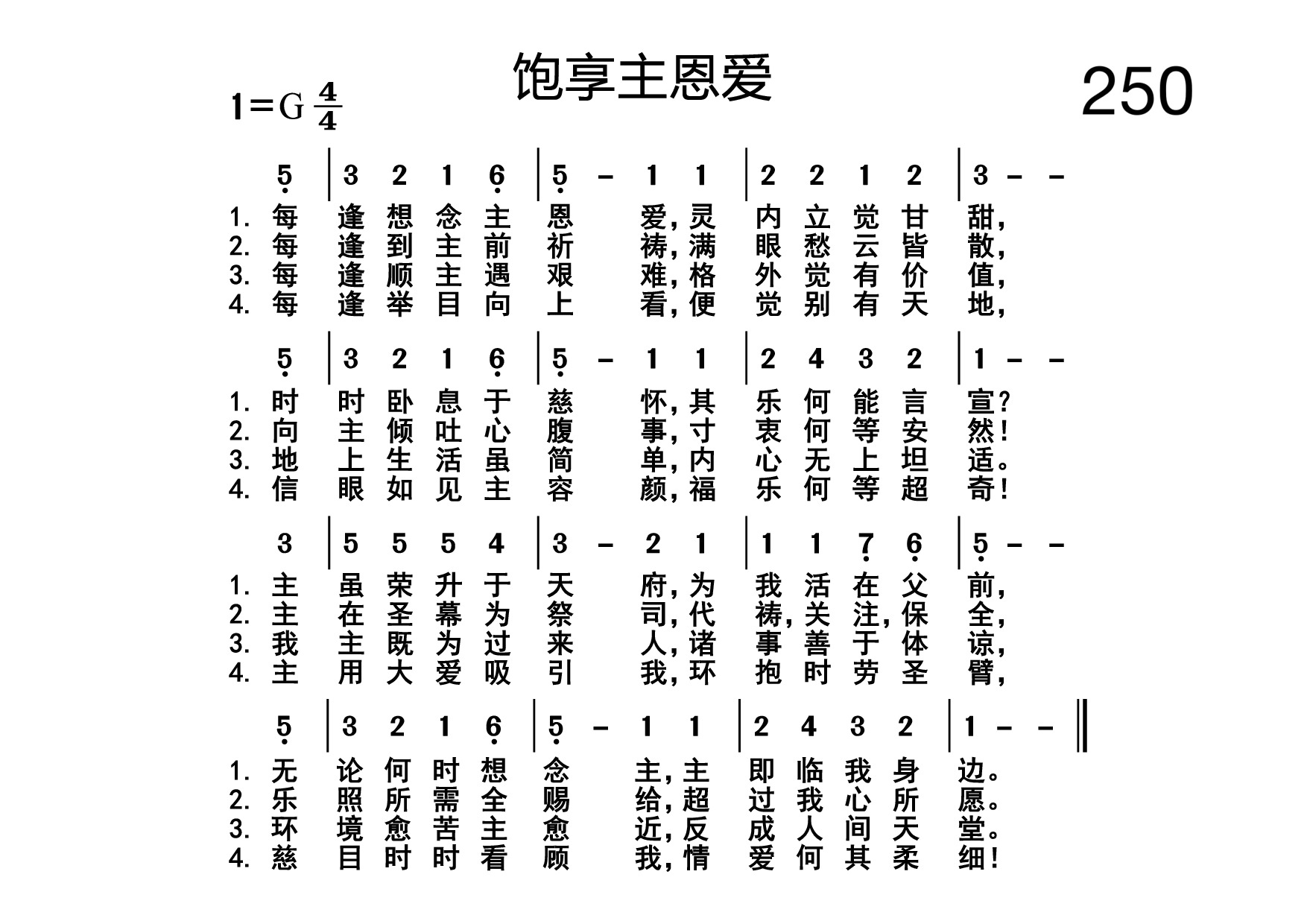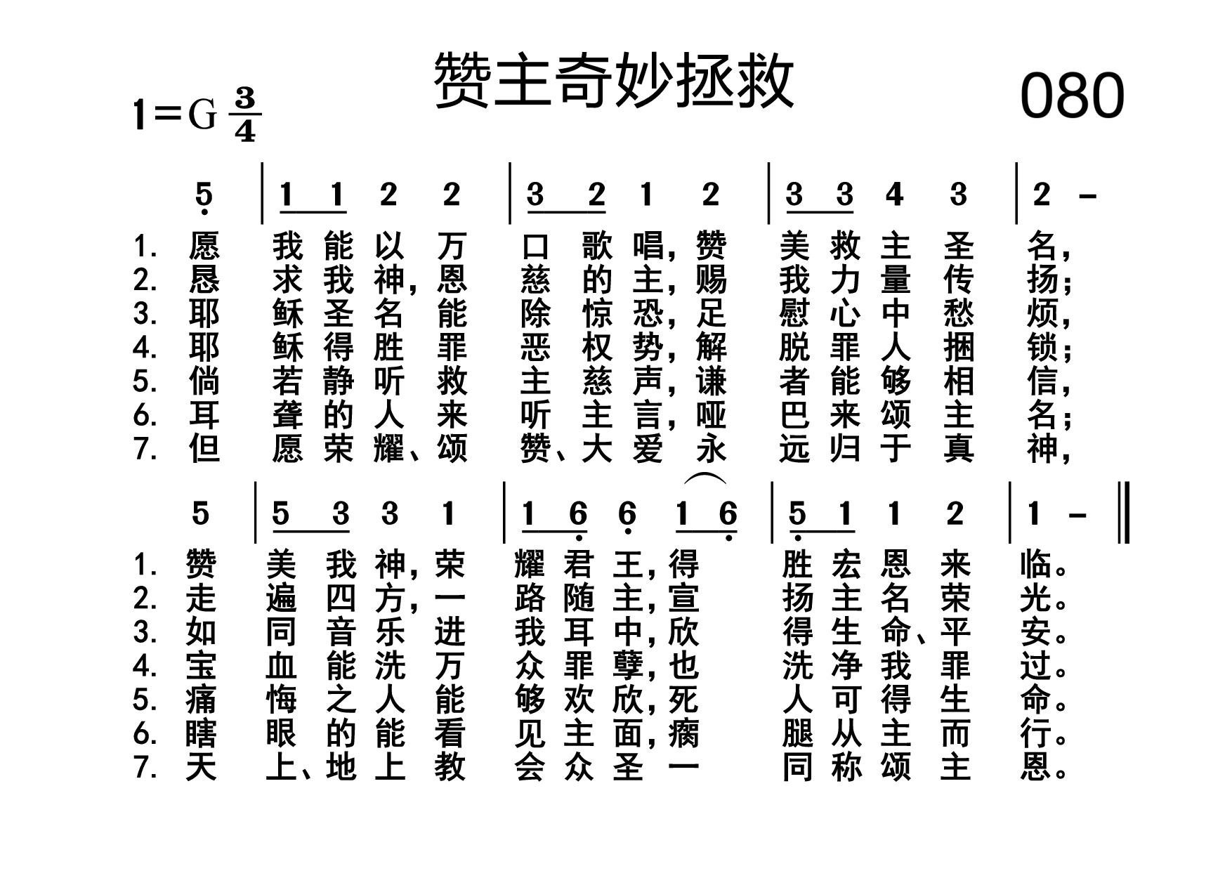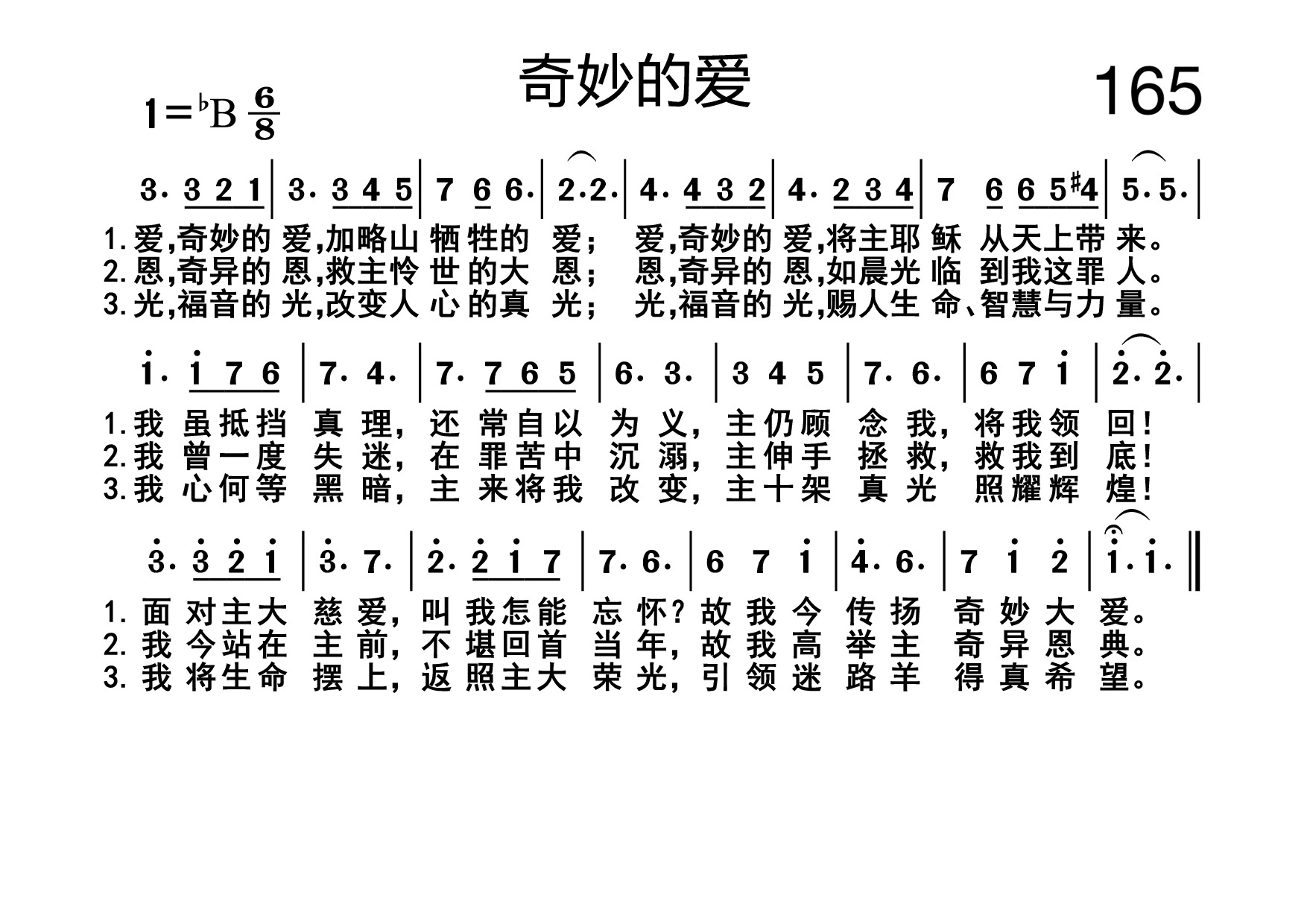我有一位奇妙救主,祂的爱情举世莫如深海虽深,他还要深,高天虽高,他还要高亦新亦陈、又挚又真,不分境地、不理晚早祂爱我,赞美祂的名祂在天上位分至尊,天使天军无不拜顿却因情爱非常坚强,以至愿意撇弃穹苍来寻迷羊,并且受戕,舍了天福,又失世赏祂寻我,赞美祂的名祂的道路实在孤单,没有同心没有同伴祂的所有患难忧愁,惟祂自己和神知道但祂前走不稍退后,直等祂到我的囚牢祂见我,赞美祂的名不久,悲惨日子就到:祂被人卖,祂被人告祂就如此零丁孤苦,头戴荆冕,身受鞭伤为我之故,来髑髅处,忍辱受死,疼痛独当祂救我,赞美祂的名一生一世,我要述说, 祂的爱情何等超绝当我至终被提上天, 住在祂所预备的家我心所羡, 是见祂面,我要高唱哈利路亚我爱祂,赞美祂的名