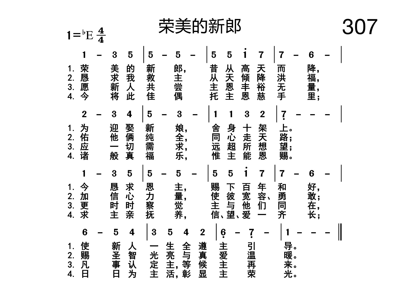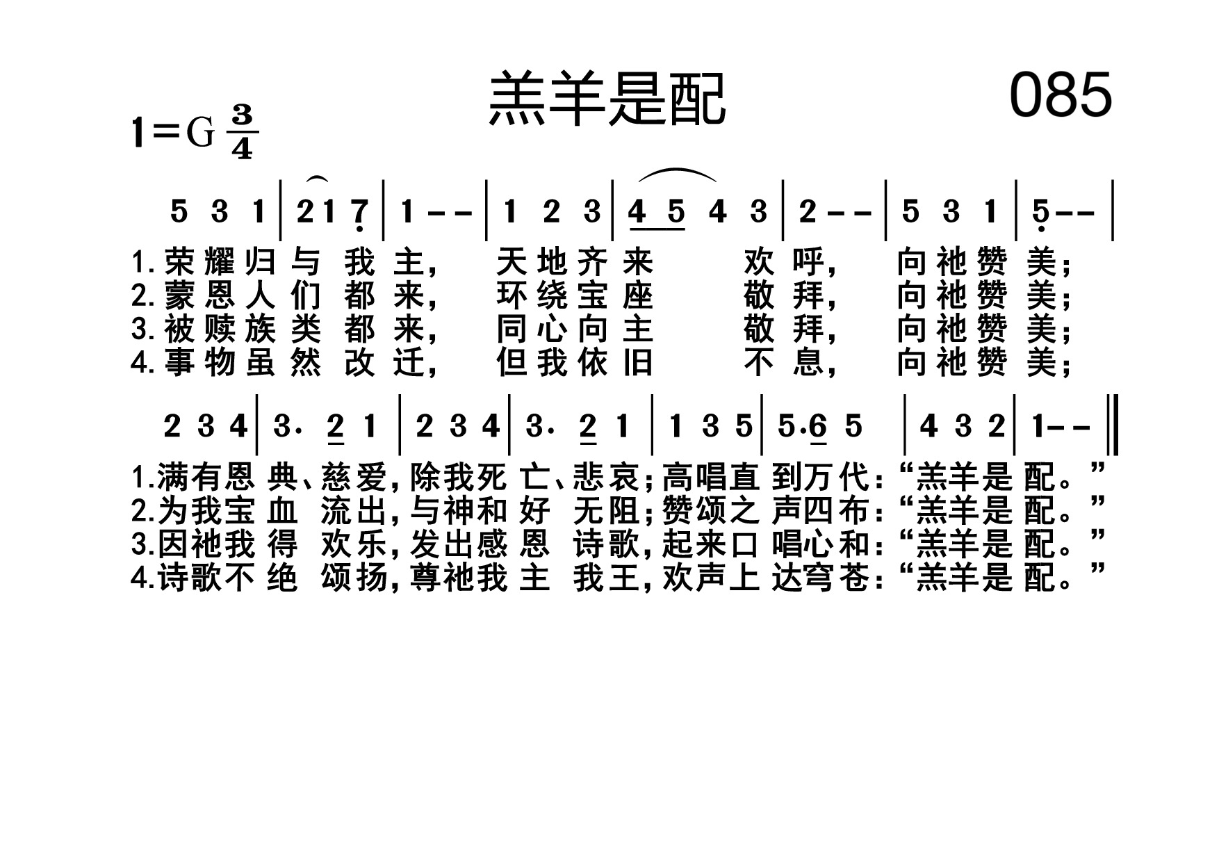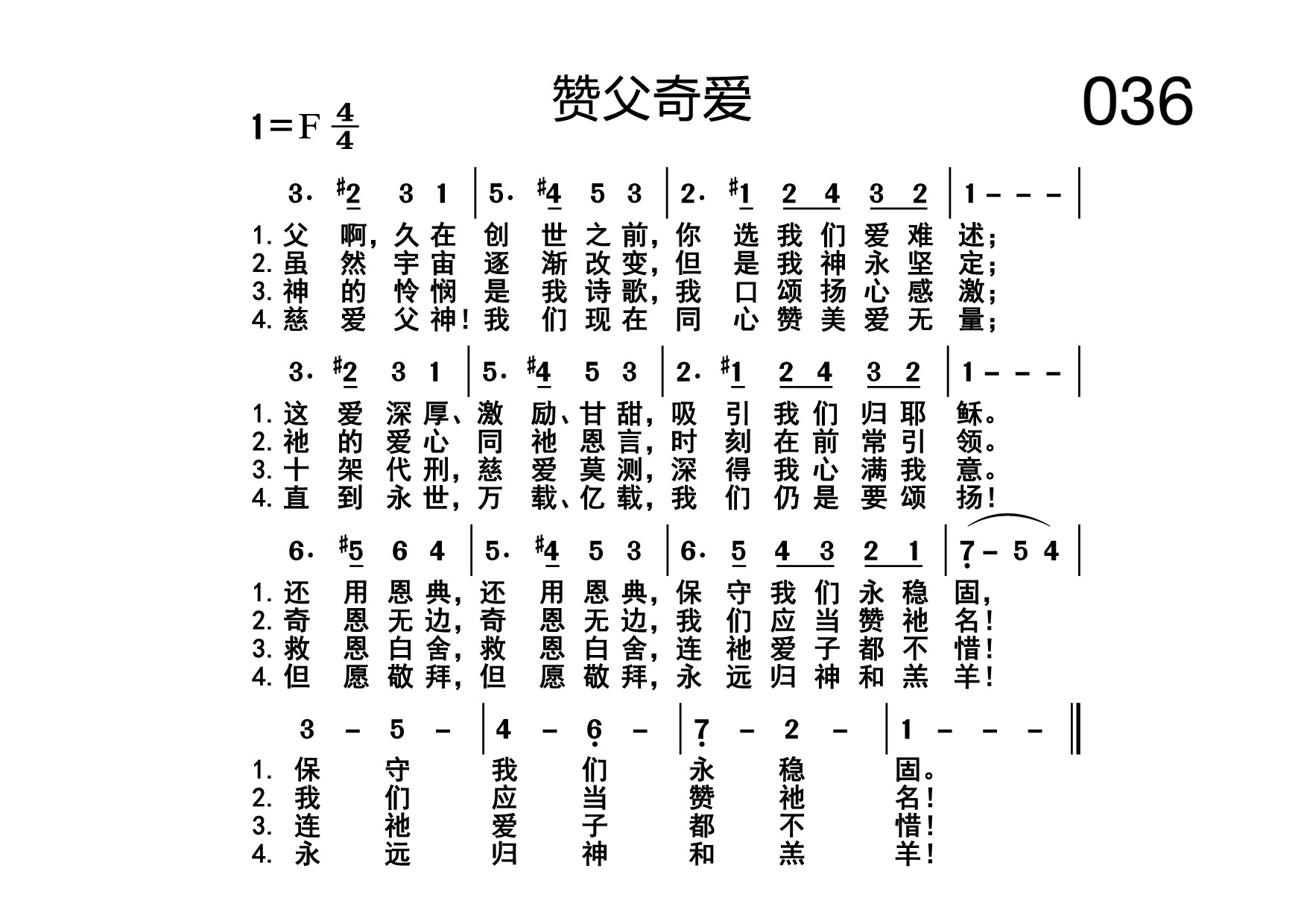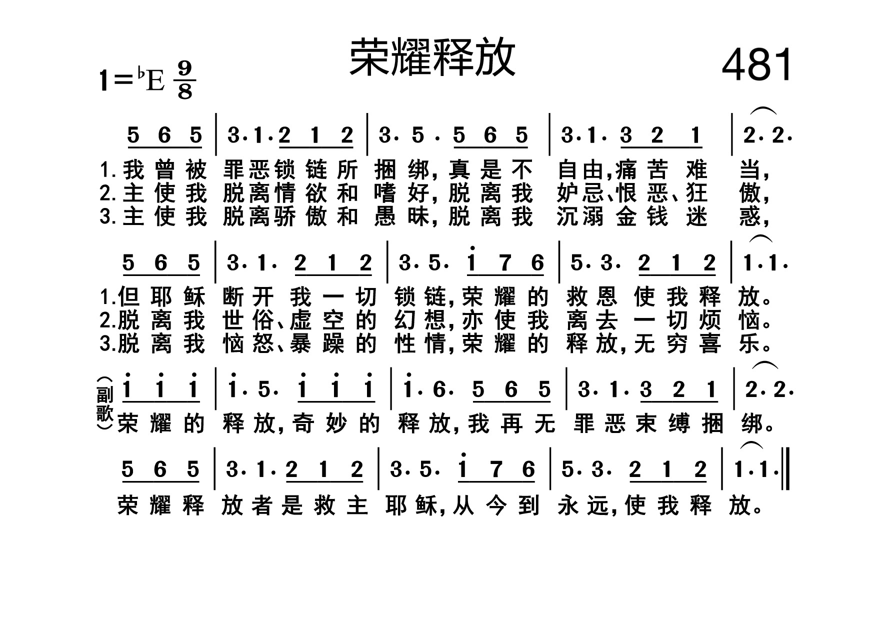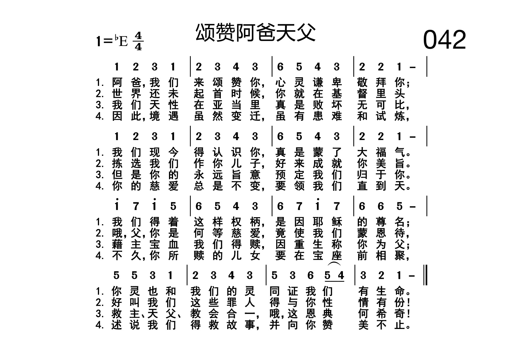 荣耀归于天父 他爱怜普世为救我们罪人 赐下独生子主也甘心情愿 为我们舍命敞开天上恩门 使我们得生赞美主 赞美主 全地当尊他名赞美主 赞美主 万民都当欢欣藉着圣子耶稣 得亲近天父他已成功救赎 荣耀归天父父神赦罪恩典 因主临我们凡信主的人们 靠主得永生你虽罪恶深重 当信主耶稣就立时蒙赦免 永远得救赎赞美主 赞美主 全地当尊他名赞美主 赞美主 万民都当欢欣藉着圣子耶稣 得亲近天父他已成功救赎 荣耀归天父救主已经为我 成就了大事今日得享安乐 全靠主赏赐直等我的眼睛 得见主荣形那时我的福乐 更无穷无尽赞美主 赞美主 全地当尊他名赞美主 赞美主 万民都当欢欣藉着圣子耶稣 得亲近天父他已成功救赎 荣耀归天父