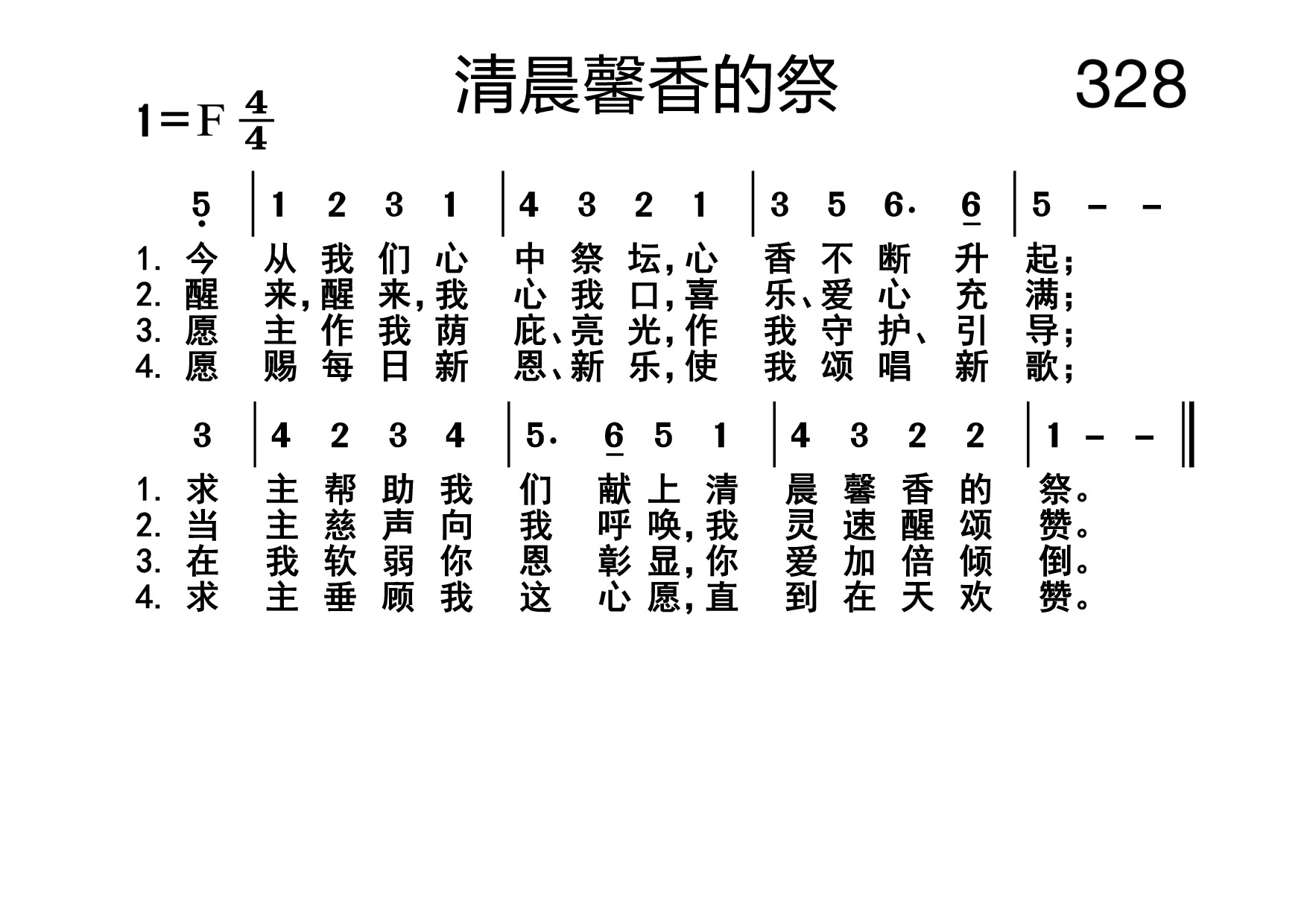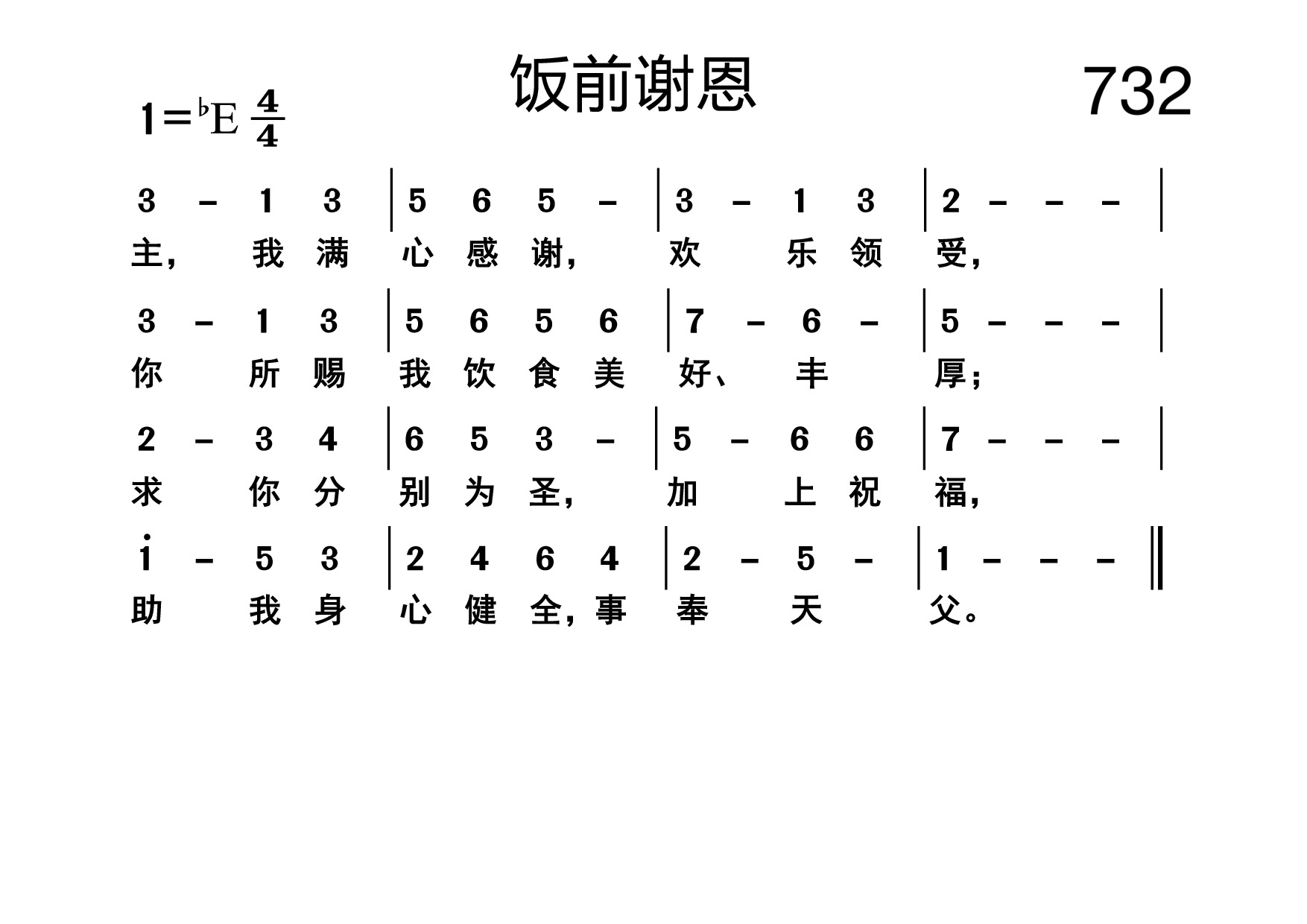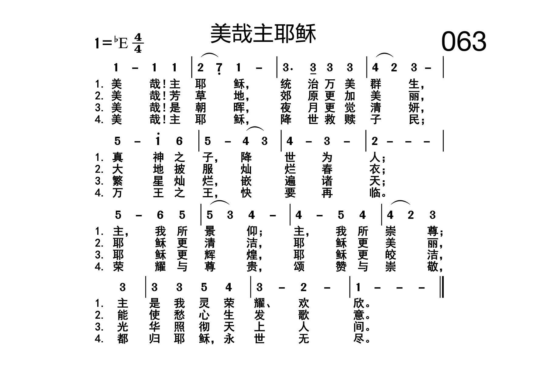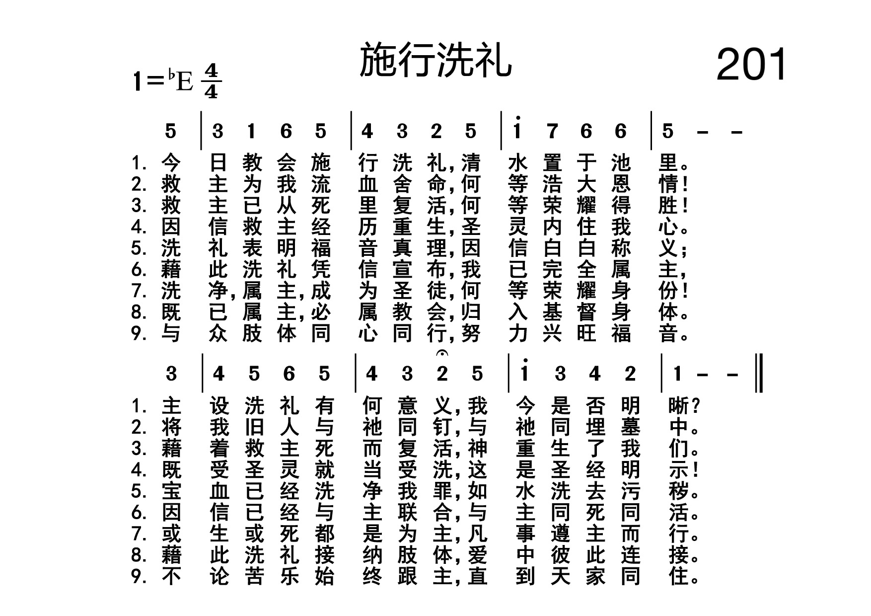 赞美上主 创造群山赞美上主 灌注百川赞美上主 装饰空间日月交辉 明星万点赞美上主 唤醒黎明晨光灿烂 照耀万灵赞美上主 安排夜景如垂帐幕 护我安寝赞美上主 大哉宏恩差遣圣子 赏赐生命使我长夜变成白昼使我黑暗变成光明赞美基督 因爱降生担负一切羞辱艰辛降生受死 由死复活舍身以作万世牺牲赞美圣灵 大发光明将主爱力照彻我心圣洁喜乐仁爱和平诸般善果 圣灵所生父子圣灵 三位一体万民屈膝 崇拜虔诚纵使人生羁旅多愁依旧欢呼赞美不停