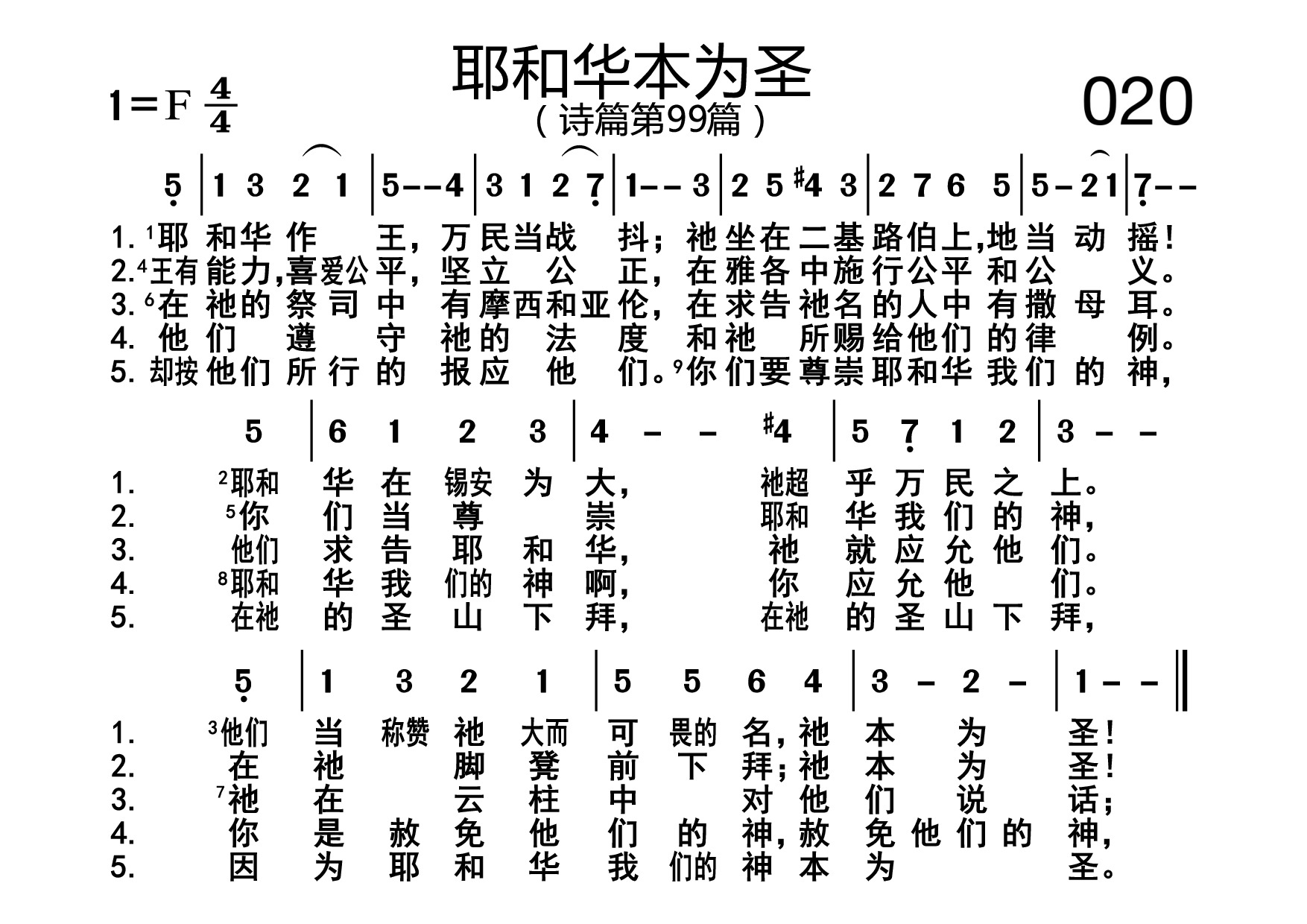 耶和华作王万民当战抖他坐在二基路伯上地当动摇耶和华在锡安为大他超乎万民之上他们当称赞他大而可畏的名他本为圣王有能力喜爱公平坚立公正在雅各中施行公平和公义你们当尊崇耶和华我们的神在他脚凳前下拜他本为圣在他的祭司中有摩西和亚伦在求告他名的人中有撒母耳他们求告耶和华他就应允他们他在云柱中对他们说话他们遵守他的法度和他所赐给他们的律例耶和华我们的神阿你应允他们你是赦免他们的神是赦免他们的神却按他们所行的报应他们你们要尊崇耶和华我们的神你们要尊崇耶和华我们的神在他的圣山下拜在他的圣山下拜因为耶和华我们的神本为圣