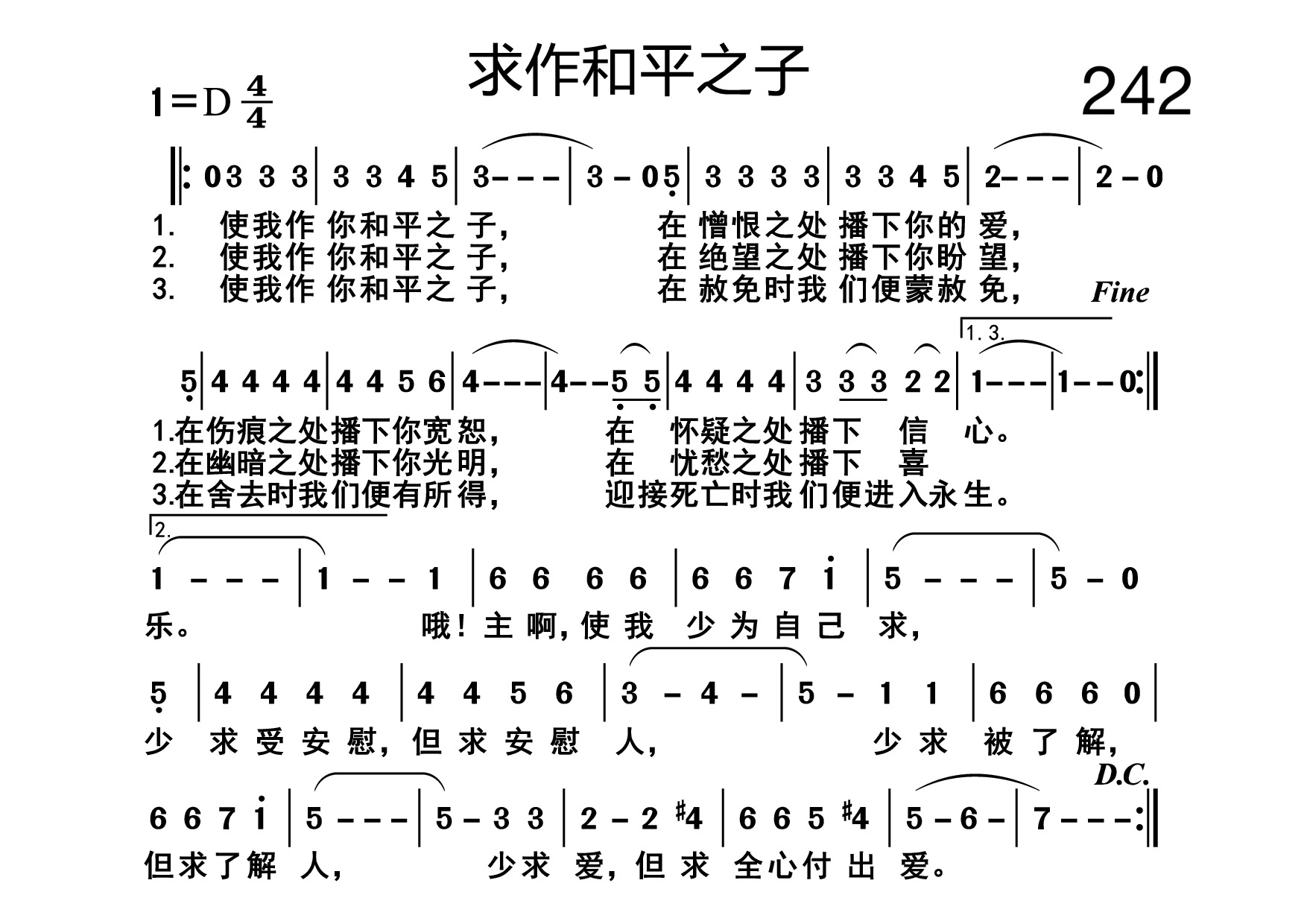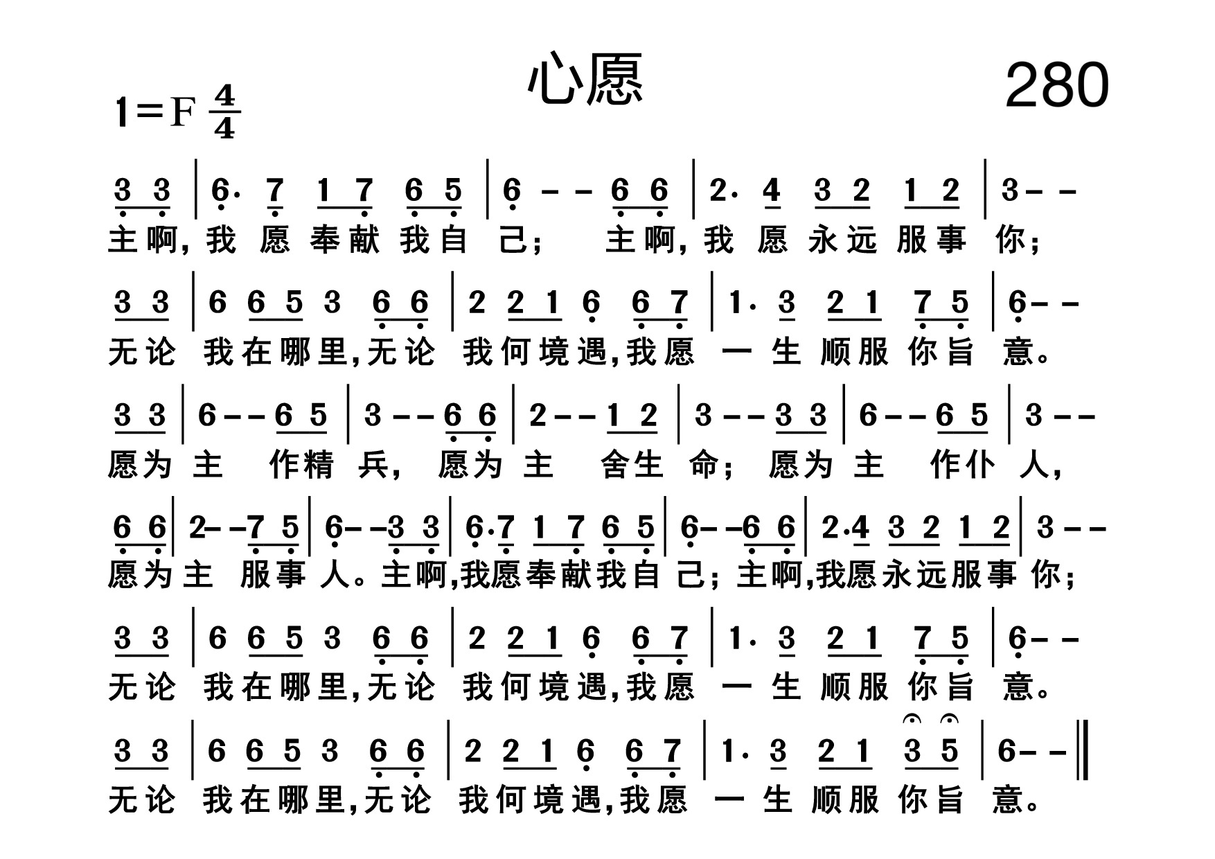 让我爱而不受感戴,让我事而不受赏赐;让我尽力而不被人记,让我受苦而不被人睹。只知倾酒,不知饮酒;只想擘饼,不想留饼。倒出生命来使人得幸福,舍弃安宁而使人得舒服。不受体恤,不受眷顾,不受推崇,不受安抚;宁可凄凉,宁可孤苦,宁可无告,宁可被负。愿意以血泪作为冠冕的代价,愿意受亏损来度旅客的生捱。因为当你活在这里时,你也是如此过日子,欣然忍受一切的损失好使近你的人得安适。我今不知前途究有多远,这条道路一去就不再还原;所以让我学习你那样的完全,时常被人辜负心不生怨。求你在这惨淡时期之内,擦干我一切暗中的眼泪;学习知道你是我的安慰,并求别人喜悦以度此岁。