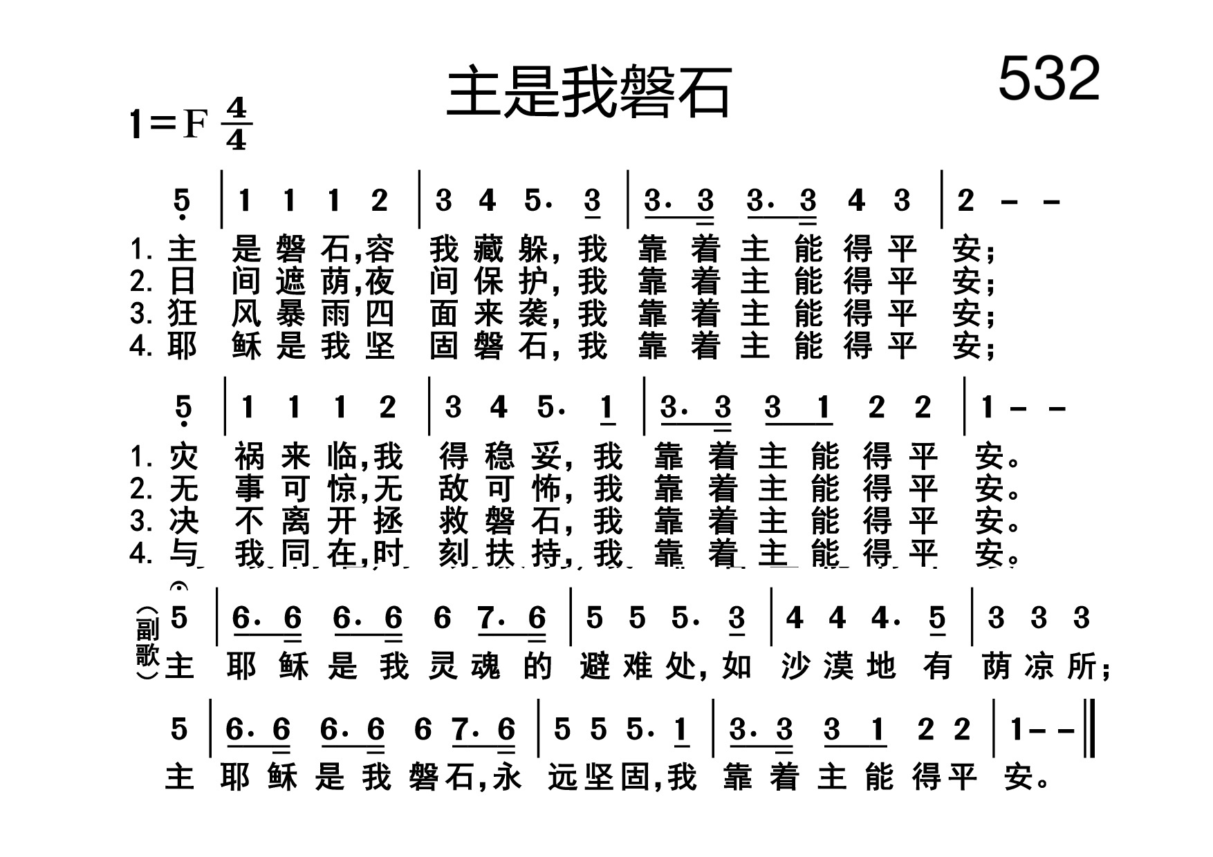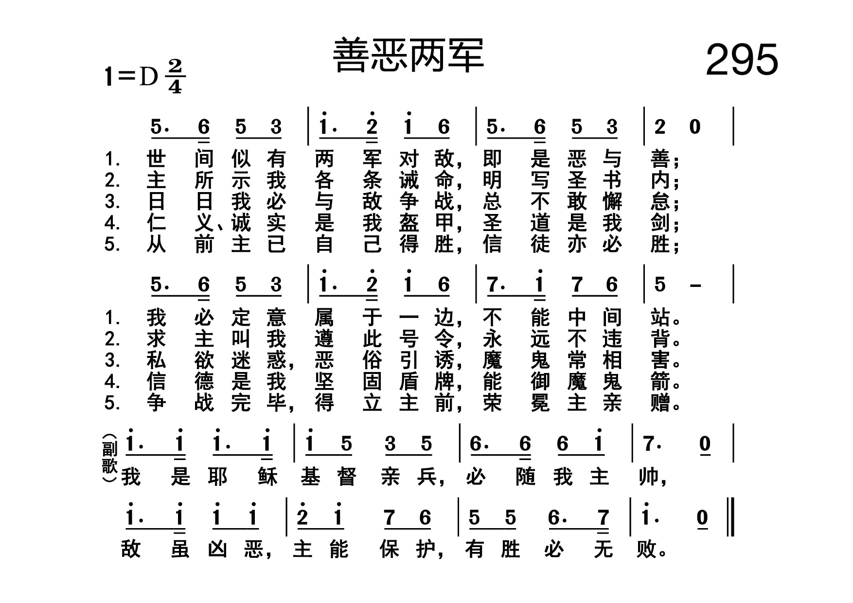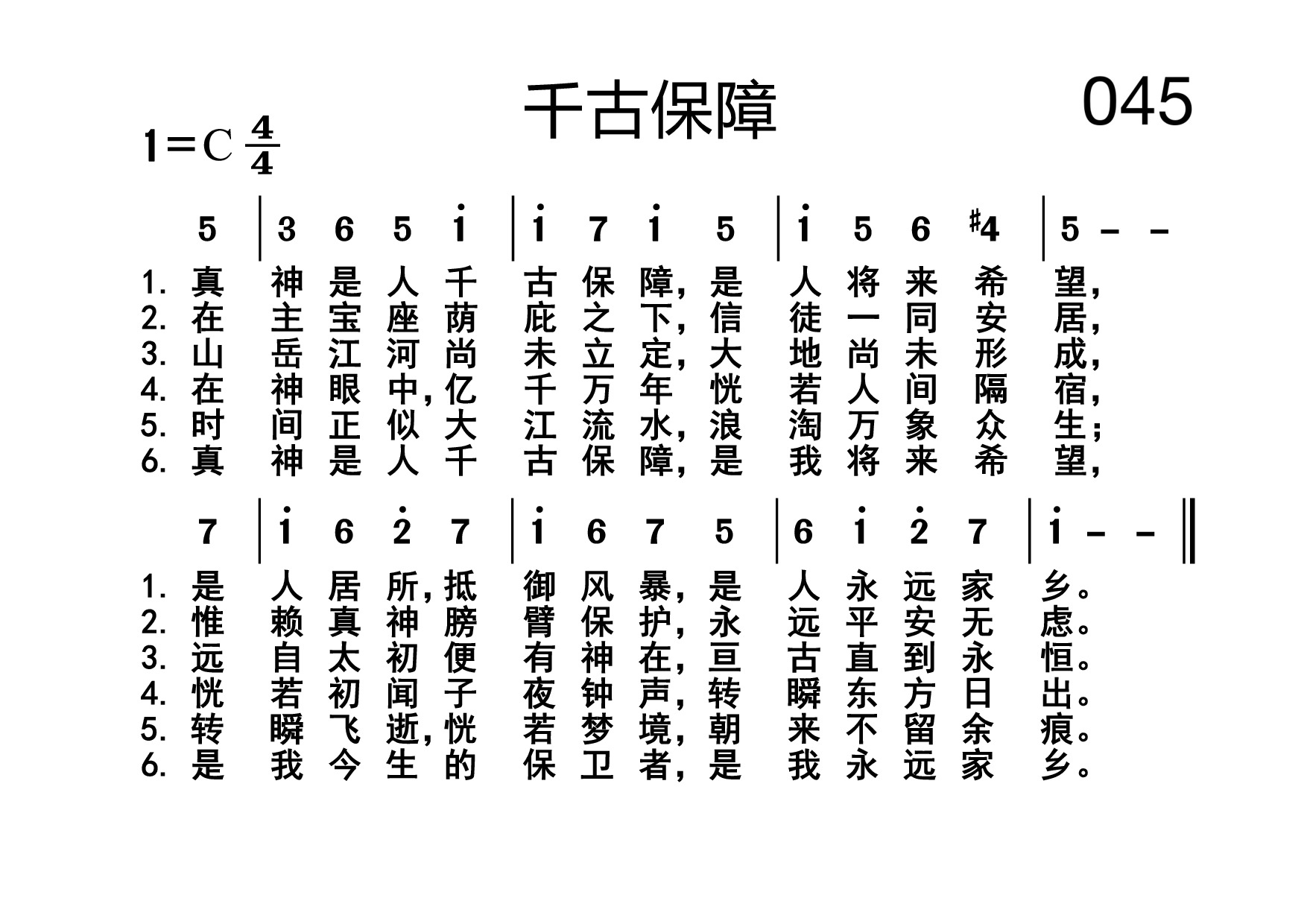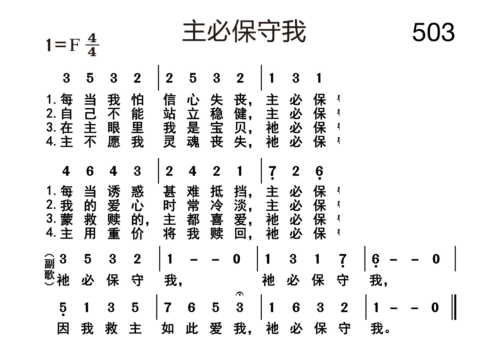 上主是我坚固保障,庄严雄峻,永坚强;上主是我安稳慈航,助我乘风冲骇浪。恶魔盘踞世上,仍谋兴波作浪,猖狂狡猾异常,怒气欲吞万象,世间惟他猛无双。我若单凭自己力量,自知断难相对抗,幸有神人踊跃先登,率领着我往前方。如问此人为谁?乃是万军之将,又是万有君王,自古万民共仰,耶稣基督名浩荡。魔鬼虽然环绕我身,向我尽量施侵凌,我不惧怕,因神有旨,真理定能因我胜。幽暗之君虽猛,不足令我心惊,他怒,我能忍受,日后胜负必分,主言必使他败奔。此言权力伟大非常,远胜世上众君王,圣灵恩典为我所有,因主耶稣在我方。亲戚货财可舍,渺小浮生可丧,他们虽杀我身,主道依然兴旺,上主国度永久长。