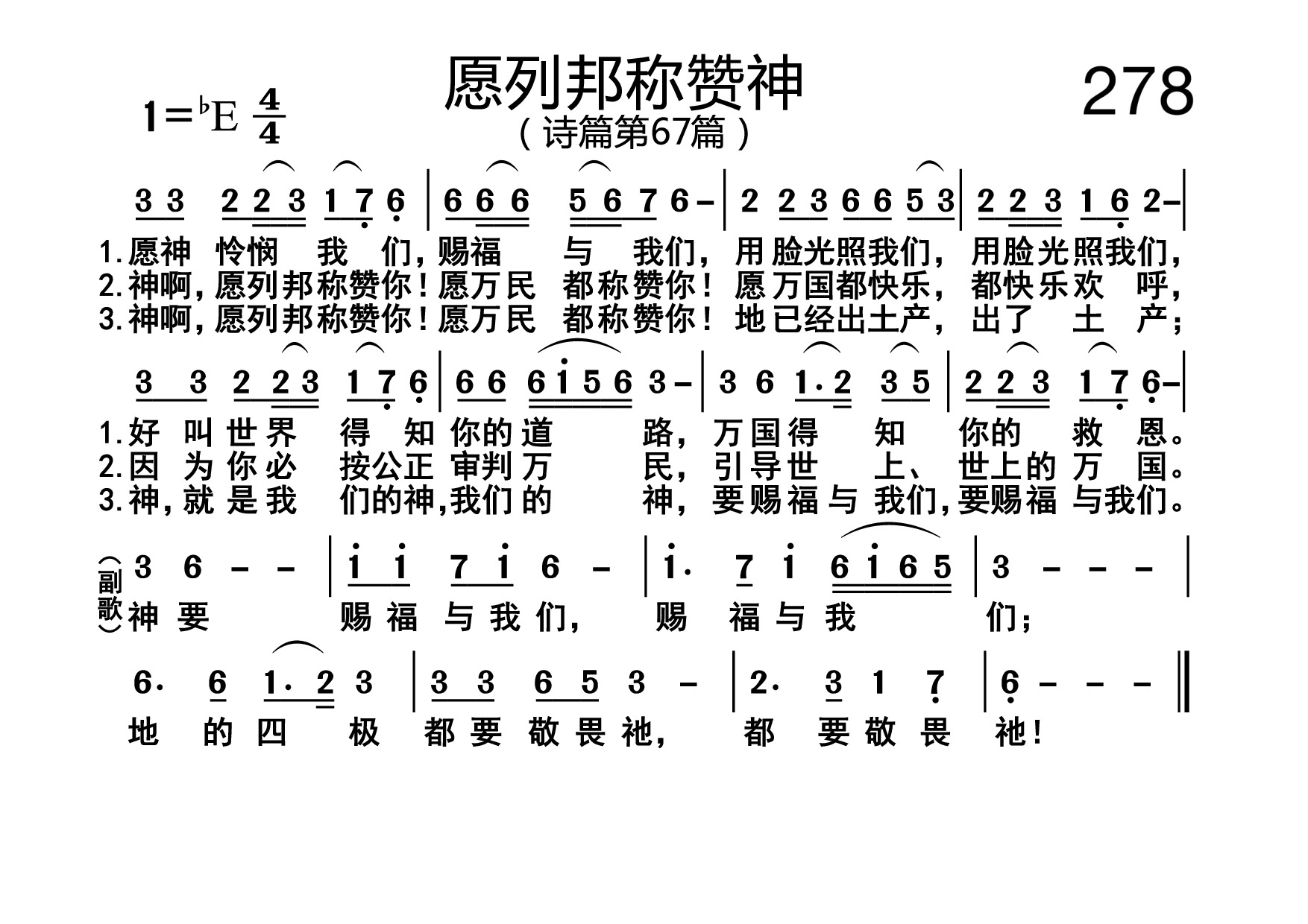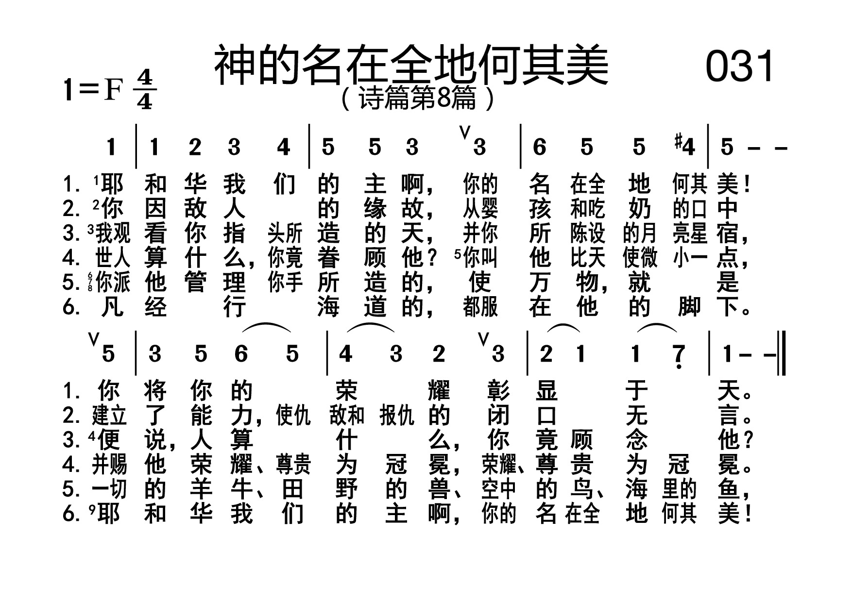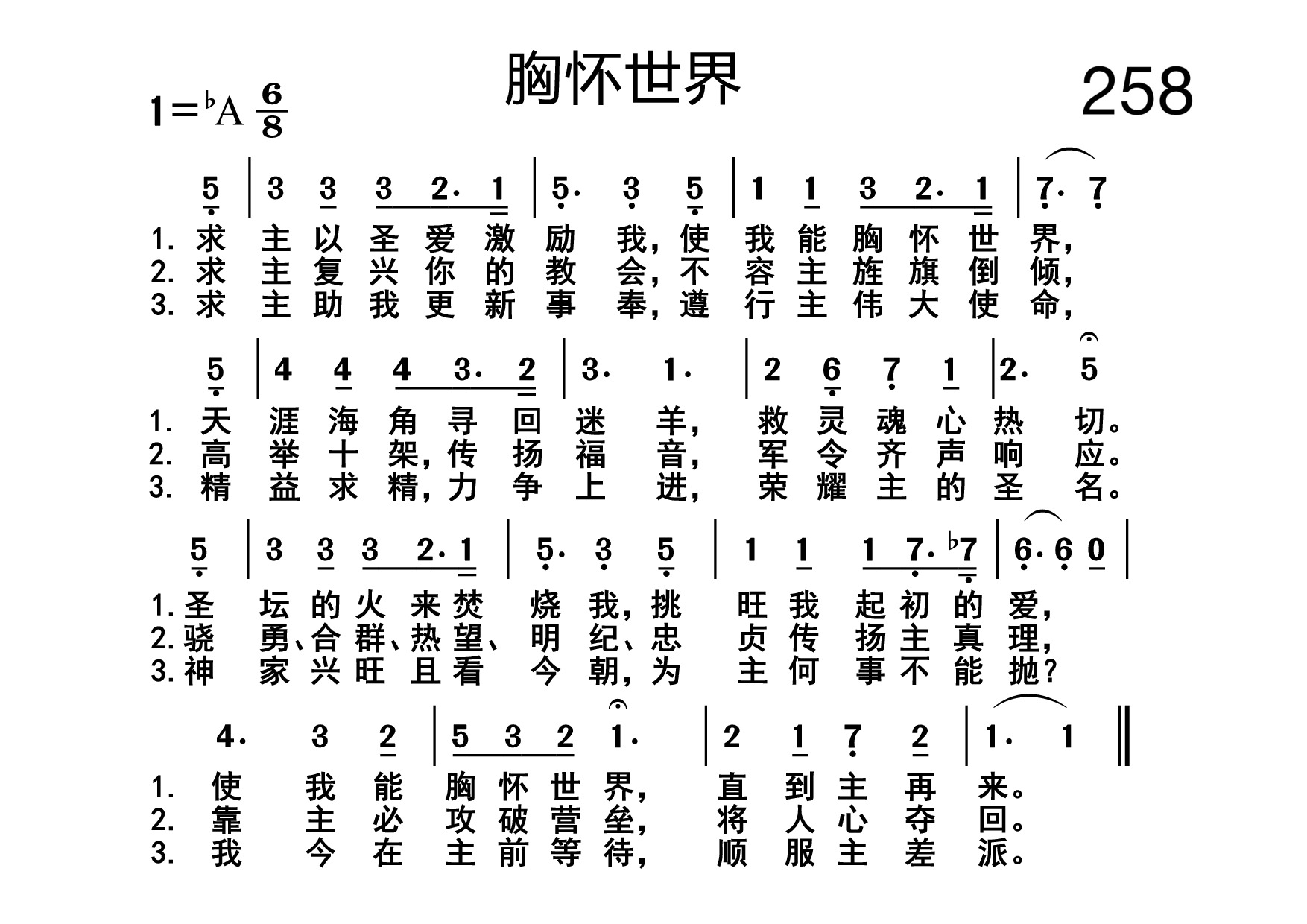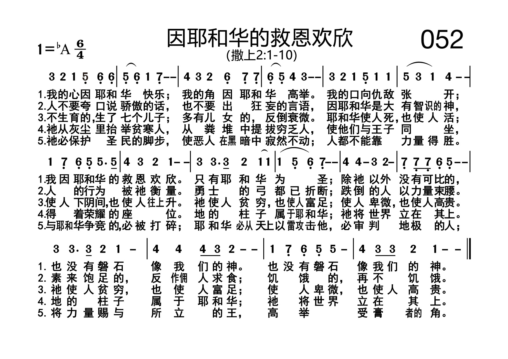 上主是我坚固保障,庄严雄峻,永坚强;上主是我安稳慈航,助我乘风冲骇浪。恶魔盘踞世上,仍谋兴波作浪,猖狂狡猾异常,怒气欲吞万象,世间惟他猛无双。我若单凭自己力量,自知断难相对抗,幸有神人踊跃先登,率领着我往前方。如问此人为谁?乃是万军之将,又是万有君王,自古万民共仰,耶稣基督名浩荡。魔鬼虽然环绕我身,向我尽量施侵凌,我不惧怕,因神有旨,真理定能因我胜。幽暗之君虽猛,不足令我心惊,他怒,我能忍受,日后胜负必分,主言必使他败奔。此言权力伟大非常,远胜世上众君王,圣灵恩典为我所有,因主耶稣在我方。亲戚货财可舍,渺小浮生可丧,他们虽杀我身,主道依然兴旺,上主国度永久长。