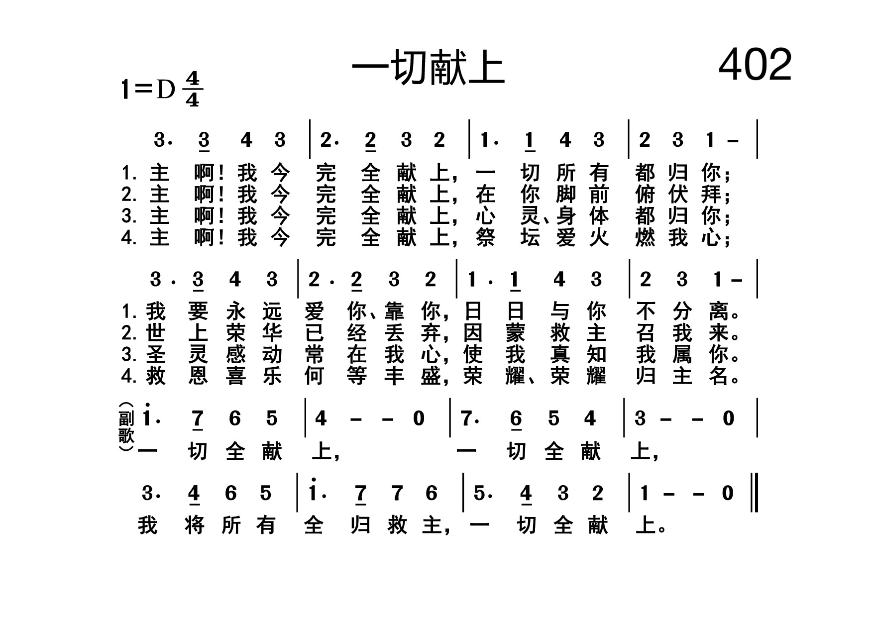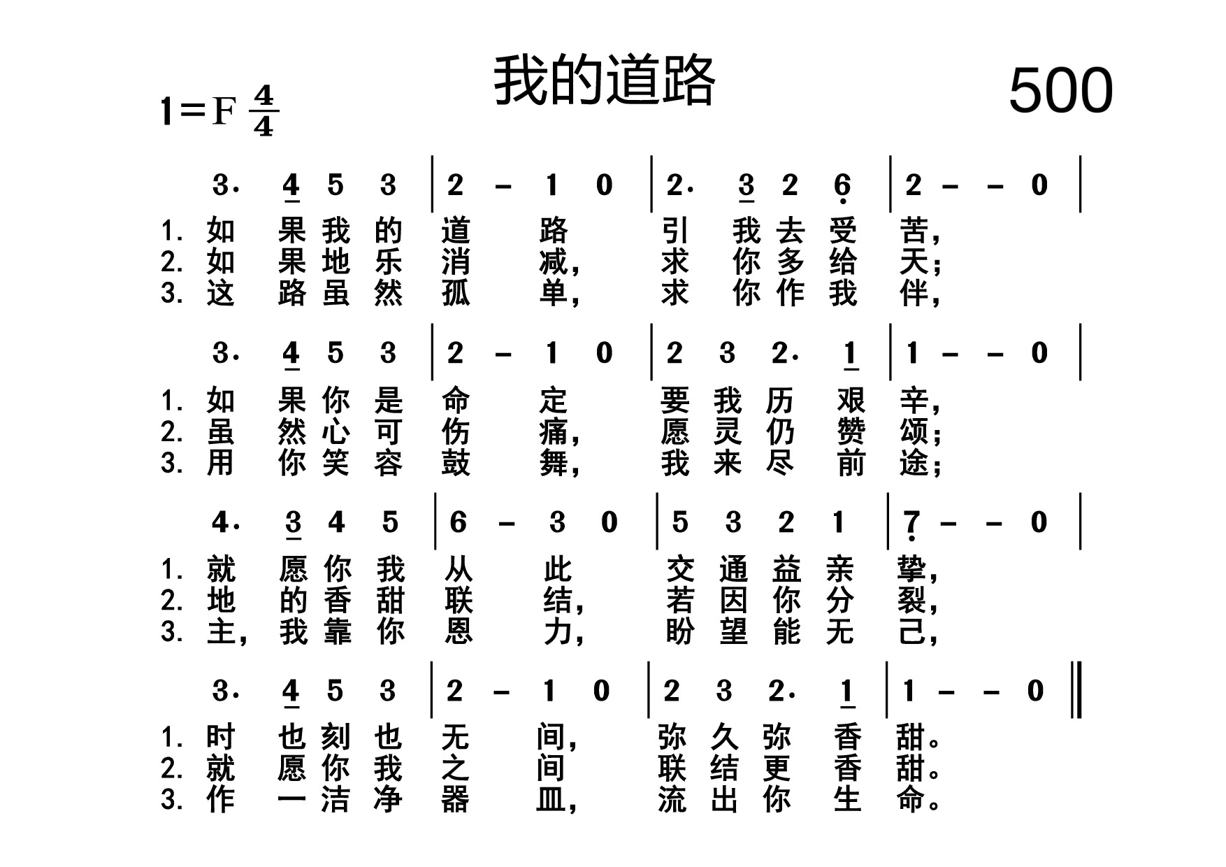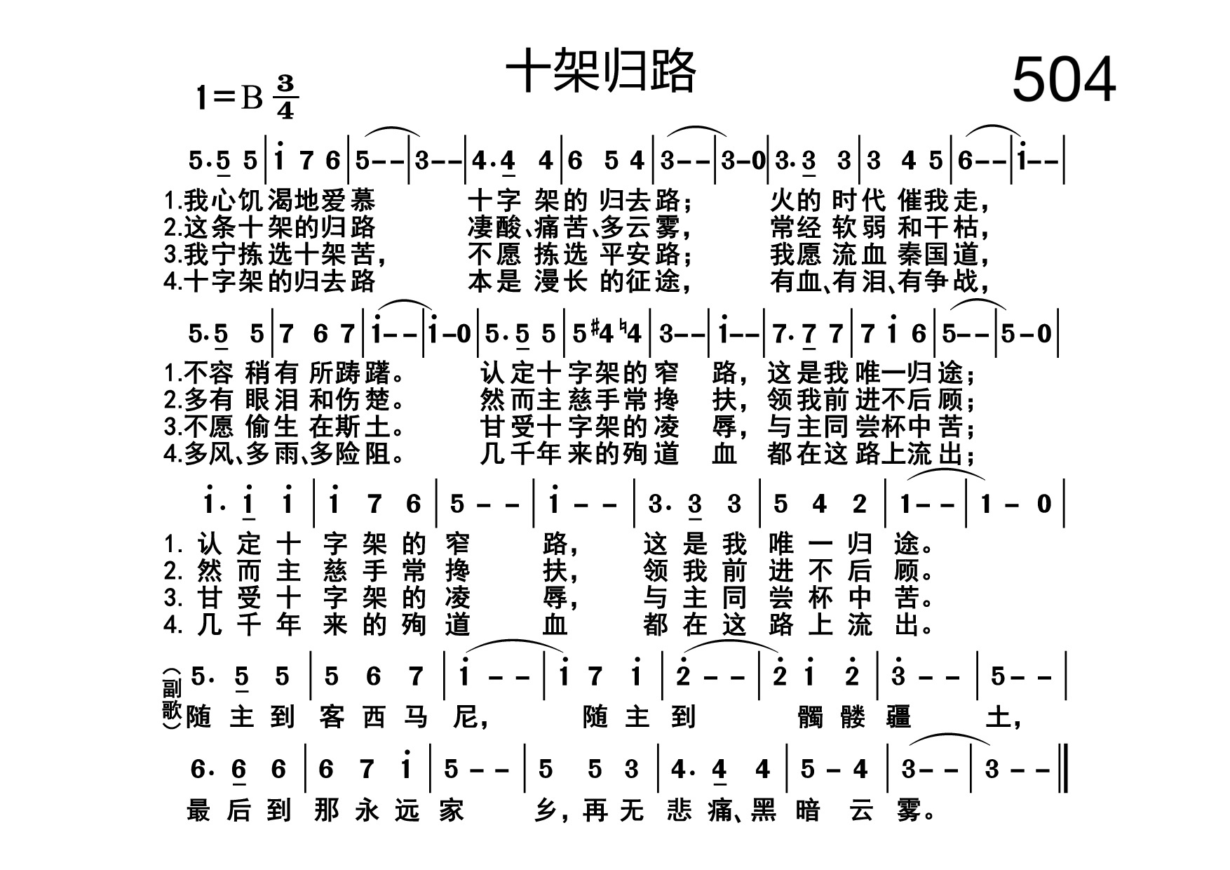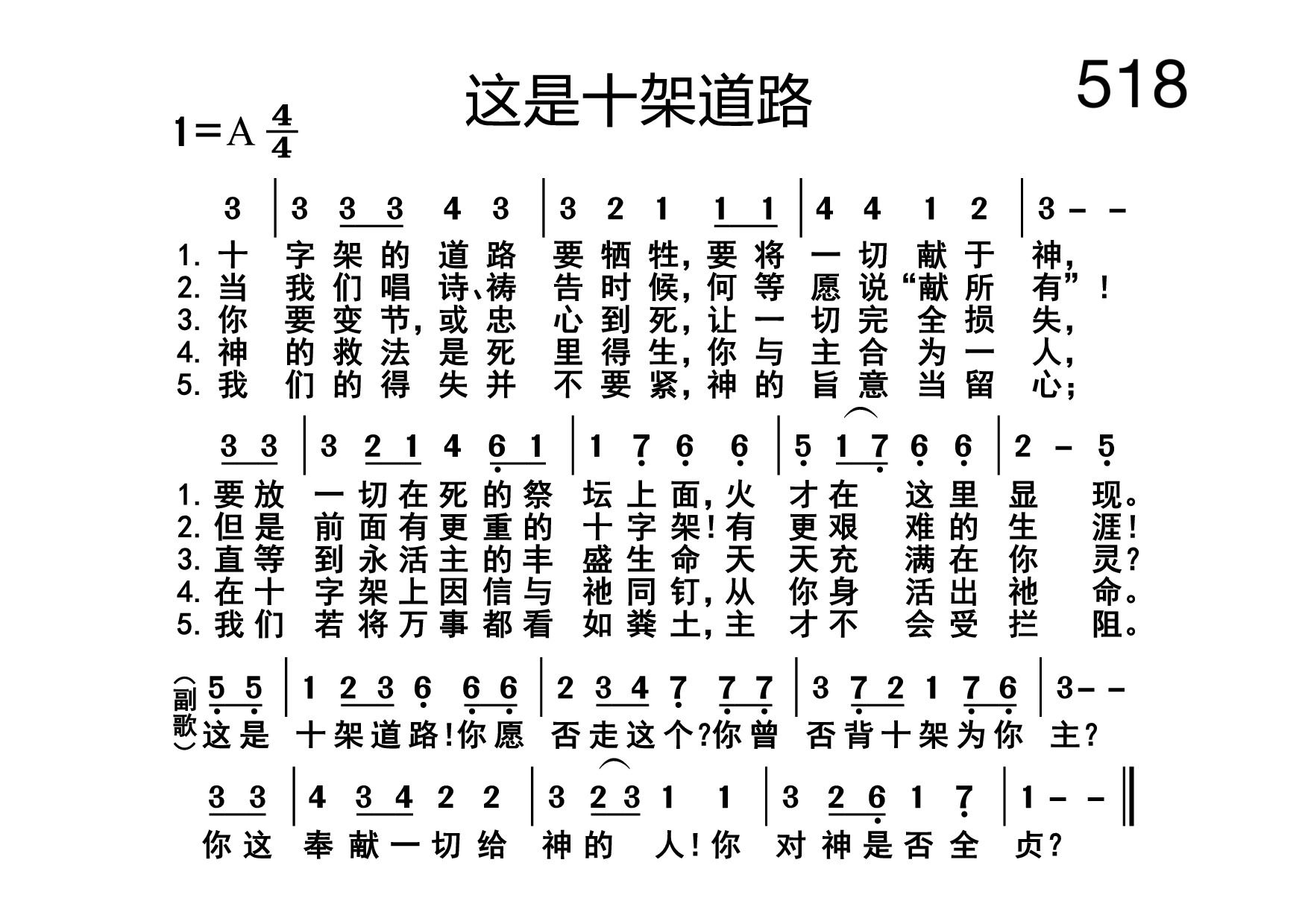 十字架的道路要牺牲,要将一切献于神;将一切放在死的祭坛上面,火才在这里显现。 (副)这是十架道路!你愿否走这个?你曾否背十架为你主?你这奉献一切给神的人!对神你是否全贞? 当我们唱诗祷告时候,何等愿说“献所有!”但前面有更沉重的十字架!有更艰难的生涯! 你要变节;或忠心到死,让一切完全损失,直等到永活主的丰盛生命天天充满在你灵? 神的救法是由死得生—你与主合为一人—在十架,你因信已与他同钉,从你身活出他命。 我们的得失并不要紧,神的旨意当留心;我们若将万事都看如粪土,主才不会受拦阻。