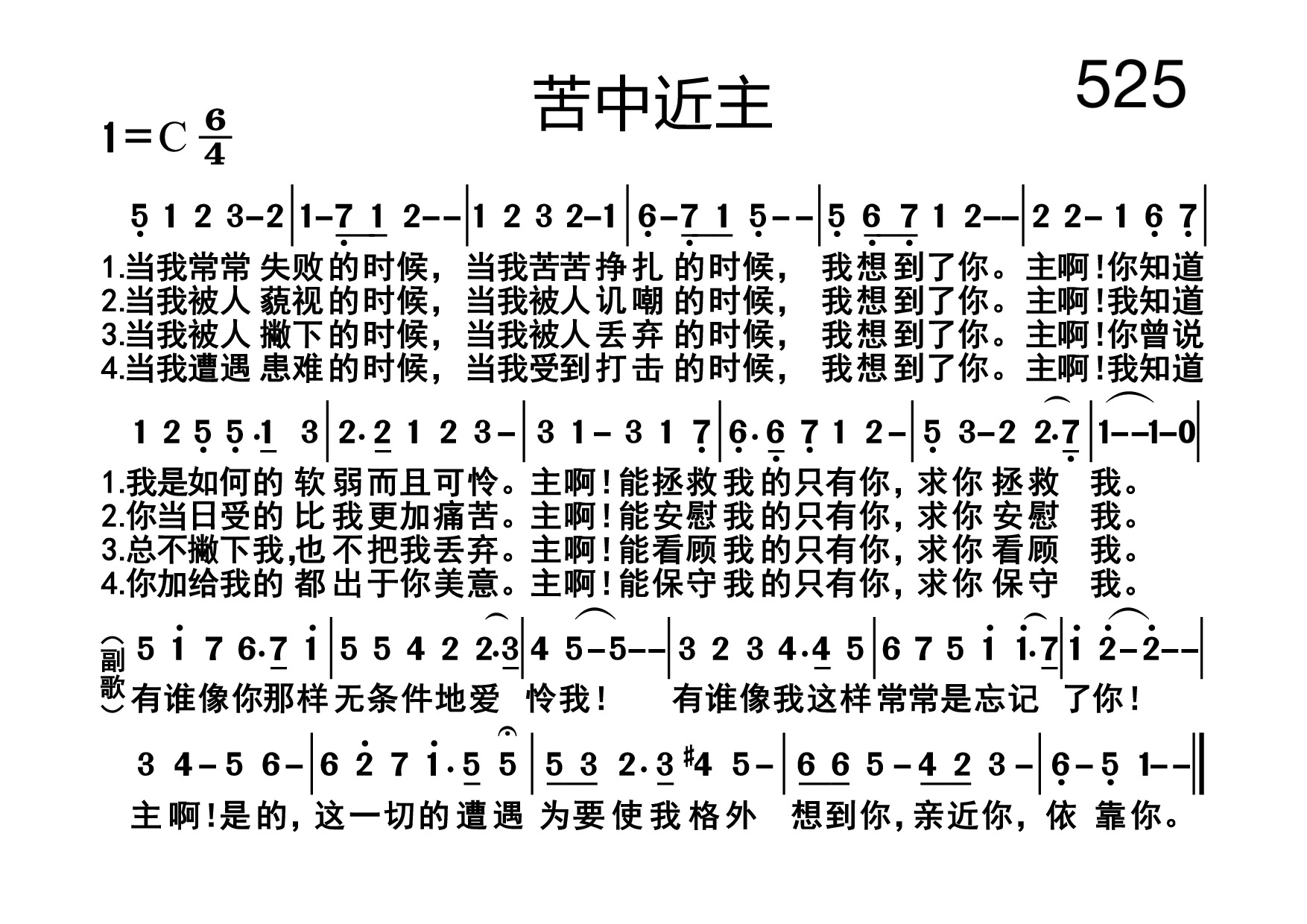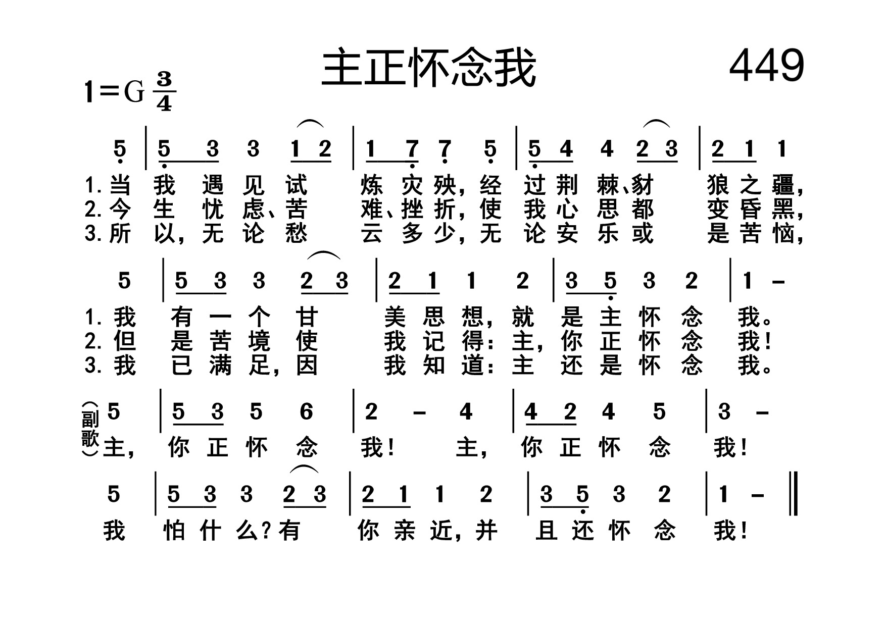当我常常失败的时候,当我苦苦挣扎的时候,我想到了你。主啊!你知道我是如何的软弱而且可怜。主啊!能拯救我的只有你,求你拯救我。当我被人藐视的时候,当我被人嘲笑的时候,我想到了你。主啊!我知遭你当日受的比我更加痛苦。主啊!能安慰我的只有你,求你安慰我。当我被人撇下的时候,当我被人丢弃的时候,我想到了你。主啊!你曾说总不撇下我也不把我丢弃。主啊!能看顾我的只有你,求你看顾我。当我遇到患难的时候,当我受到打击的时候,我想到了你。主啊!我知道你加给给我的都有你的美意。主啊!能保守我的只有你,求你保守我。有谁像你那样无条件地爱怜我?有谁像我这样常常地忘记了你?主啊!是的,这一切的遭遇,为要使我格外想到你、亲近你、依靠你!