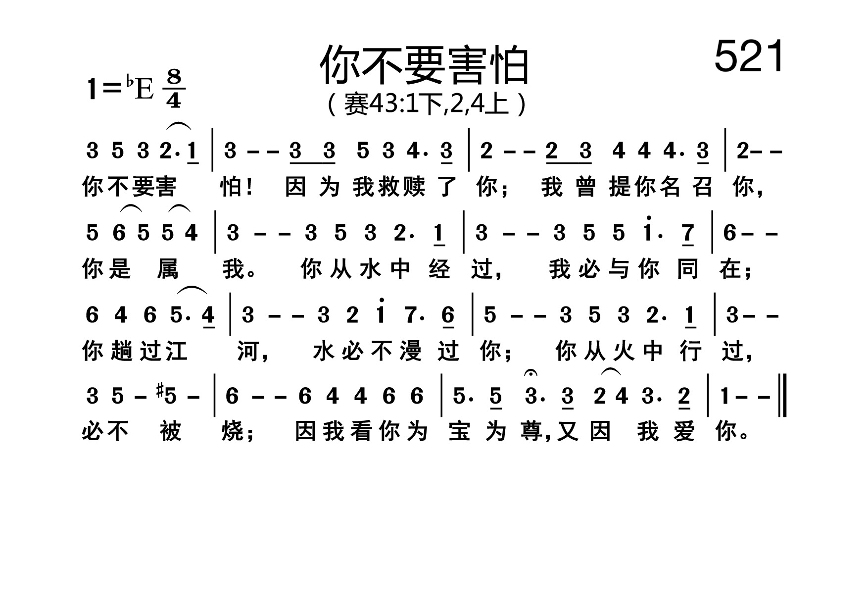 你不要害怕因为我救赎了你我曾提你的名召你你是属我的你从水中经过我必与你同在你趟过江河水必不漫过你你从火中行过必不被烧火焰也不着在你身上因为我是耶和华你的神是以色列的圣者你的救主因我看你为宝为尊又因我爱你